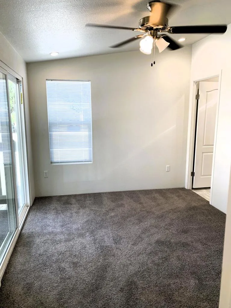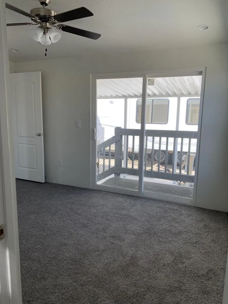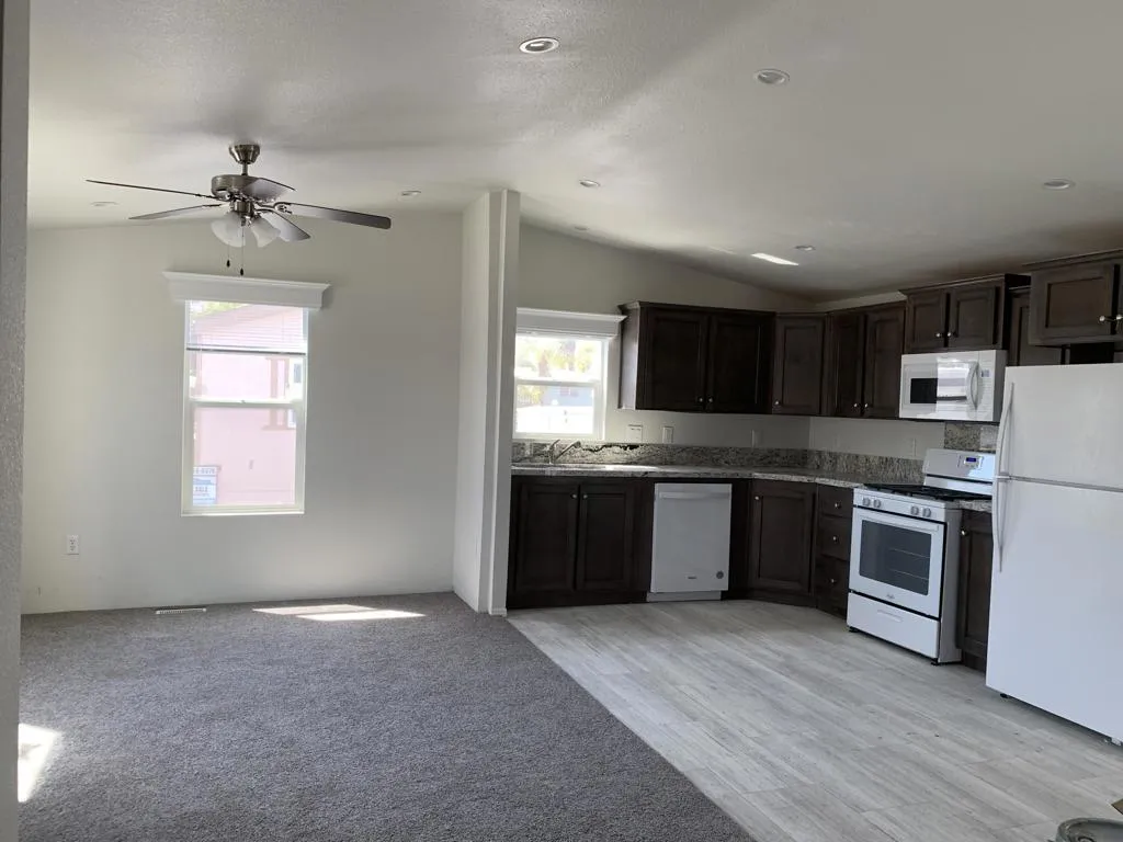 This brand new Fleetwood manufactured home has 1 bedroom, 1 bathroom and is approximately 620 sq ft. The kitchen has been upgraded with shaker style hardwood cabinets, granite countertops and backsplash, undermount stainless steel sink. The appliance package includes 18 CF refrigerator with icemaker, gas range, over-range microwave, dishwasher, and a garbage disposal. The bedroom and living room are carpeted; there is vinyl flooring throughout the remainder of the house. The bathroom has a glass enclosed tub/shower, granite countertop and backsplash, and undermount sink. Canned lighting, 3-door linen closet, area for stackable washer and dryer, covered carport parking and more!