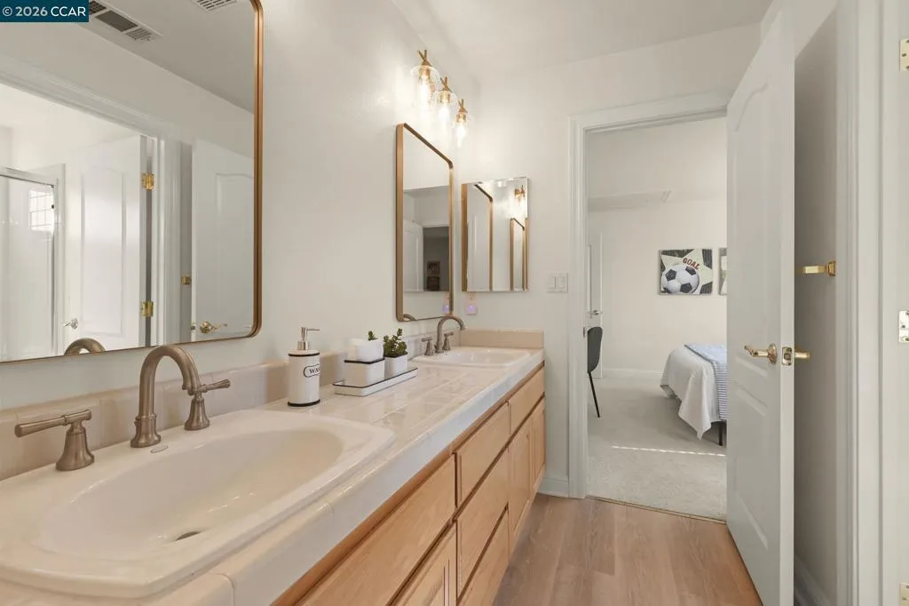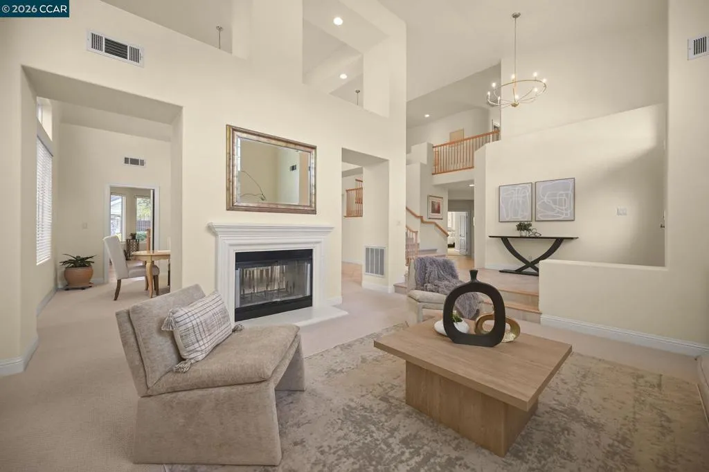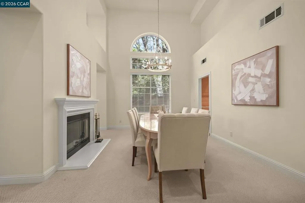 Beautiful Victoria Place home located on a premium corner lot. This fabulous floor plan features 5 bedrooms, 4 full bathrooms, an additional first-floor office, and a versatile bonus room. Vaulted ceilings and oversized windows provide ample natural light. Open concept living with a shared, double-sided fireplace in the living and dining rooms. Spacious family room with built-ins is adjacent to the kitchen with walk-out to the backyard. Chef's kitchen features a breakfast bar, eat-in nook, 6-burner Thermador gas range, wine storage and pantry. Convenient first-floor primary bedroom en suite that features vaulted ceilings, cozy fireplace, access to the backyard and a spacious bath with Jacuzzi tub, separate shower, dual vanity and double walk-in closets. Enjoy multiple patio spaces and a large grass area to play in the backyard. Lined with mature landscaping that adds both beauty and privacy. Close to Blackhawk Plaza, restaurants, shops and grocery stores and hiking/walking trails just steps from the home. Award-winning San Ramon Valley Schools. Open Sat 4/25 & Sun 4/26 from 2-4pm.