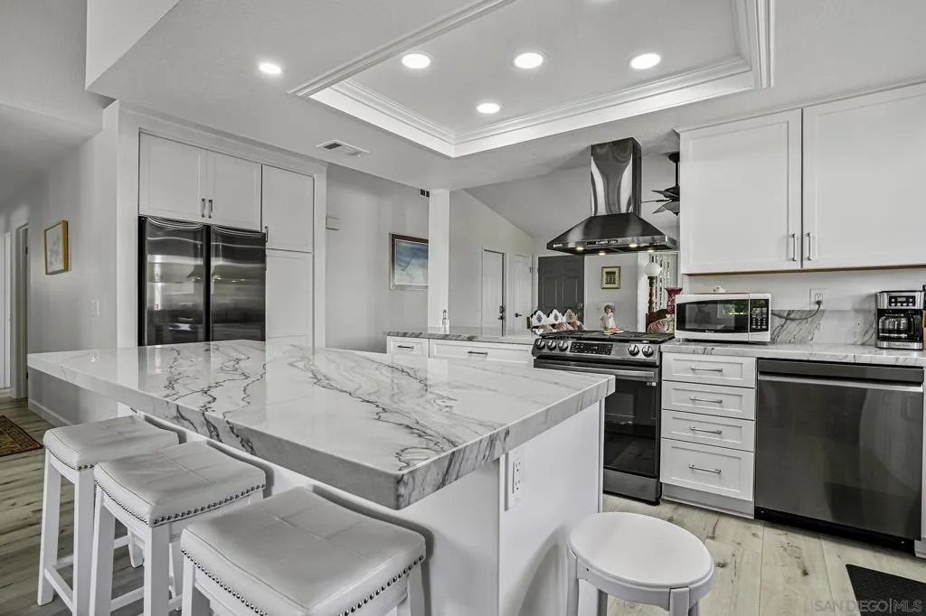 TURNKEY, UPDATED, SINGLE-STORY! CALIFORNIA STYLE LIVING! Completely reimagined from the ground up, this stunning single-story home sits on nearly a quarter-acre. Offering beautifully remodeled 3-bedrooms and 2-bathrooms, this home supports a move-in-ready lifestyle, with abundant space for modern living and privacy. Every inch has been thoughtfully updated. New roof (2023), drought resistant plants, low maintenance landscape, vinyl fencing, and fresh exterior give curb appeal to match the sophisticated interior. Step inside to wide-plank vinyl flooring that flows seamlessly throughout the open-concept layout, featuring cathedral ceilings, recessed lighting, and cozy gas fireplace framed in marble. The chef-inspired kitchen boasts black stainless steel appliances, white Quartzite stone counters, new shaker cabinets, 6-foot Quartzite island with extended overhang, pendant lighting, and pantry, all with soft-close drawers & doors. Retreat to the spacious primary suite with completely updated bathroom, dual-sink vanity, and designer finishes. Both bathrooms have been tastefully remodeled, featuring new tile, lighting, fans, mirrors, and fixtures. Additional upgrades include dual-pane windows, lighting with dimmers throughout, new HVAC and water heater (2023), interior & exterior paint, French drains, and paneled doors throughout. Drip irrigation, mature fruit trees, plenty of space for entertaining. Direct access oversized 2-car garage with pull-down large attic. 2 Sheds. Potential ADU or RV parking. No HOA! Only 6 miles to the beach and located near Alamosa Park Elementary.
