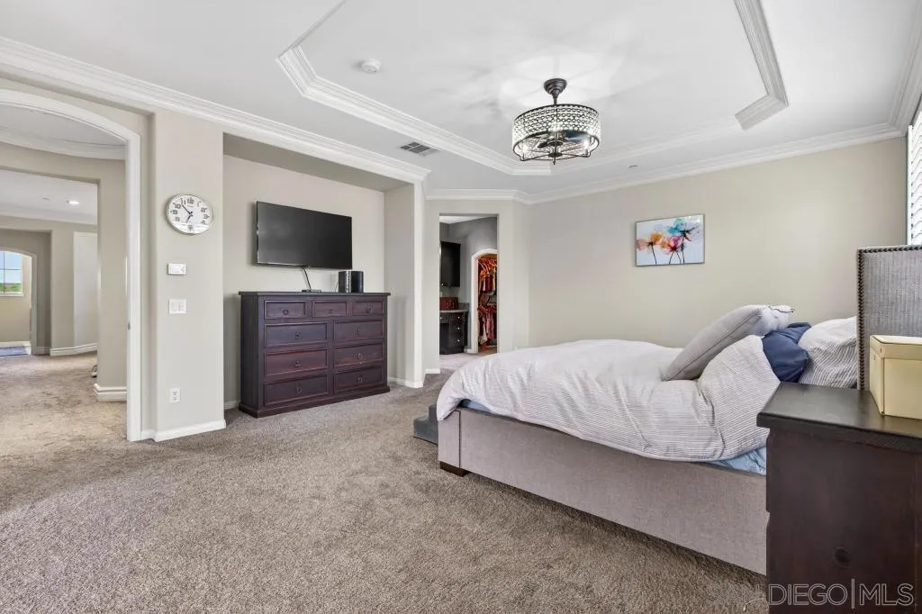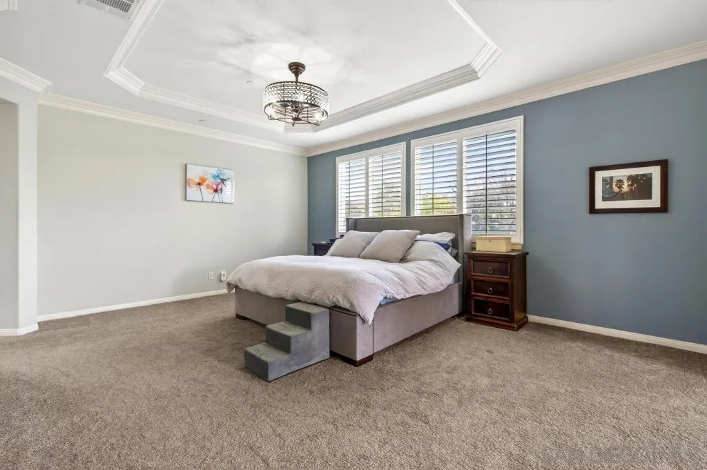 Welcome to this dream residence in the highly coveted 4S Ranch community! This beautifully maintained, refined living space sits on a premium south-facing lot that bathes every room in warm natural light from morning to sunset. Step through the grand front door into a dramatic two-story foyer anchored by a sweeping circular staircase. The interior has been tastefully and extensively remodeled, highlighted by a show-stopping designer kitchen that represents a $100,000 investment in premium finishes, top-tier appliances, expansive counter space, and custom cabinetry. Bathrooms have been thoughtfully updated with modern fixtures, luxurious finishes, and spa-like details. The open floor plan flows effortlessly from formal living and dining areas to expansive family spaces, creating the perfect setting for entertaining. Host overnight guests in their own downstairs, private bedroom with full bathroom. Outside, enjoy your own private oasis featuring a stunning water fountain and built in BBQ kitchen island surrounded by a newly completed walking path lined with mature fruit trees, lush shrubs, and vibrant landscaping. Practical luxury continues with an owned solar system, a 3-car garage upgraded with extensive built-in storage solutions, and a whole-home soft water system paired with reverse osmosis. Perfectly located in one of San Diego’s most desirable master-planned neighborhoods, this turn-key home combines timeless curb appeal, high-end updates, and thoughtful upgrades that make it truly move-in ready.