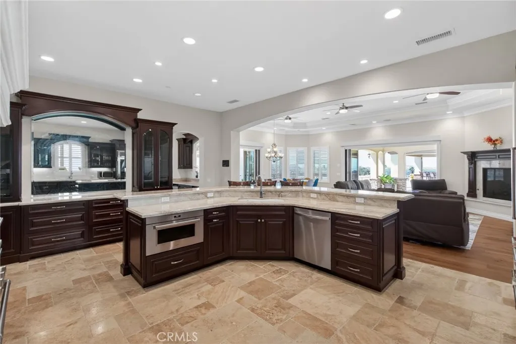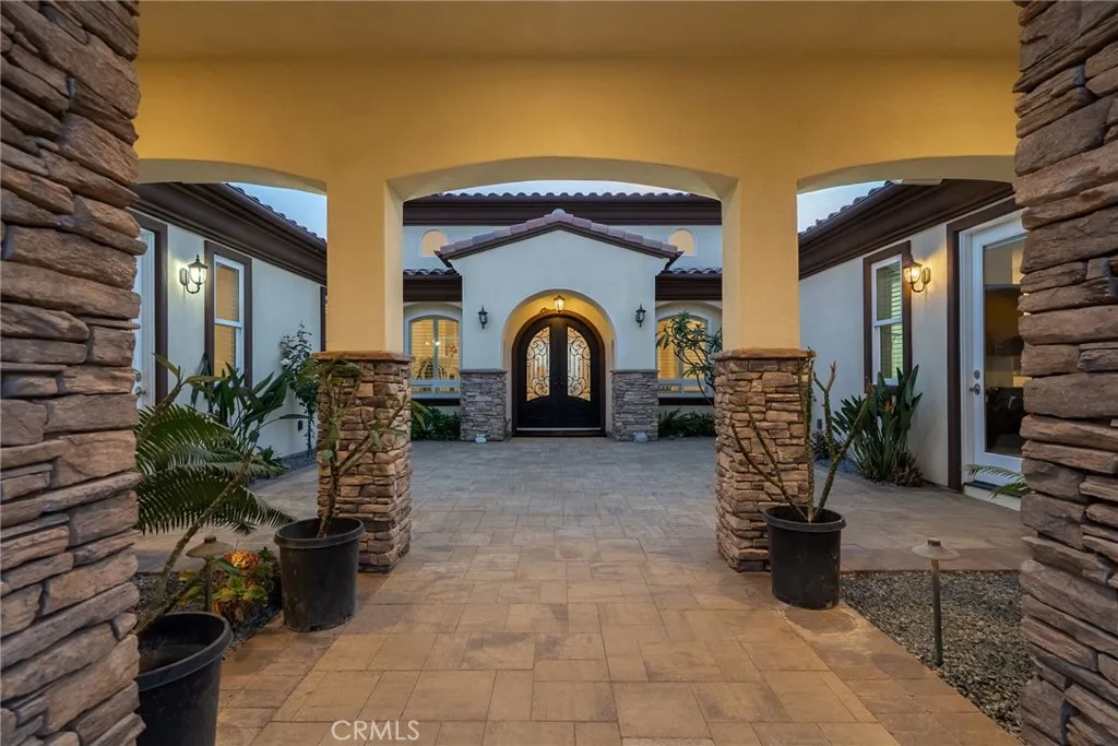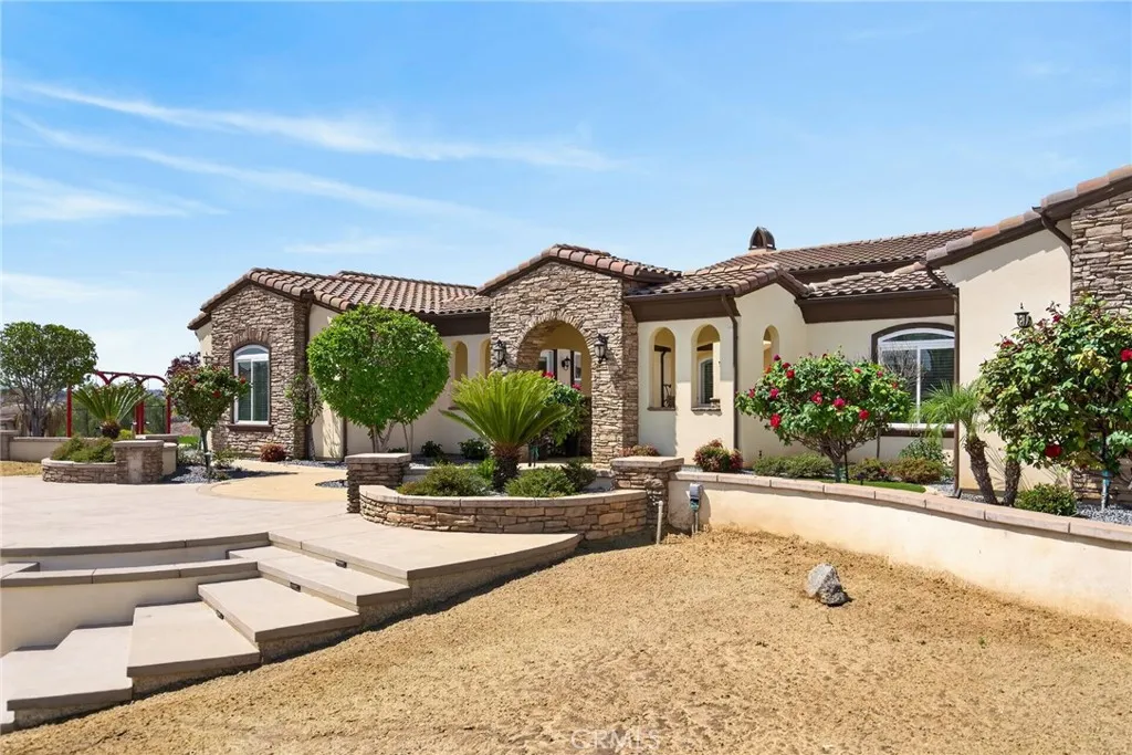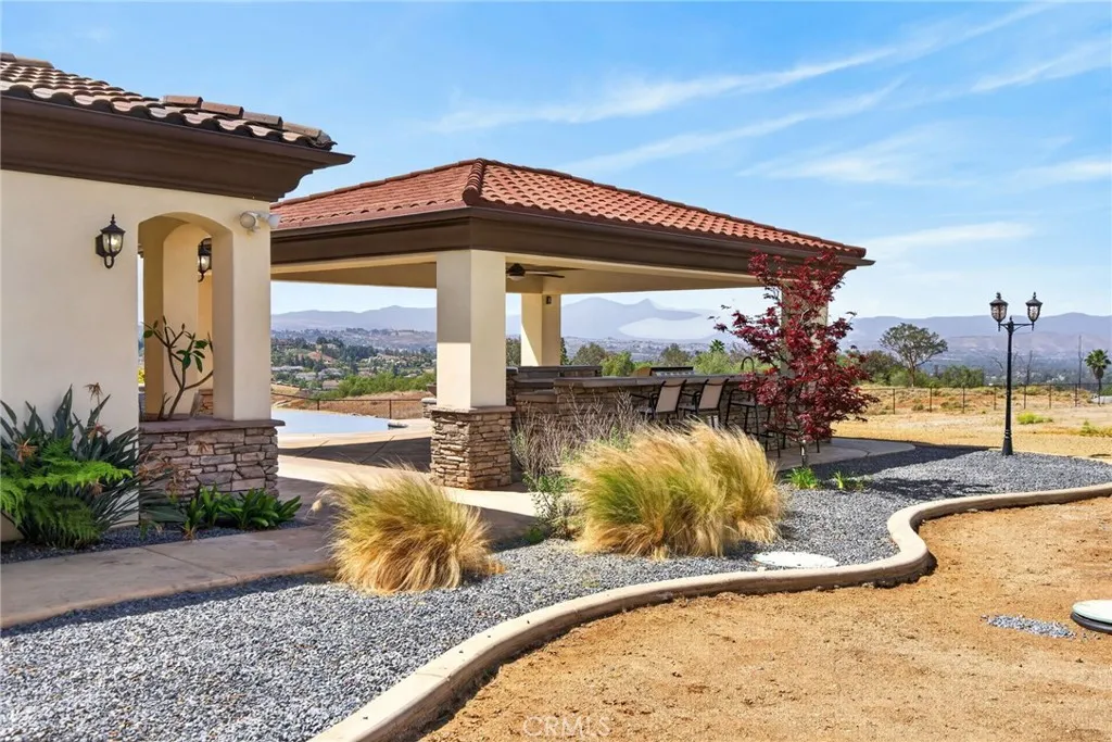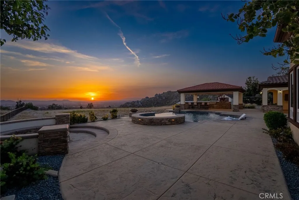 ALESSANDRO HEIGHTS – SUNSET HILLS/HIDDEN CANYON Perched atop the highest ridge of Hawarden Hill on over 7 acres of stunning rolling terrain, this custom, single-level gated estate offers unmatched privacy and breathtaking panoramic views of Riverside's city lights and surrounding mountains. As you pass through the gated entrance and ascend the private driveway, you’re greeted by a warm and inviting front courtyard. Step through the grand double iron doors into a spectacular great room with soaring ceilings and clerestory windows that fill the space with natural light. French doors at the rear perfectly frame the vanishing edge pool and the mesmerizing views beyond. Thoughtfully designed for comfort and functionality, the home features distinct living areas: a serene primary suite, a cluster of family bedrooms, and a tranquil guest suite nestled off the courtyard. The professional-grade kitchen is a chef’s dream, boasting stone countertops, stainless steel appliances, a butler's pantry, and additional serving and food pantries. The expansive family room, with its double bi-folding doors, effortlessly connects to the outdoor living spaces, creating the ultimate setting for entertaining. The meticulously landscaped grounds are a true paradise, offering an array of amenities: a sparkling pool and spa, tranquil water features including a front waterfall and multiple fountains, a fully-equipped outdoor kitchen, a covered living area, a putting green, and a playground. The oversized 3-car garage is complemented by an attached RV garage—with its own bathroom—capable of housing up to three additional vehicles. There’s also a storage shed and ample off-street parking for guests. For those with agricultural ambitions, the property includes an established well ready to support a potential avocado or citrus orchard. Additionally, the owned solar system significantly reduces energy costs, making this estate as efficient as it is luxurious. This exceptional property offers a rare combination of rural tranquility and proximity to all that Riverside has to offer. A truly spectacular estate designed for living, entertaining, and enjoying life to the fullest!