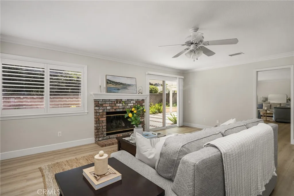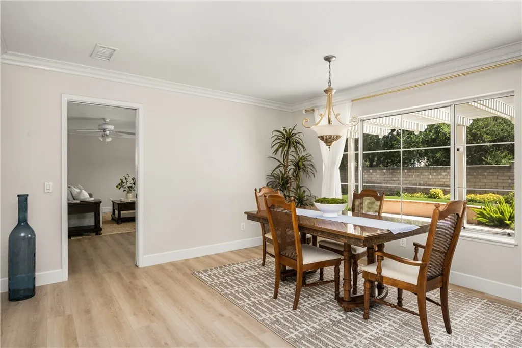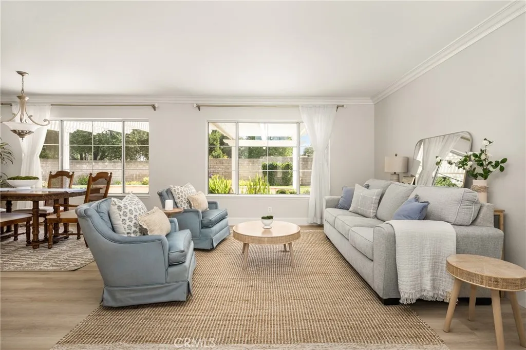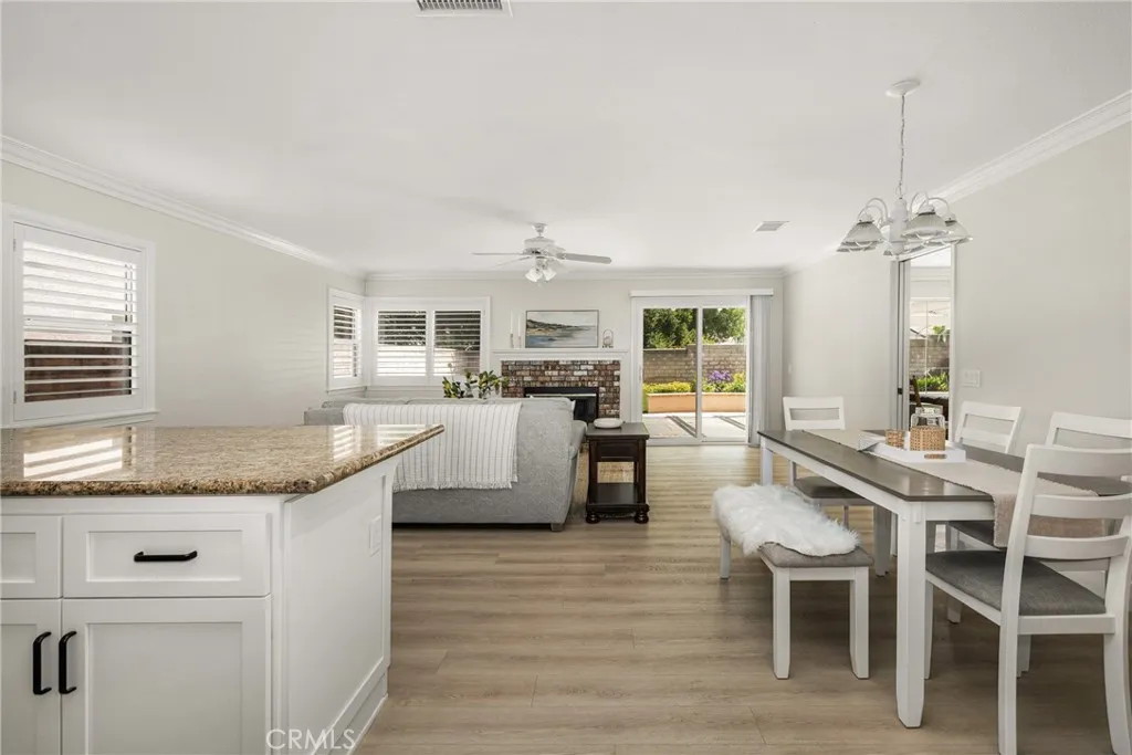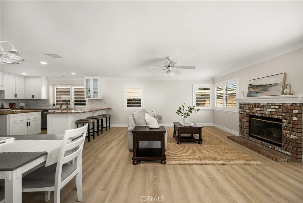 Making its market debut—welcome home to this newly available residence in Fieldstone Arbor. This beautifully maintained 4-bedroom, 3-bath home is ideally situated on a coveted corner lot within the desirable city of Fullerton, offering a rare blend of comfort, function, and pride of ownership. From the moment you enter, fresh interior paint and luxury vinyl flooring on the main level set a bright and inviting tone. Custom interior shutters throughout the home filter natural light while providing warmth, privacy, and a refined finish. Crown molding adds an elevated touch to the main living spaces, enhancing the home’s timeless feel. At the heart of the home, the remodeled kitchen is designed for both everyday living and effortless entertaining, featuring granite countertops, a large center island, cooktop, and a spacious walk-in pantry. A dedicated interior laundry room, water softener, and reverse osmosis drinking water system add thoughtful convenience. The main level flows seamlessly for both daily life and gatherings, while the backyard extends the living space outdoors. A covered patio creates the perfect setting for morning coffee or evening relaxation, complemented by low-maintenance artificial turf for year-round enjoyment. A three-car garage provides generous storage and functionality. Upstairs, the home transitions into a private retreat. The primary suite offers a peaceful escape with a soaking tub, walk-in shower with glass enclosure, and an oversized walk-in closet with custom shelving. Three additional bedrooms and a full bathroom complete the upper level, offering flexible space for family, guests, or a home office. Residents enjoy access to community amenities including a pool, walking trails, playground, and picnic areas, all within close proximity to Tri-City Park. Located within the highly regarded Placentia-Yorba Linda Unified School District, this home presents an exceptional opportunity in one of the area’s most sought-after neighborhoods.