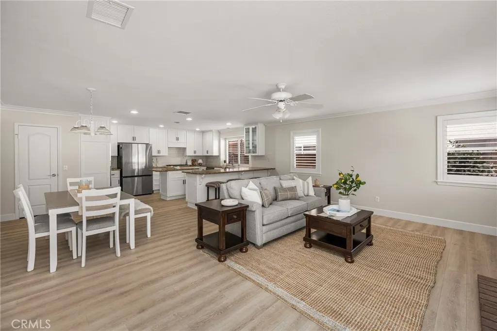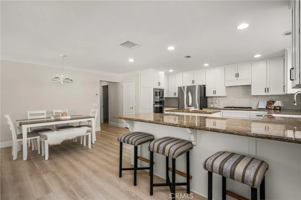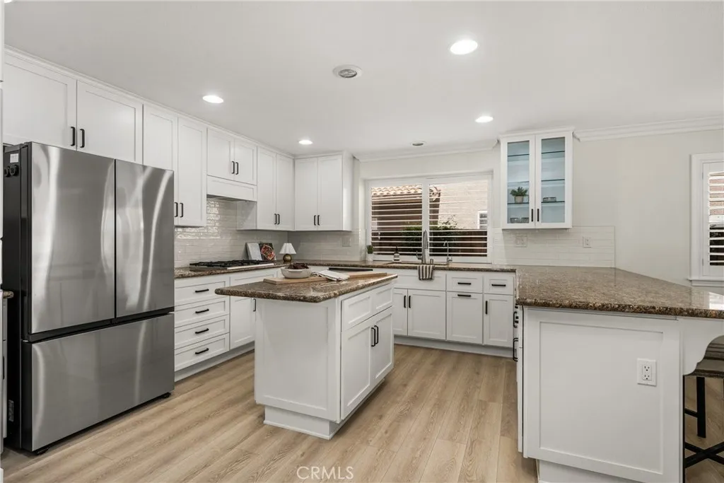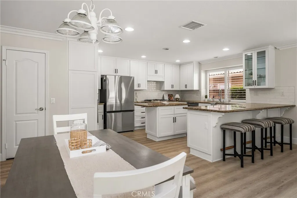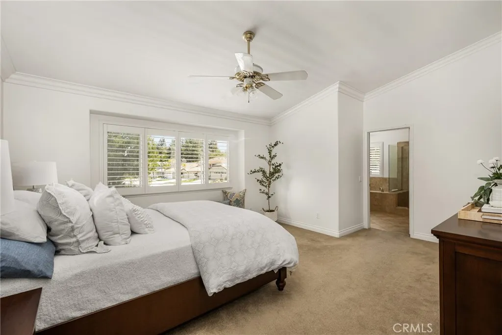 Making its market debut—welcome home to this newly available residence in Fieldstone Arbor. This beautifully maintained 4-bedroom, 3-bath home is ideally situated on a coveted corner lot within the desirable city of Fullerton, offering a rare blend of comfort, function, and pride of ownership. From the moment you enter, fresh interior paint and luxury vinyl flooring on the main level set a bright and inviting tone. Custom interior shutters throughout the home filter natural light while providing warmth, privacy, and a refined finish. Crown molding adds an elevated touch to the main living spaces, enhancing the home’s timeless feel. At the heart of the home, the remodeled kitchen is designed for both everyday living and effortless entertaining, featuring granite countertops, a large center island, cooktop, and a spacious walk-in pantry. A dedicated interior laundry room, water softener, and reverse osmosis drinking water system add thoughtful convenience. The main level flows seamlessly for both daily life and gatherings, while the backyard extends the living space outdoors. A covered patio creates the perfect setting for morning coffee or evening relaxation, complemented by low-maintenance artificial turf for year-round enjoyment. A three-car garage provides generous storage and functionality. Upstairs, the home transitions into a private retreat. The primary suite offers a peaceful escape with a soaking tub, walk-in shower with glass enclosure, and an oversized walk-in closet with custom shelving. Three additional bedrooms and a full bathroom complete the upper level, offering flexible space for family, guests, or a home office. Residents enjoy access to community amenities including a pool, walking trails, playground, and picnic areas, all within close proximity to Tri-City Park. Located within the highly regarded Placentia-Yorba Linda Unified School District, this home presents an exceptional opportunity in one of the area’s most sought-after neighborhoods.