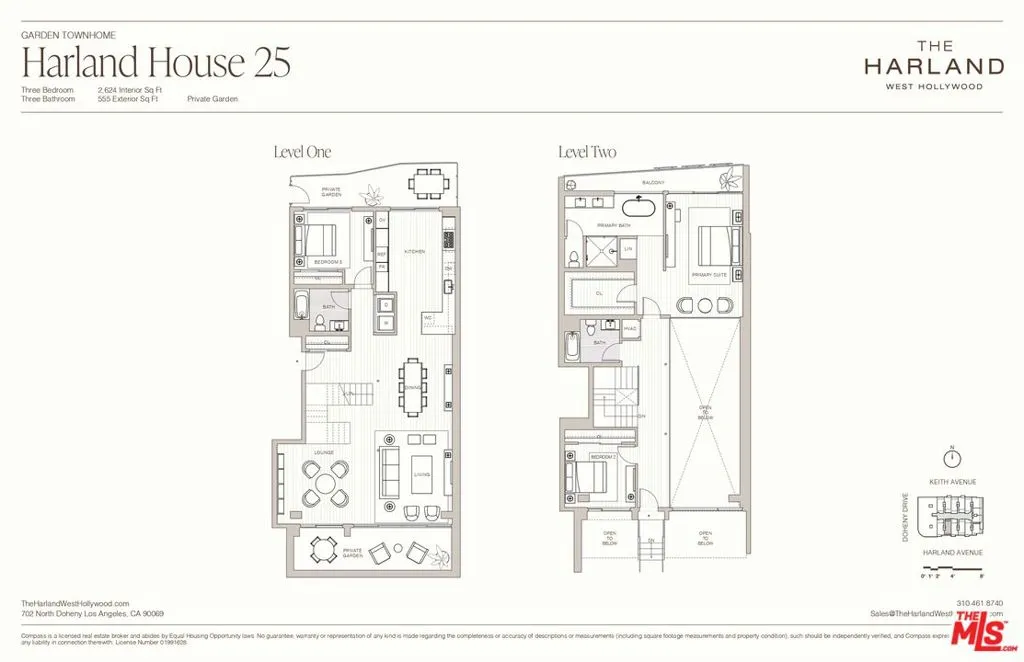Harland House 25 is one of a limited collection of Case Study inspired Garden Townhomes at The Harland, a boutique condominium building designed by OFFICEUNTITLED with interiors by Marmol Radziner. This three-bedroom, three-bath residence exemplifies the best of California modern design, offering a private street-level entry along tree-lined Harland Avenue. A light-filled, double-height great room is framed by floor-to-ceiling glass and two private garden courtyards, with a bedroom and open-concept living completing the main level. Upstairs, the primary suite opens onto a private balcony alongside a third bedroom. Located where West Hollywood meets Beverly Hills, The Harland pairs the privacy of a personal residence with a curated suite of services and amenities, including a screening room, residents' lounge, chefs kitchen, fitness studio, and two-lane bowling alley just moments from the city's top dining, shopping, and cultural destinations.