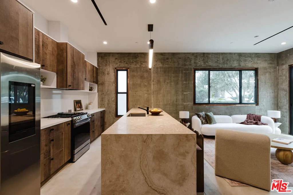 Tucked discreetly at the rear of a newly constructed, architecturally distinct compound, this exceptional four-bedroom, three-and-a-half-bath townhouse offers 2,500 square feet of refined, design-forward living in the heart of West Adams. Thoughtfully executed with a modern architectural sensibility, the home is defined by clean lines, curated materials, and elevated finishes that create a seamless balance of warmth and sophistication. The interiors are designed for both everyday comfort and elevated entertaining, featuring expansive living spaces, a dedicated walk-in laundry room, and abundant storage throughout. A chef-caliber kitchen is outfitted with top-of-the-line appliances and sleek, contemporary detailing, flowing effortlessly into the main living areas. Each bedroom is generously scaled, while the primary suite offers a tranquil retreat with a spa-like bath experience. Crowning the home is a private rooftop deck designed for hosting, complete with a built-in kitchenette and bar, and sweeping neighborhood views that create an ideal setting for sunset gatherings or intimate evenings under the city lights. Additional amenities include on-site parking with an integrated EV charging station, as well as the option to lease the home fully furnished with designer-selected pieces or delivered unfurnished to suit your lifestyle. The property consists of two detached townhouse residences, each with its own address, utilities, and meters, offering privacy and independence with only a shared driveway. This is a rare opportunity to experience contemporary luxury living in one of Los Angeles' most dynamic and culturally rich neighborhoods.