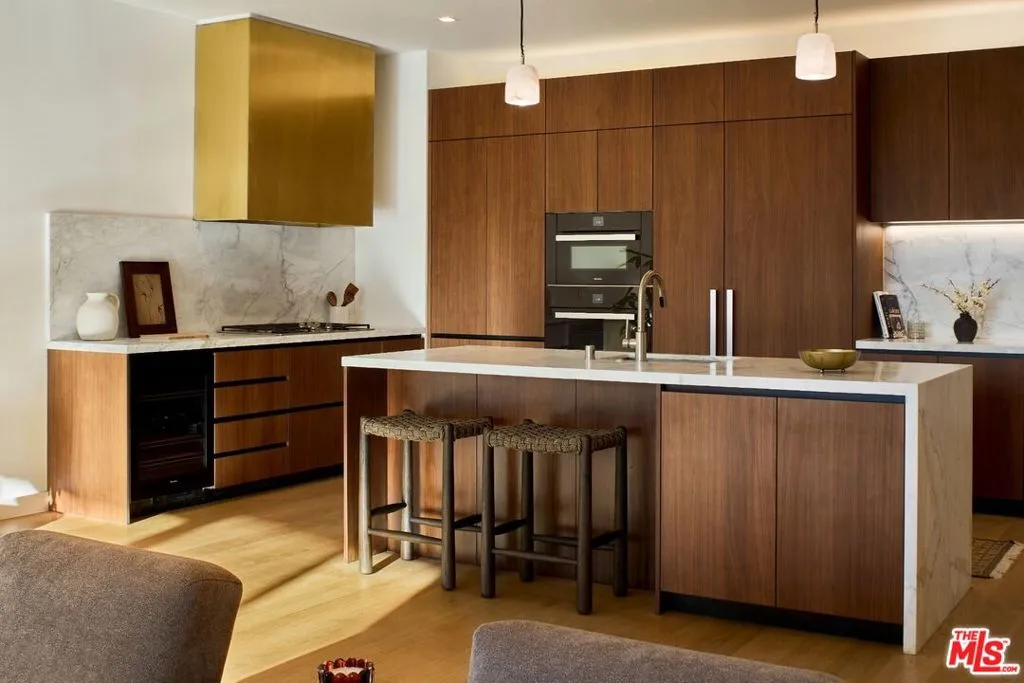 Residence 101 at The Harland is one of only seven flats in this Case Study inspired boutique condominium building designed by OFFICEUNTITLED with interiors by Marmol Radziner. The intimate single-level layout exemplifies the best of California modern design. This one-bedroom, one-and-a-half-bath residence opens onto a private patio along a tree-lined stretch of North Doheny Drive, drawing in sunset-facing light through the afternoon and evening. Floor-to-ceiling windows and open-concept living blur the line between indoors and out, while a restrained material palette of light oak, walnut, marble, and bronze conveys understated, modern sophistication throughout. Located where West Hollywood meets Beverly Hills, The Harland pairs the privacy of a personal residence with a curated suite of services and amenities, including a screening room, residents' lounge, chefs kitchen, fitness studio, and two-lane bowling alley just moments from the city's top dining, shopping, and cultural destinations.