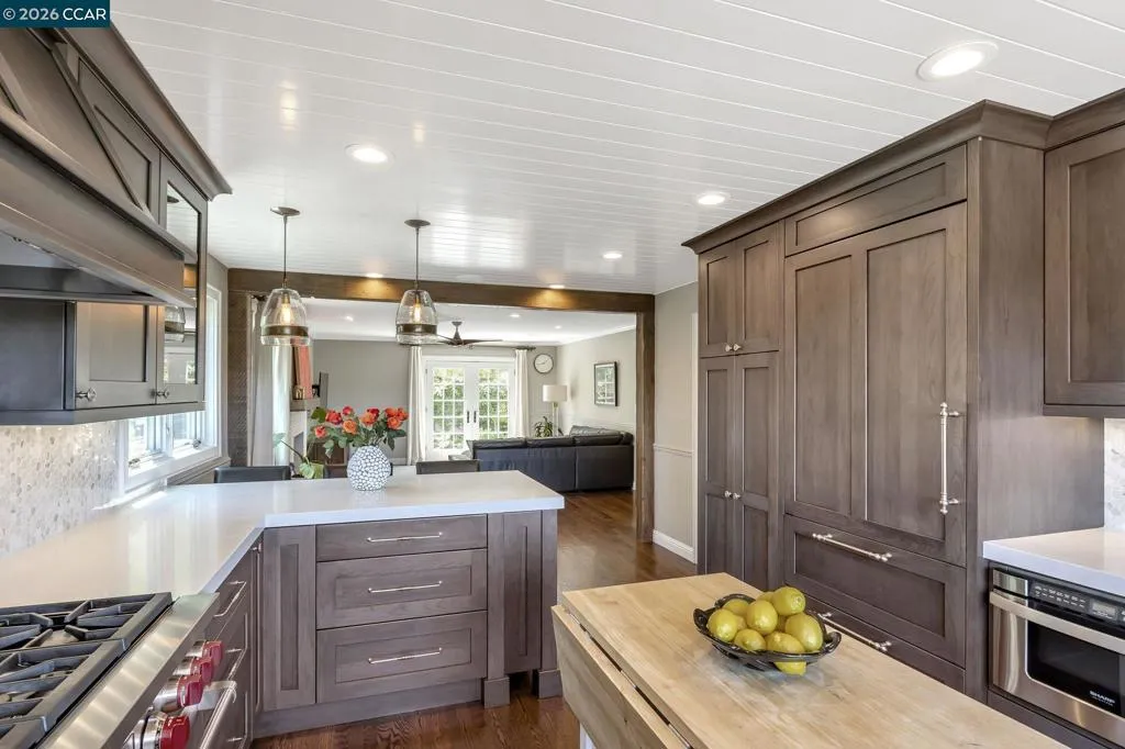 Luxury Living with Immediate Country Club Access & Sweeping Views! Start enjoying the Moraga Country Club lifestyle right away — this home offers immediate club access with no $75,000 initiation fee and no multi-year waitlist. From day one, enjoy the 18-hole golf course, tennis and pickleball courts, bocce, Junior Olympic pool, fitness center, dining, and a full calendar of social events. Luxury living with room for everyone in this detached Moraga Country Club home - the largest floor plan - offering 4 bedrooms, 2.5 baths, and 3,424 square feet on a premium lot with backyard access to the Sea Pines cul-de-sac and easy access to golf course paths when the course is closed. Thoughtfully remodeled with high-quality finishes throughout, the home blends comfort and style. The farmhouse kitchen is a standout, featuring a Wolf gas cooktop, Sub-Zero refrigerator, quartz countertops, and beautiful views of the golf course and rolling Moraga hills. After entering through the recently updated private front courtyard, you’ll find hardwood floors, soaring cathedral ceilings, spacious living areas, custom built-ins, and a welcoming primary suite with its own fireplace and private patio. Indoor-outdoor living shines on every level. Expansive multi-level Ipe hardwood decks with panoramic views, a concrete patio with firepit, and a beautifully landscaped yard create the perfect setting for relaxing or entertaining. Enjoy fruit trees (pear, apple, lemon, fig), a vegetable garden, and an easy-to-manage lawn area. Life here is all about convenience and connection — close to the clubhouse, weekly Farmers Market, Commons Park, and the Lafayette-Moraga Trail, plus access to top-rated Moraga and Orinda schools. This is a wonderful opportunity to step right into one of Moraga’s most sought-after communities.