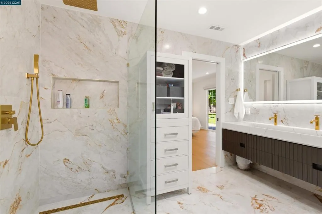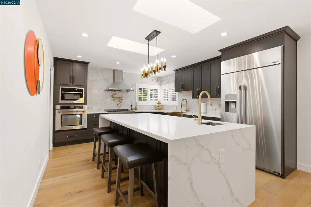 Experience elevated California living in this stunningly remodeled 4-bedroom, 3-bath home, ideally situated in prestigious Reliez Valley and located within Lafayette’s highly sought-after, top-rated school district. Thoughtfully redesigned in 2022 with exceptional attention to detail, this home showcases refined craftsmanship, high-end finishes, and a seamless blend of modern elegance and everyday comfort. The heart of the home features a bright and expansive open-concept floor plan, where living, dining, and kitchen spaces flow effortlessly together—perfectly suited for both large-scale entertaining and relaxed daily living. Abundant natural light, designer lighting, and quality materials create a warm yet sophisticated atmosphere throughout. Set on an impressive and private .3-acre corner lot, the outdoor living spaces are truly a standout feature. Enjoy a beautifully landscaped setting complete with a generous grassy play area, ideal for recreation or gatherings, along with a covered dining gazebo designed for year-round entertaining. A built-in BBQ and spacious patio provide the perfect backdrop for entertaining & dining, while a unique elevated viewing platform offers sweeping views of Reliez Valley—an ideal spot to unwind and take in the natural surroundings. The home’s thoughtfully designed layout offers both flexibility and privacy. The guest bedroom with an adjacent full bath is perfect for visitors, extended family, or a home office. The luxurious primary suite serves as a private retreat, featuring direct access to the backyard, a spa-inspired bathroom with upscale finishes, and an oversized walk-in closet. Additional bedrooms are generously sized and beautifully appointed with recessed lighting and designer touches, including one with its own en-suite bath for added convenience. Perfectly positioned for both tranquility and accessibility, this home is just moments from scenic hiking and biking trails, offering a connection to nature right outside your door. Its prime location also provides easy access to nearby Walnut Creek for shopping, dining, and entertainment, while maintaining the peaceful charm of Reliez Valley living. Combining sophisticated design, exceptional outdoor amenities, and an unbeatable location within one of Lafayette’s most desirable communities, this home represents a rare opportunity to enjoy luxury, comfort, and lifestyle in perfect harmony. Views: Ridge
