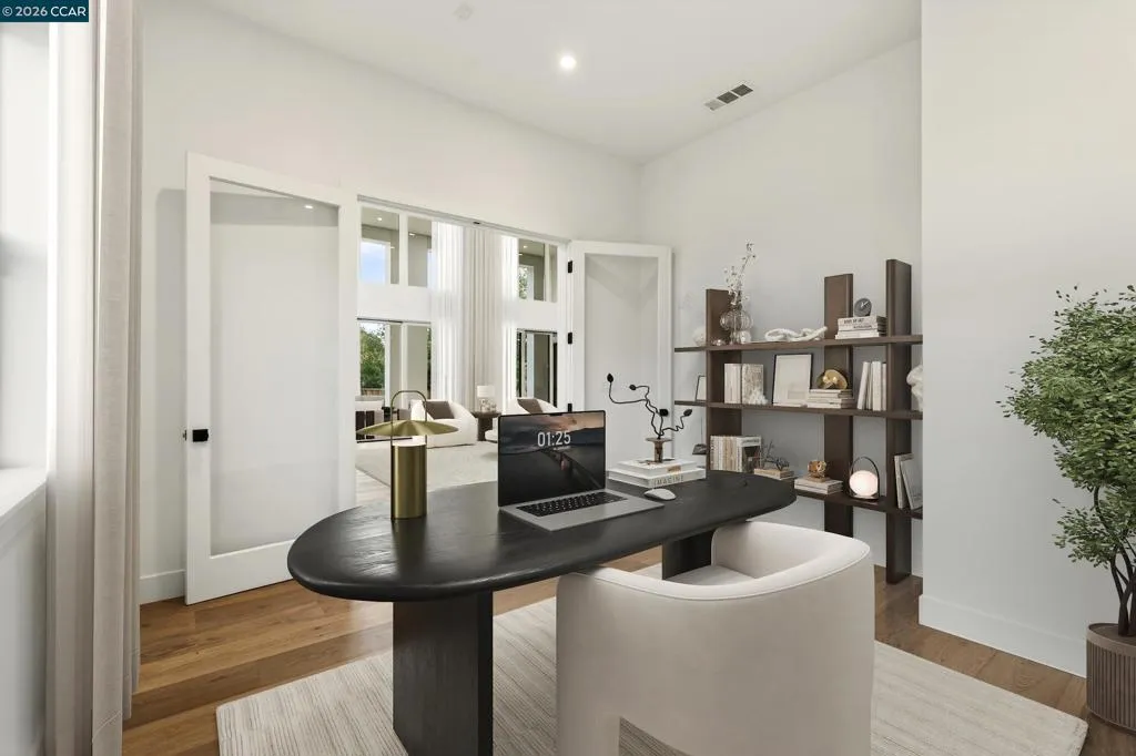 Single-level sophistication marks this exquisite Davidon Homes residence, set within one of Napa’s most sought-after gated communities. Designed with versatility and comfort in mind, the main home features 4 spacious en suite bedrooms, including a beautiful primary retreat with radiant-heated bath floors, a fireplace, and 2 custom walk-in closets. A junior primary suite at the other end of the home offers an ideal space for guests or extended family. The open-concept kitchen alongside the expansive Great Room will be the centerpiece of family life and entertainment. The chef's kitchen features granite countertops and a fully equipped back kitchen with a second refrigerator, microwave, sink, dishwasher, pantry and closet space. The Great Room opens to a covered outdoor patio with a gas fireplace for year-round enjoyment. Work from home is easy in the spacious study alongside. An attached, yet private, 1BD/1BA ADU, with a full kitchen, living room and laundry, provides a seamless option for multigenerational living or a guest residence. Additional highlights include 16 owned solar panels, a security system, pre-wired surround-sound, Ring doorbell, radiant flooring, and premium concrete hardscaping. It’s just minutes to downtown Napa, Highway 29, world-class wineries and recreation. *Digitally altered images