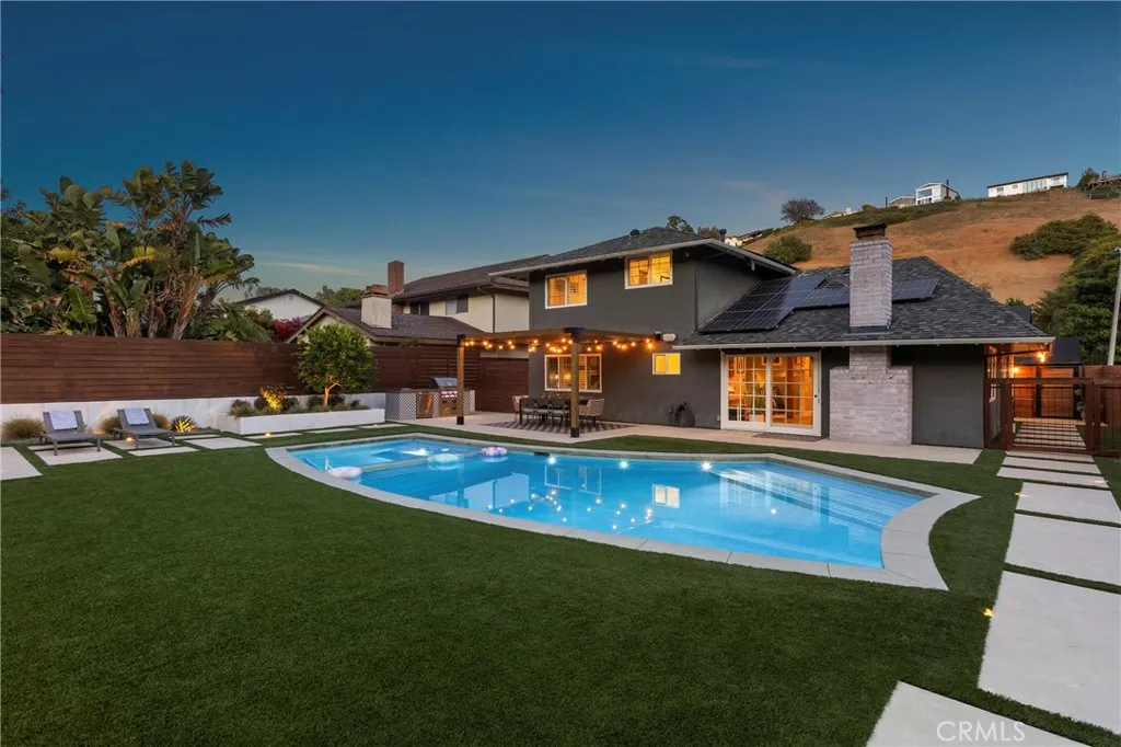Extensively upgraded and thoughtfully remodeled in the sought after Pacesetter community with no HOA, this exceptional home offers the perfect blend of modern luxury, efficiency, and indoor-outdoor living. A major renovation in 2016 transformed the entire home, featuring a redesigned floor plan with a spacious upstairs primary suite complete with a large, walk-in closet, all-new windows and doors, a beautifully updated kitchen, new roof, dual-zone AC and furnace, Navien water heater, and a custom gas fireplace. The kitchen was also redesigned, removing a wall plus the main floor bathroom also was moved to the hallway while keeping a main floor bedroom. Additional upgrades include Lutron lighting, new shutters throughout, and a fully finished garage with built-in storage and professionally sealed flooring. Designed for entertaining, the backyard was completely reimagined in 2021 with a resort-style pool and spa featuring a saltwater filtration system, heater, and added jacuzzi. Enjoy outdoor living at its finest with a custom BBQ, custom mural wall, firepit, new fencing, irrigation, and enhanced drainage. The home also features a whole-house water softening and filtration system, plus purified drinking water in the kitchen. Energy efficiency is maximized with solar panels and a battery backup system added in 2020. Recent improvements continue with a fully renovated and expanded driveway, redesigned front yard and entrance, new perimeter fencing, and a security camera system (2023). A stylish wine nook added in 2024 completes the home’s thoughtful upgrades. This turnkey property offers elevated living with premium improvements inside and out—truly a rare opportunity.