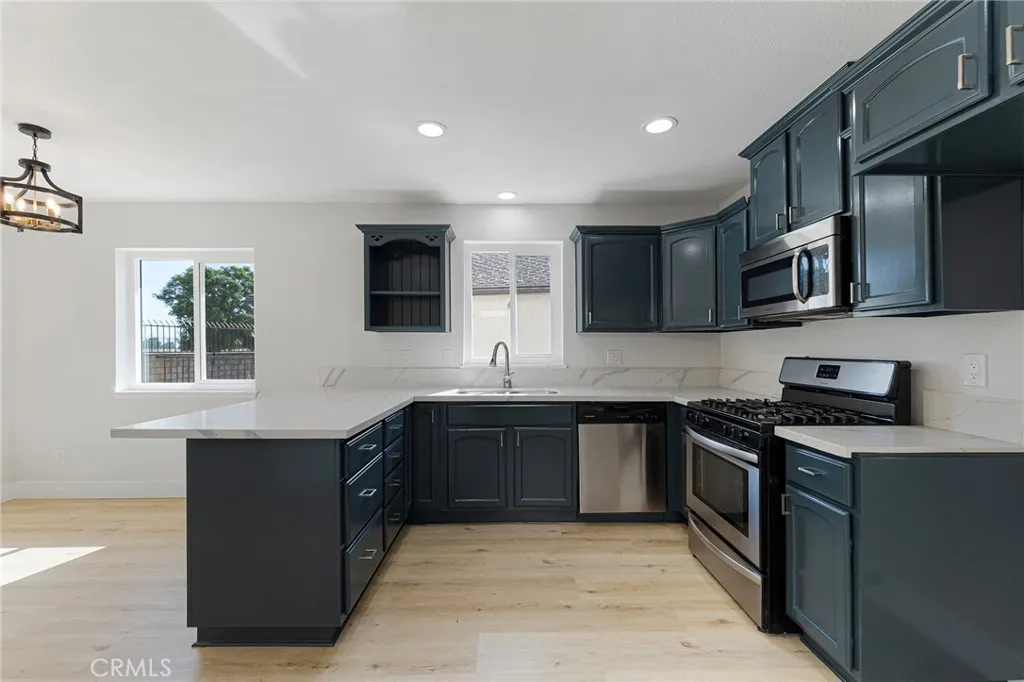 Beautifully renovated 4-bedroom, 2.5-bath home nestled in the highly sought-after North San Bernardino community. This turnkey residence showcases a stunning, fully remodeled kitchen featuring sleek quartz countertops, stainless steel appliances, and rich dark cabinetry—perfect for both everyday living and entertaining. Thoughtfully upgraded throughout, the home boasts modernized bathrooms with stylish finishes, premium wood flooring, new energy-efficient windows, and fresh interior and exterior paint. Comfort is ensured year-round with central HVAC. Step outside to a low-maintenance yard ideal for relaxing or hosting, along with the convenience of an attached two-car garage. Residents enjoy access to well-maintained community amenities, including a sparkling pool, picnic areas, and beautifully landscaped grounds. Ideally located near Cal State San Bernardino, major freeways, parks, and a variety of shopping and dining options, this home offers the perfect blend of comfort, style, and convenience. Move-in ready and waiting for you to make it your own!