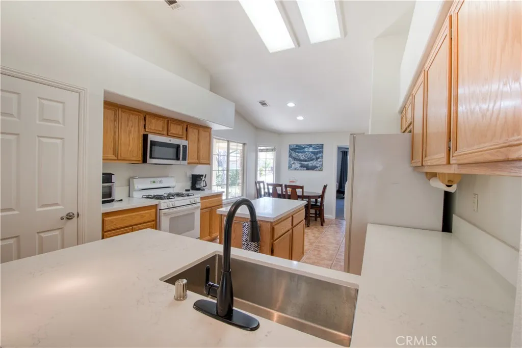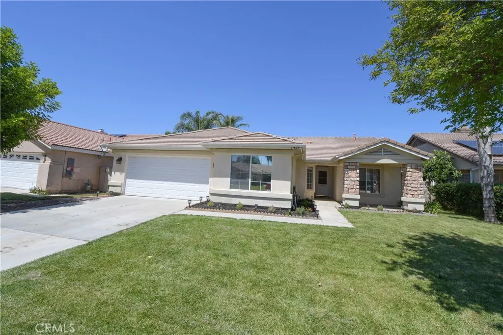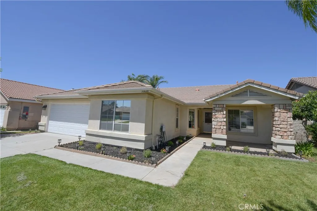 Beautiful single story home! 4 bedrooms and 2 bathrooms. Move-in ready with brand new quartz counter tops, crisp white paint and carpet in bedrooms. Fantastic open layout and vaulted ceilings. Large kitchen with breakfast nook. Spacious backyard. Adorable front porch with stone accent pillars. Low taxes and HOA. Highly sought after Temecula schools and desired French Valley location. Truly a gem!