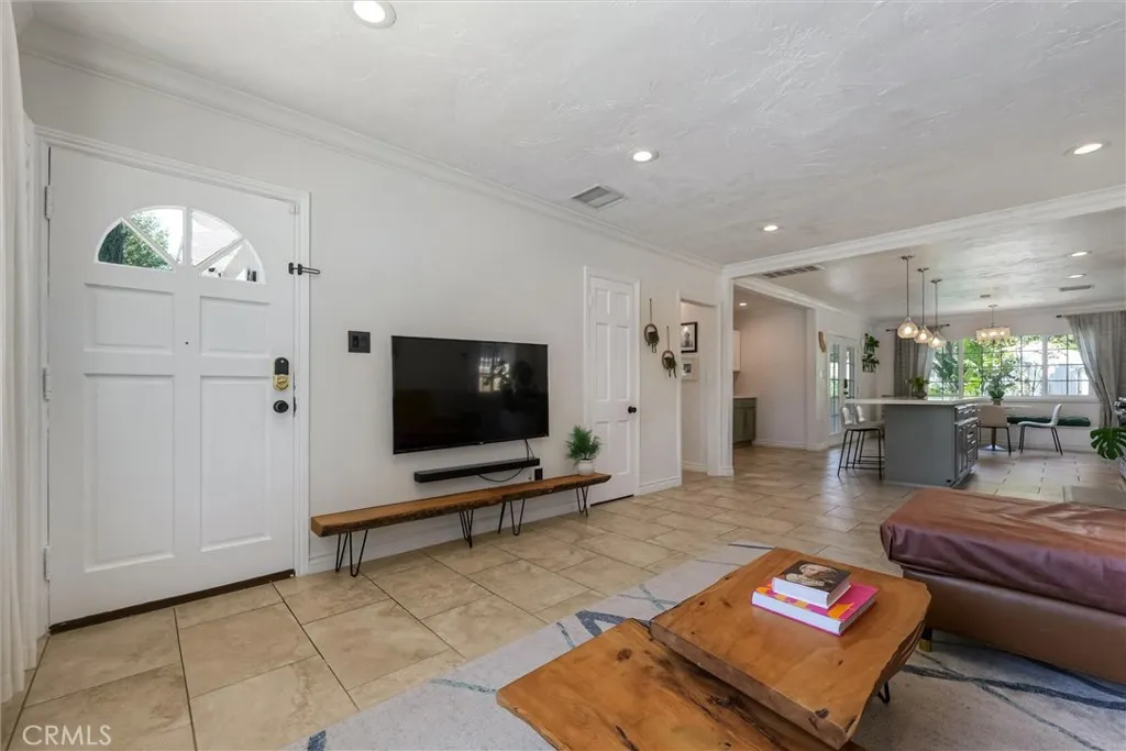 Experience the ultimate eco-smart retreat in this perfectly North-South oriented West Hills home, designed to maximize natural light and sustainable living. Located on the quiet side of Saticoy and less than a 5-minute walk to Starbucks, this residence offers a rare blend of suburban tranquility and urban convenience. The interior features an open floor plan anchored by a chef’s kitchen with a generous quartz island and custom cabinetry. Down the hall, the primary living quarters are complemented by beautifully updated bathrooms featuring Japanese-style heated toilet seat bidets, modern gold finishes, and shower water softeners. The home provides nearly 1,700 sq ft of versatile space, including a tastefully finished 400 sq ft garage conversion with French doors that open directly to the gardens. The exterior is a curated sanctuary for nature lovers, showcasing a backyard filled with native and pollinator-friendly plants specifically chosen to attract bees and butterflies. This lush landscape, which includes mature avocado, guava, pomegranate, and citrus trees, is effortlessly maintained by a weather-controlled smart drip and sprinkler irrigation system. For those with adventure in mind, the property features a massive 25-foot wide iron gate, providing rare and easy access for a large RV or boat. Technologically advanced and energy-efficient, the home is equipped with solar panels, a Tesla charger, a newer HVAC heat pump, and a 200-amp electrical panel. Security and comfort are fully integrated via Google cameras, a Ring doorbell, and Yale smart locks. Just minutes from Westfield Topanga, The Village, and local hiking trails.