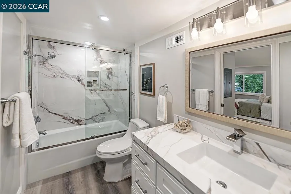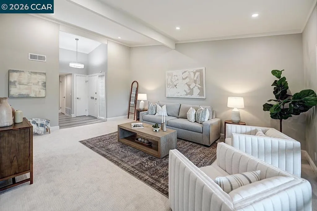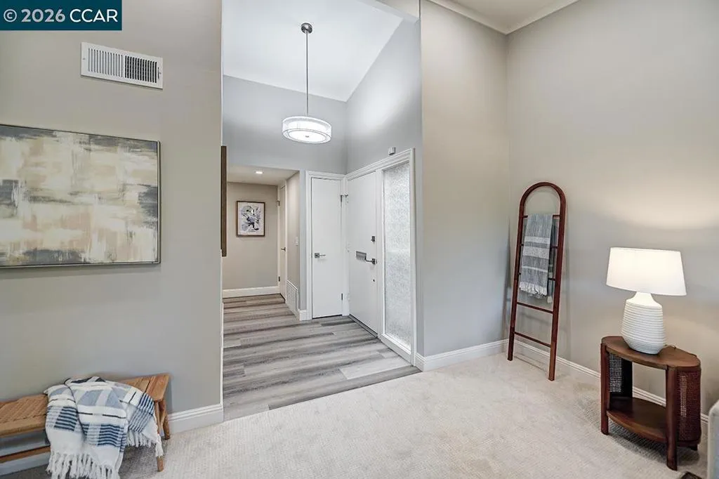 Welcome to the very rare Diablo model, with soaring vaulted ceilings and lovely new upgrades throughout. This upper floor, end unit has a large wraparound deck boasting serene private views of rolling hills. Half covered and half open, it's perfect for outdoor entertaining. Inside, you'll appreciate the polished upgrades including stainless appliances, quartz counters, recessed LED lighting, luxury plank flooring and designer carpet that combine for a "perfect house on a hill" feel. New windows, new HVAC system, new electrical service, new lighting, two spacious baths remodeled in quartz slabs, new side by side laundry with storage, it's quite a list! This is a really special opportunity to own a gorgeously remodeled condo, with the closest carport available, for the price of a co-op!
