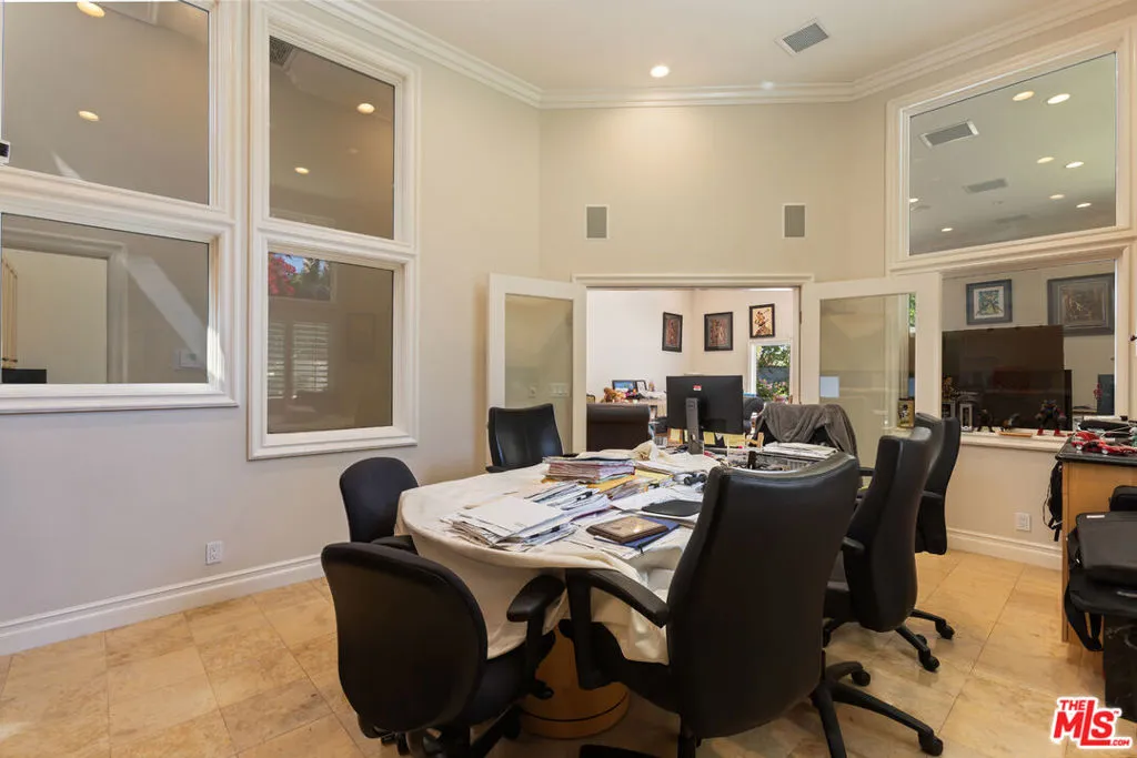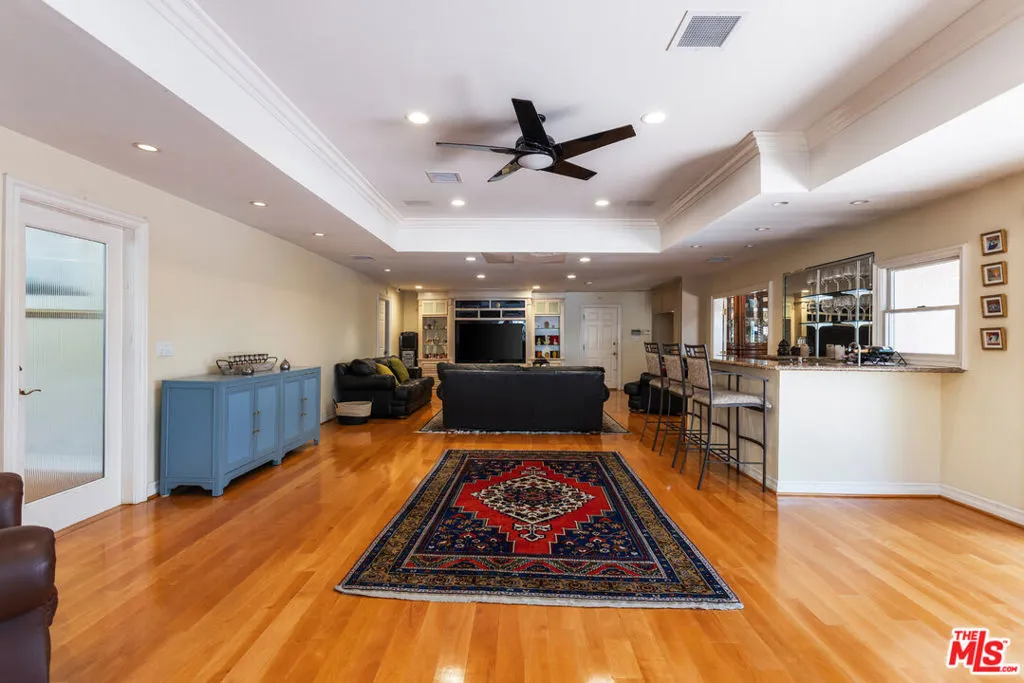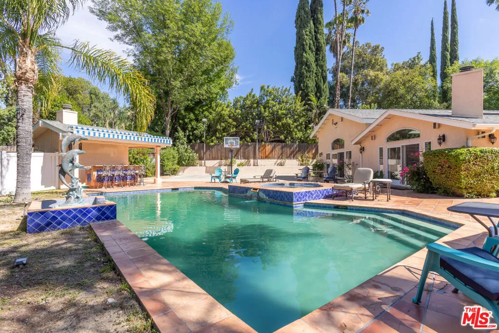 Nestled south of the boulevard on the boarder of Woodland Hills and Tarzana, 19717 Wells Dr presents a rare opportunity on a sprawling, flat half-acre corner lot. First time on the market in over 30 years, this single-story property is perfect for an end user looking to personalize with light updates or a developer seeking a premier lot in a coveted location. Inside, a thoughtfully designed floor plan offers multiple living and entertaining spaces. The entry opens to a formal living room with a fireplace and nearby powder room, flowing into the formal dining room. The dining area connects to the kitchen, complete with an eat-in area and built-in cabinetry for everyday functionality. Just beyond, an oversized family room sits at the heart of the home, featuring a built-in bar, sunroom, and additional lounge area with a built-in entertainment center, all enhanced by natural light and generous space for gathering and entertaining. Past the family room is a fully permitted addition that forms its own private wing. Filled with natural light, this versatile, open space currently functions as a complete office suite, including two additional rooms used as a break room and conference room. At the back of this wing is an additional oversized bedroom with an en-suite bathroom and sliding glass doors providing direct outdoor access, making it ideal for guests, extended family, or a live-work setup. On the opposite side of the home are the main sleeping quarters, featuring 3 secondary bedrooms, a full hallway bathroom, and the spacious primary suite with its own en-suite bathroom. Outside, the backyard offers endless possibilities and exceptional amenities. Highlights include a detached pool house with a full bathroom and bar, pool and spa, full outdoor kitchen, half basketball court, putting green, and expansive flat lawn space - perfect for entertaining, recreation, or future expansion. With its rare half-acre flat lot, single-story layout, corner positioning, and flexible living spaces, this property presents a unique opportunity to create a dream estate.