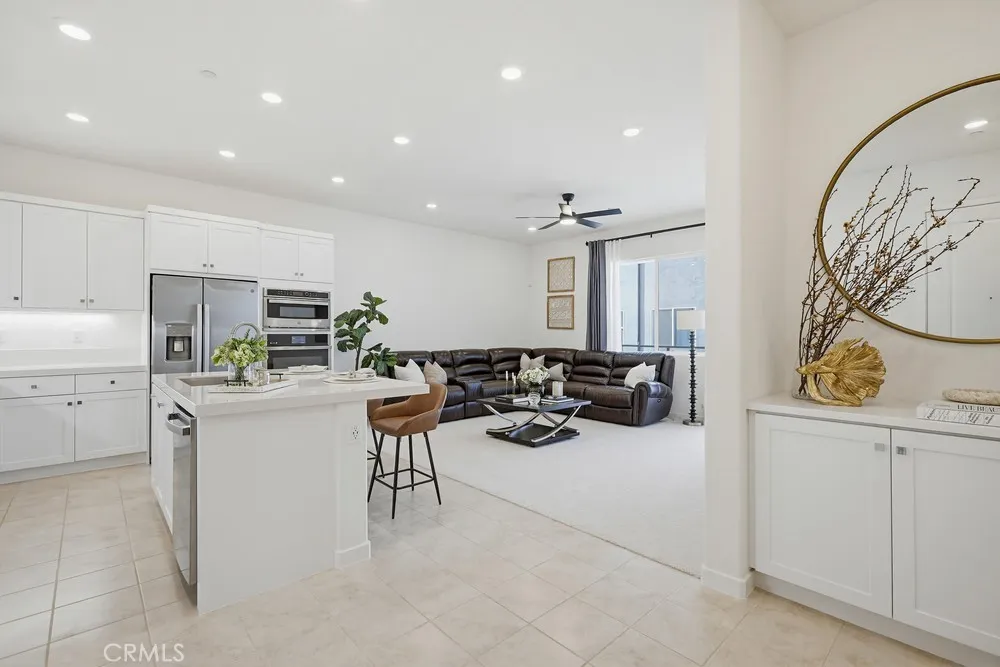 Located within the 24-hour guard-gated Great Park community in Irvine, this modern, sunlit single story condo built in 2023 offers a bright, open layout with contemporary finishes. The kitchen features stone countertops, a center island, and stainless steel appliances, flowing seamlessly into a living area that opens to a private balcony. The spacious bedroom includes a walk-in closet and a sleek bathroom with a walk-in shower. For added convenience, the home features in-unit laundry, central air, an attached garage, a private storage unit, and a fully paid-off solar system. Residents enjoy resort-style amenities, including pools, spas, parks, a dog park, BBQ areas, fire pits, a clubhouse, and scenic walking and biking trails. The property is ideally located near premier shopping, dining, major freeways, and top-rated schools, including Solis Park School (K-8) and Portola High School.