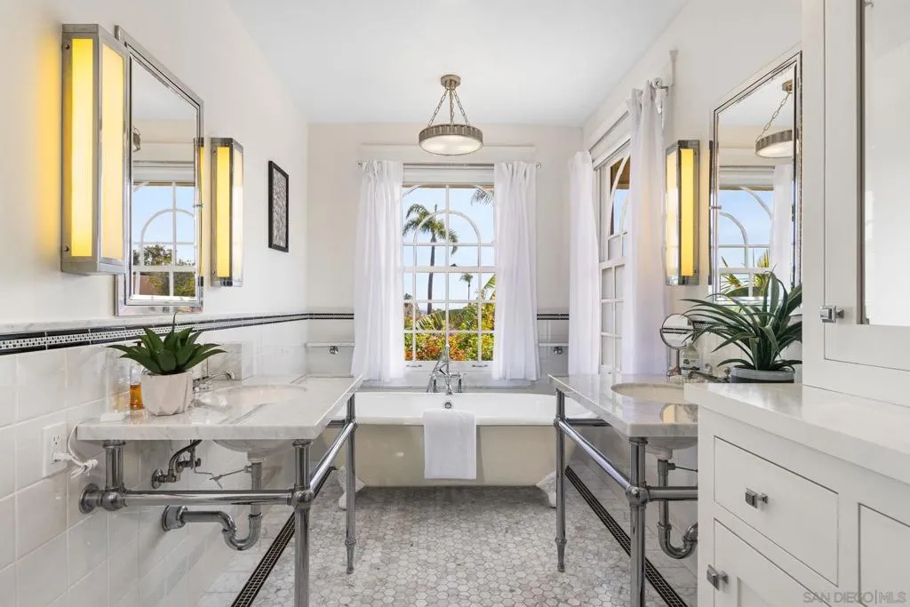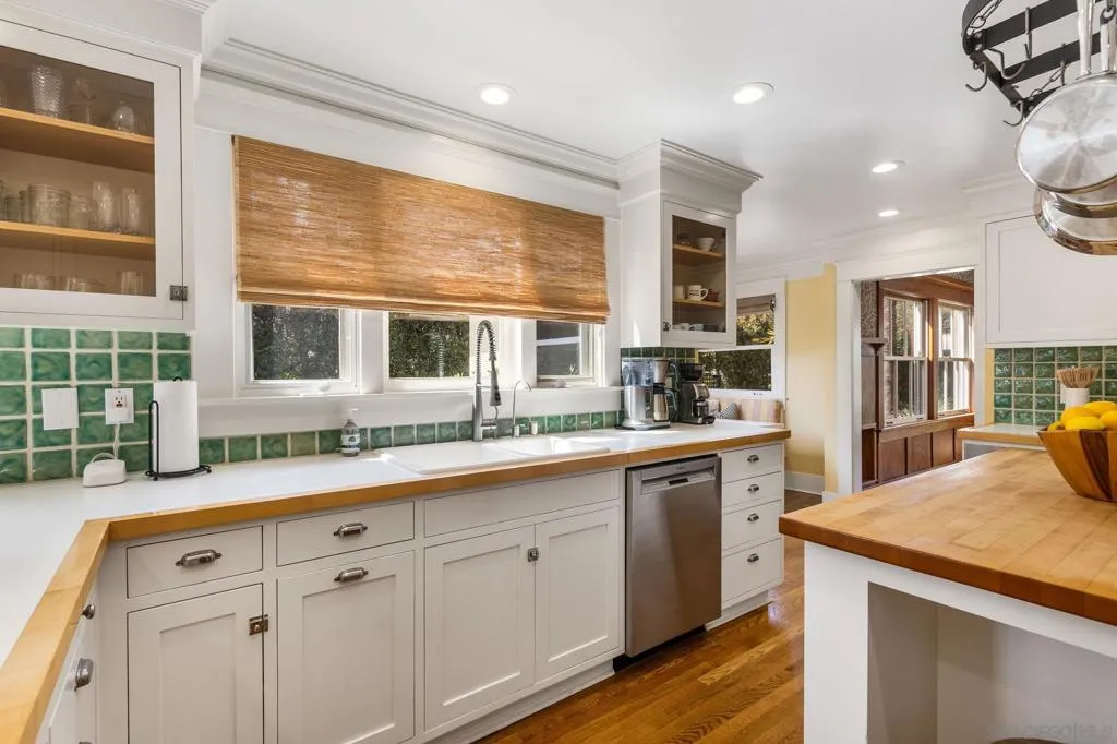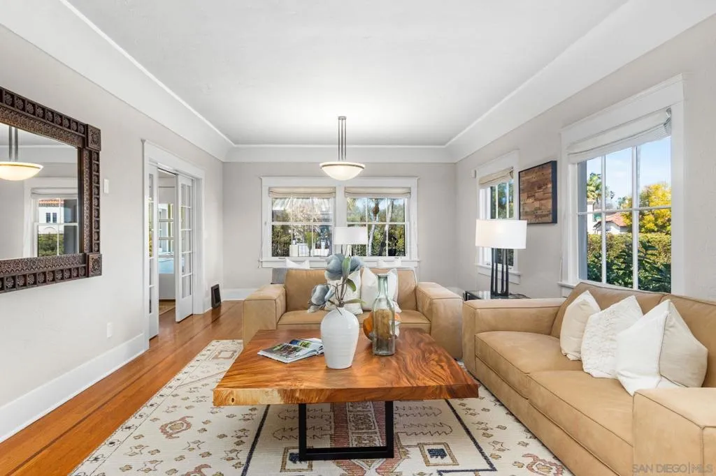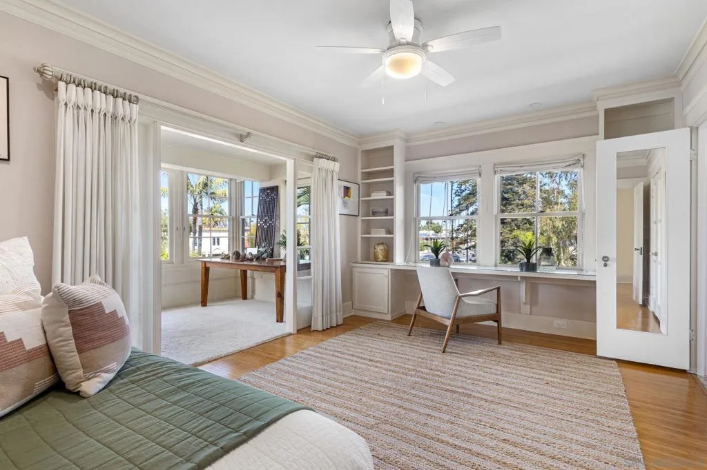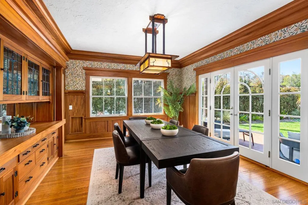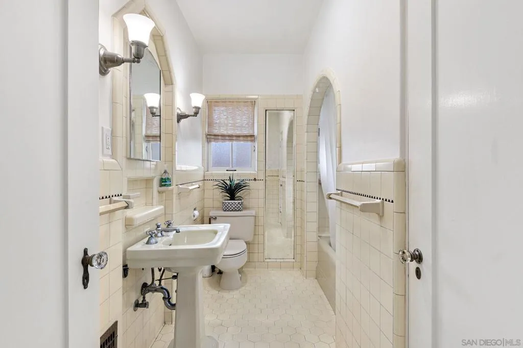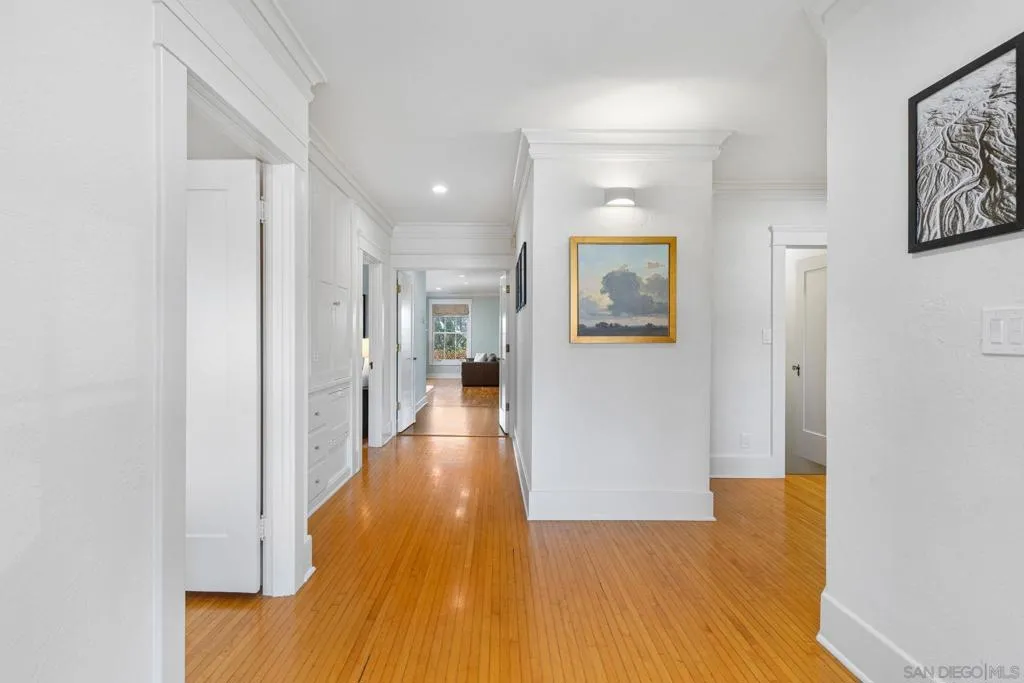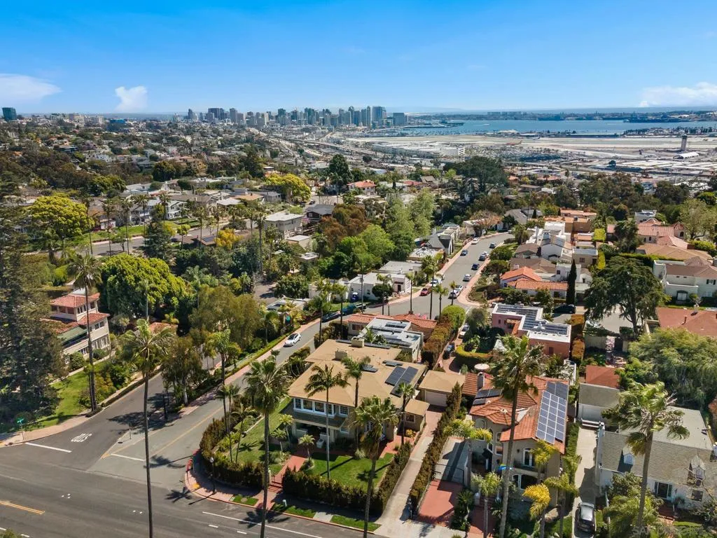 Nestled in the prestigious Inspiration Heights Historic District, this distinguished Mission Hills estate seamlessly blends timeless character with modern upgrades! Positioned on a prime corner lot, the property enjoys MILLS ACT status, offering significant property tax savings. Inside, stunning architectural details include crown molding, intricate gumwood paneling, and leaded glass cabinetry. The formal dining room, enriched by period built-ins and French doors, sets the stage for elegant gatherings, while the thoughtfully designed kitchen boasts Sub-Zero appliances, dual ovens, handcrafted Pewabic tiles, and a sunlit breakfast nook. This extraordinary home is designed for both comfort and convenience, featuring an elevator, a basement with a dry sauna and workout space, and a luxurious primary suite with a remodeled bath, steam shower, and a private balcony with peek ocean views. The property is complete with owned solar panels, brand new electrical throughout the home, a detached two-car garage, and a private yard featuring a deck and terra cotta patio—perfect for outdoor entertaining. A true Mission Hills masterpiece, this residence embodies a harmonious blend of historical charm and modern sophistication.