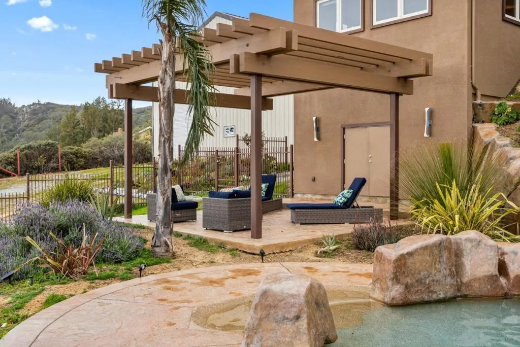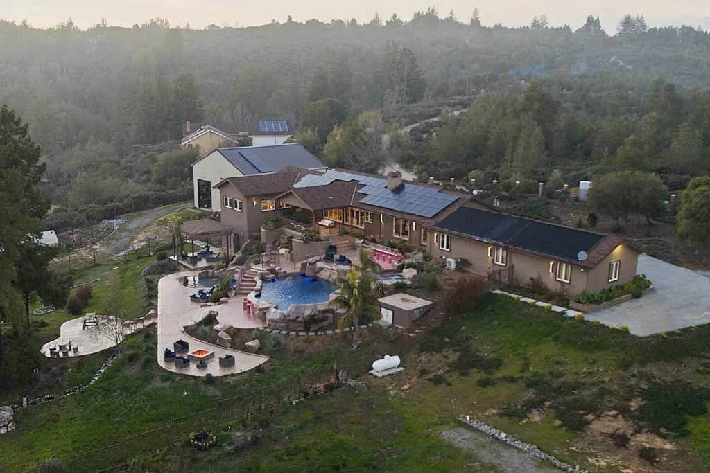OUTSIDE OF SILICON VALLEY, A MONTEREY BAY HORIZON | Private conversations here stay far away from the world below. Atop the Santa Cruz Mountains, this retreat offers escape from the noise, serenity, and views. Secure, private, ~1 hour from Silicon Valley, Palo Alto, and Monterey. Inside the home ocean views, natural materials, peace, quiet, and luxury define the space. Living areas open to decks overlooking the coast and resort grounds. Primary Suite with spa bath. Relax in your sauna or steam shower then step onto the balcony for mtn. air and an ocean view - spas in the valley could never. Guest bdrms open to a promenade overlooking the pools. 2500sf± basement w/dbl-door exterior entry and 12' ceilings is steps away from a beach-entry pool. Sit poolside or float atop sparkling water while gazing to the ocean, enjoy the juicy strawberries that grow! Picnic under the redwoods, get dirty in the veggie beds! Pre-dev. done for 1200sf Guest Hm w/400sf loft. Potential for: horses, vertiport, dirt-biking, golf, more. Rarely seen: power capacity for heavy demands; private water, security, and internet; solar power. For a compound, legacy retreat, or forward-looking property inviting new forms of air mobility, the groundwork is there. Income potential. Offering memorandum upon request.