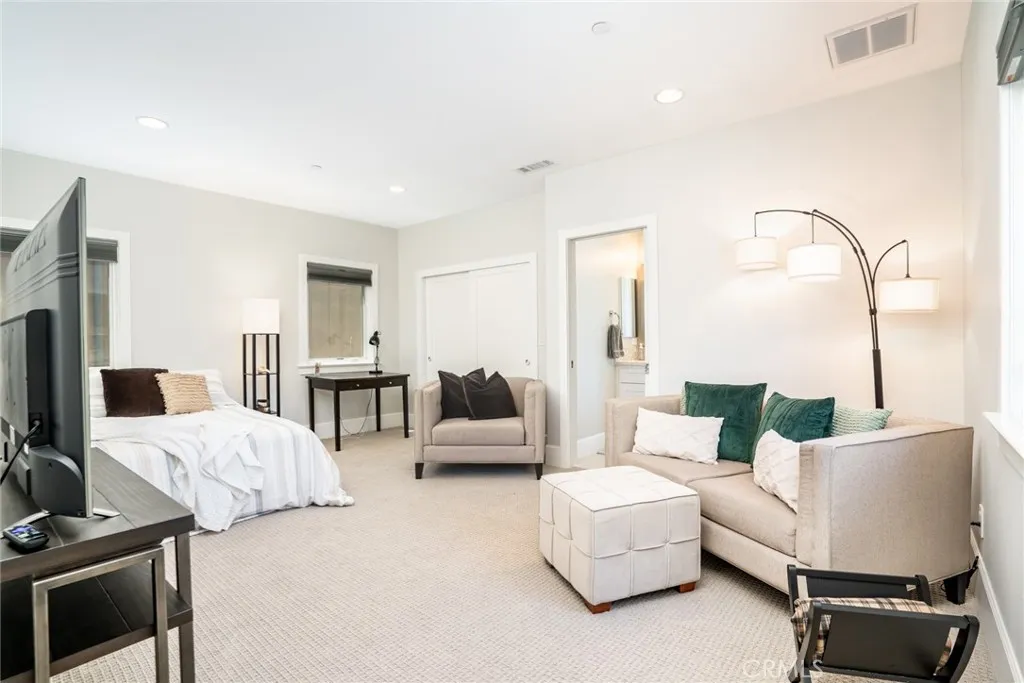 Smell the salt air, hear the breaking waves, feel the sand beneath your toes and realize.....you are not on vacation, this could actually be your forever home. Spectacular and contemporary 129 Dolphin is a newer, model perfect home with amazing style tucked into quaint and charming Old Town Seal Beach. With open concept living, dining, kitchen, a half bath, direct access garage and an exterior conversation area you can ENTERTAIN everyone. However, upstairs you'll enjoy 4 large bedrooms; 2 primary ensuites at opposite ends of the home and two additional ancillary bedrooms linked by a Jack and Jill bath, you can also ACCOMODATE everyone. Front primary suite has access to a HUGE rooftop deck with views, views, views! Crisp, clean lines soothing, seaglass colored accents and all furnishings are also available for purchase. The beach, the pier, the park, shopping, restaurants, personal services are all at your fingertips by walking just a few blocks in any direction. Whether a second home or a primary residence 129 Dolphin will make you feel like you are on vacation every day.
