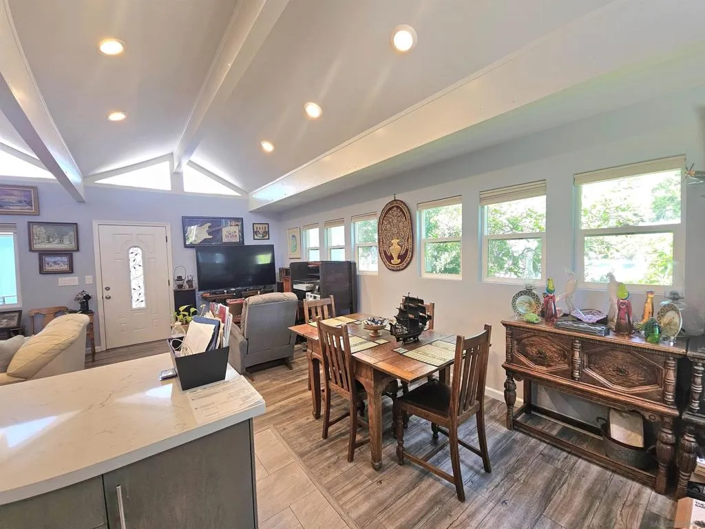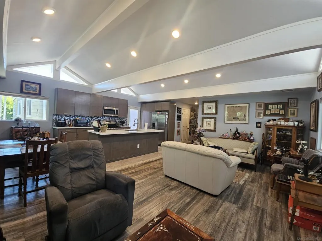 HIGHLY DESIRABLE PEPPERWOOD PARK A 55+ COMMUNITY. This gorgeous home was fully remodeled in 2018 offering stunning finished throughout home. Walking in to this home you will appreciate the vaulted ceilings with wood beams that offer plenty of natural light. Highlighting the open floor plan in the living area. The custom kitchen cabinets and large island with Quartz counters that opens to the living room is perfect for entertaining. All appliances are energy star & will convey, range/oven, microwave, dishwasher, refrigerator, washer & dryer. The 12 mm laminate floors run seamlessly throughout the home. The Primary suite has a large spa like bathroom with a spacious shower, a sliding door to a nice covered patio with peek views of evening city lights.