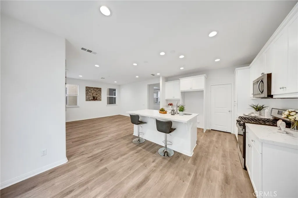 Located at 10532 Wilding, Rancho Cucamonga, CA 91730, this elegantly upgraded DETACHED residence is situated within the highly desirable “The Bungalows” at Terra Vista community, offering the privacy and distinction of a true single-family home with the added benefit of low property taxes and low special assessment—a rare and valuable advantage. Meticulously maintained and presented in near-new condition, the home reflects a refined balance of contemporary design and everyday comfort. The thoughtfully designed floor plan features generous ceiling heights, recessed lighting, and designer ceiling fan fixtures, creating a bright and sophisticated interior. At the center of the home, the kitchen combines modern elegance with exceptional functionality, showcasing shaker-style cabinetry with soft-close detailing, granite countertops with a full-height backsplash, a substantial center island ideal for casual dining or entertaining, and premium stainless steel appliances including a self-cleaning oven. Sliding glass doors open to a private rear courtyard, offering an inviting outdoor retreat and direct access to the detached two-car garage. The upper level features a well-appointed primary suite with dual vanities, granite countertops, a spacious shower, and a generous closet. Additional highlights include a secondary bathroom with a tub-and-shower combination, an upstairs laundry room, and a versatile downstairs den suitable for a private office, guest suite, or additional bedroom. Enhanced with modern efficiencies, the home includes owned solar panels, fiber-ready internet, Amazon Smart Home compatibility, a whole-house fan, and a tankless water heater—providing comfort, sustainability, and long-term value. Residents enjoy access to an impressive array of resort-style amenities, including a contemporary pool and spa, fitness center, sport court, clubhouse, fire pit, and outdoor entertaining areas. Ideally located near Victoria Gardens, with close proximity to premier shopping, dining, entertainment, and major freeways, this residence offers an elevated lifestyle in one of Rancho Cucamonga’s most desirable communities. An exceptional opportunity combining refined living, long-term savings, and prime location.