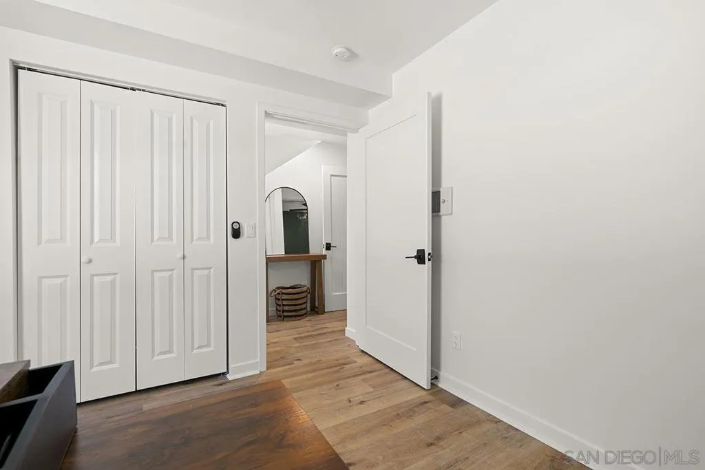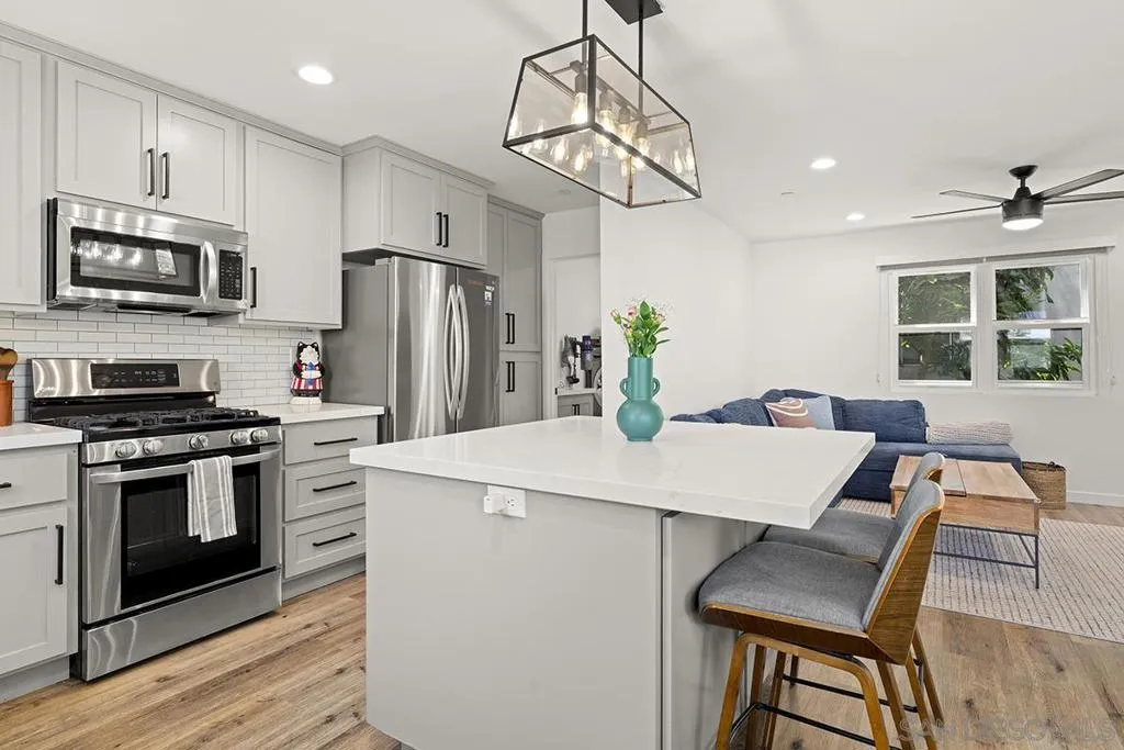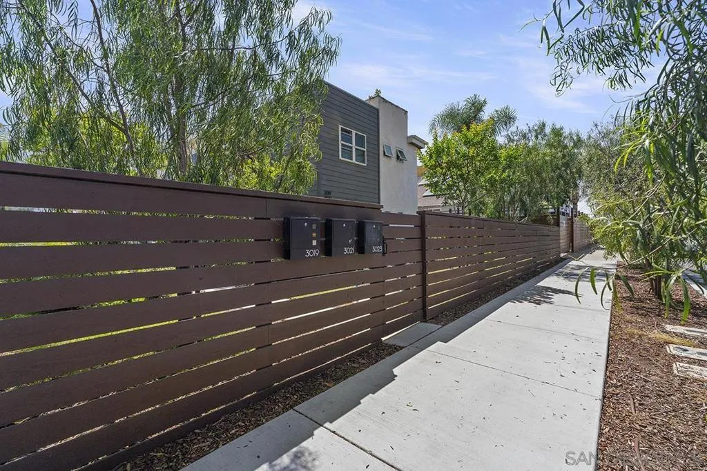 Ideally situated at the vibrant crossroads of South Park and Golden Hill, this striking townhome offers a rare blend of style, privacy, and location. One of only three residences in an exclusive gated enclave built in 2019, each home is fully detached—cleverly designed with faux connectors for aesthetic continuity—meaning no shared walls. The thoughtfully designed layout begins on the entry level, featuring an attached two-car garage, two spacious bedrooms, and a full bath—perfect for children, guests, or a home office. Upstairs, the light-filled main level showcases an open-concept design that connects the living, dining, and kitchen areas to an expansive patio, ideal for indoor-outdoor entertaining. This level also includes a powder room, laundry room, and a serene primary suite with direct patio access. At the top, a private rooftop deck delivers panoramic views from San Diego Bay and Coronado to Mexico and beyond—creating an unforgettable setting for relaxing or entertaining. Enjoy unbeatable access to some of San Diego’s best dining, shopping, and nightlife, along with close proximity to Balboa Park, Petco Park, downtown, major freeways, and the airport. This is a rare opportunity to own a truly unique home in one of San Diego’s most sought-after neighborhoods. Additional highlights include a quiet, insulated garage door with LiftMaster system, an outdoor space/dog run behind the garage, Milgard Quiet Line double dual-pane windows, and modern efficiency upgrades like a tankless water heater and EV/solar readiness. The chef’s kitchen features a large quartz island, abundant soft-close cabinetry, and stainless LG appliances. A spacious primary bedroom walk-in closet, automatic gated alley access, and low $215/month HOA fees complete the package. No size restrictions on dogs.
