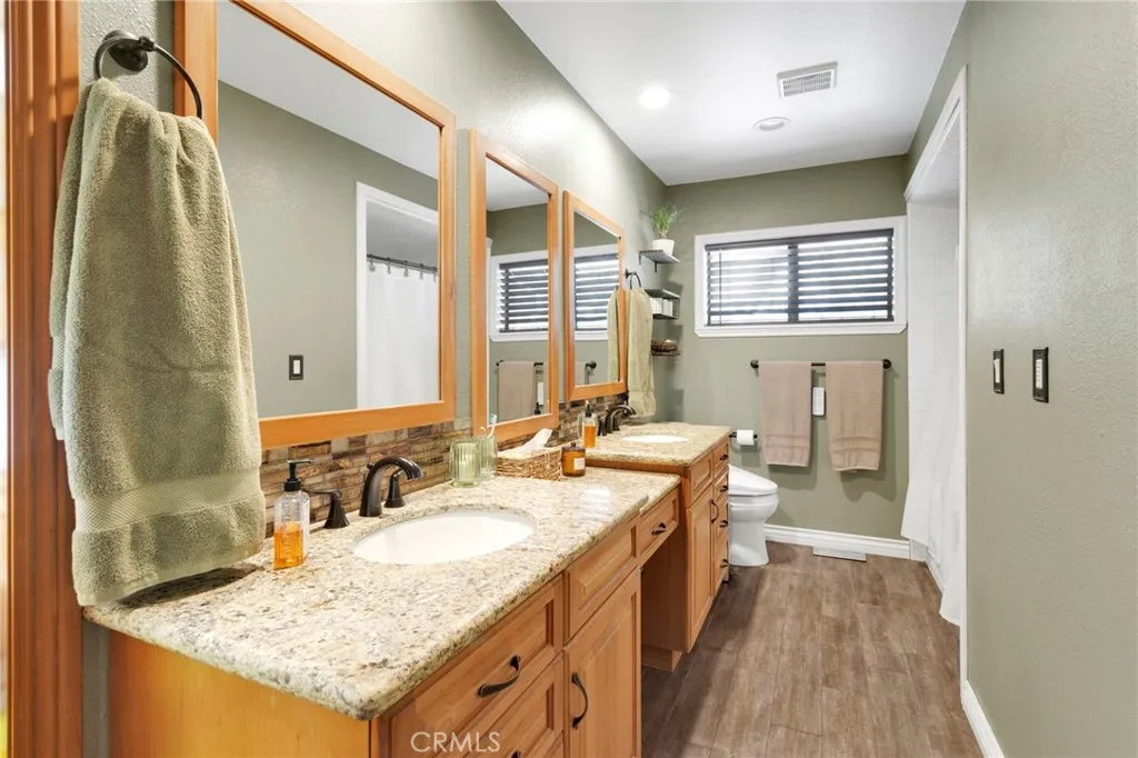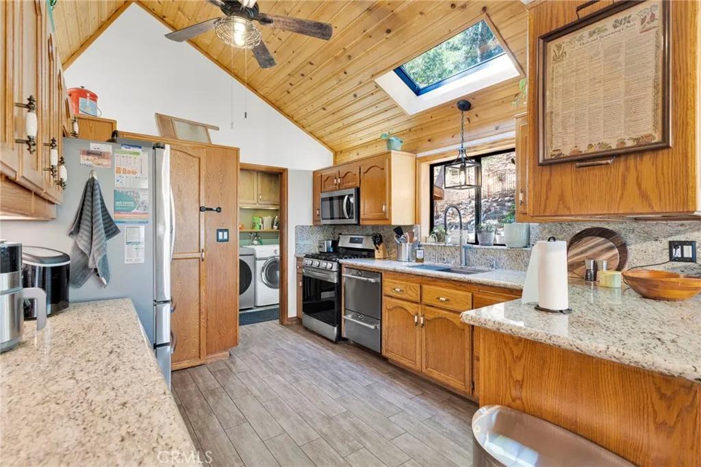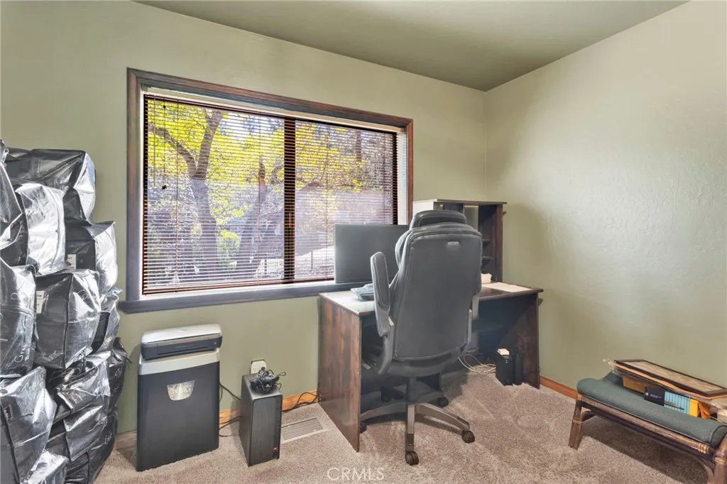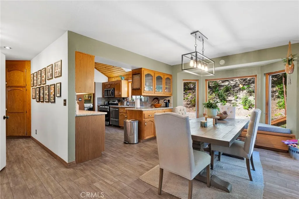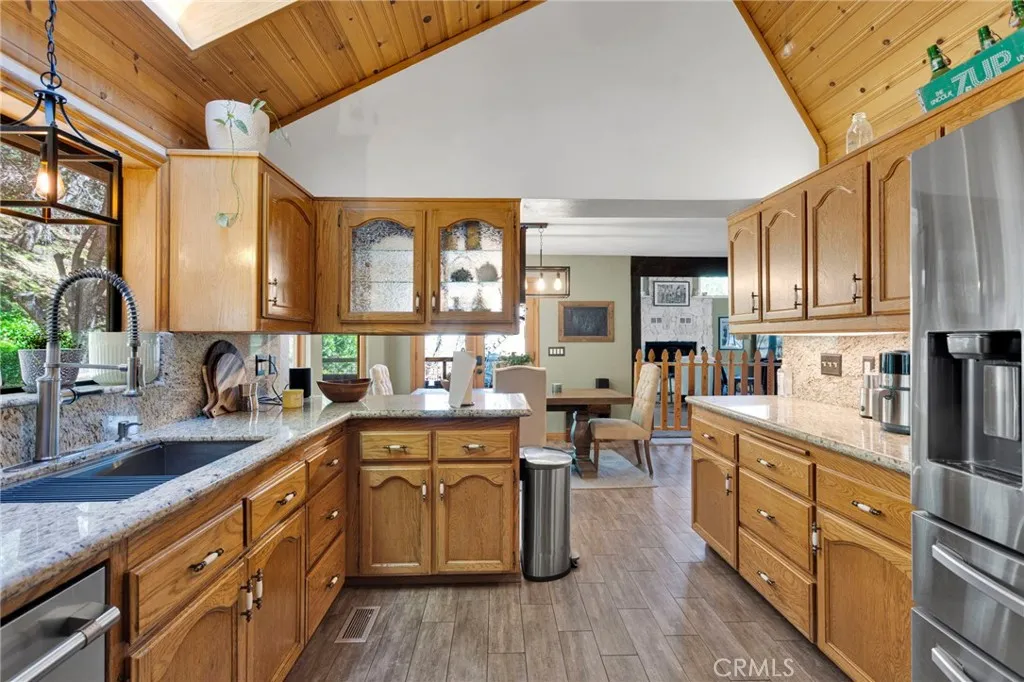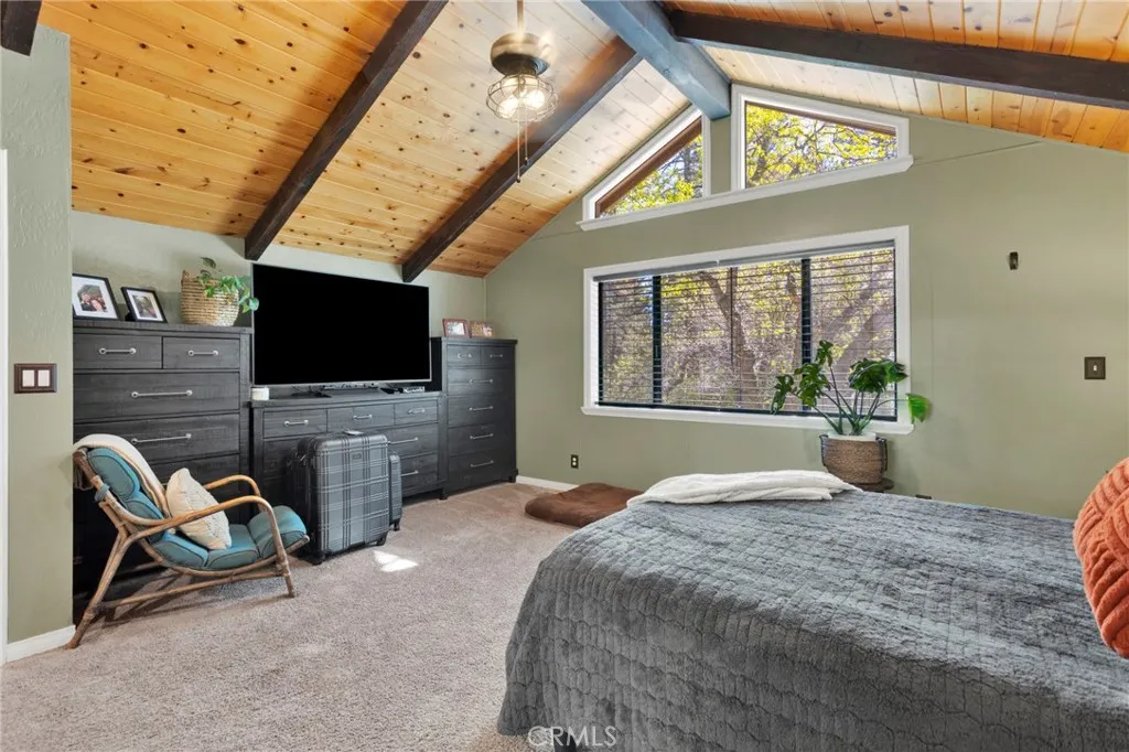 Vaulted wood-beamed ceilings, RV parking, and a massive garage with bonus space—this Wrightwood home offers the space, charm, and functionality buyers are searching for. Welcome to this beautifully maintained 3-bedroom, 2.5-bath home in the heart of Wrightwood, where pride of ownership is evident throughout. Offering a rare combination of space, functionality, and mountain charm, this property is designed for both everyday living and weekend retreat appeal. Step inside to find soaring vaulted, wood-beamed ceilings and an abundance of natural light streaming through oversized windows. The expansive family room features double doors that open onto the porch—perfect for indoor/outdoor living and entertaining. The thoughtfully designed kitchen is equipped with granite countertops and upgraded appliances, seamlessly connecting to the dining area, where a charming window seat creates the perfect cozy nook. The spacious primary suite offers a peaceful retreat, complete with a walk-in closet and a large ensuite bathroom featuring a relaxing jacuzzi tub. Downstairs, you’ll find a huge garage with built-in workbenches and ample storage, ideal for projects, gear, or additional workspace. A convenient half bath is located off the garage, along with a bonus room—perfect for a home gym, office, or flex space. Situated on a fully fenced lot with ample parking, RV parking, and plenty of storage, this property is as practical as it is inviting. Located just minutes from Wrightwood Village, hiking trails, and year-round outdoor recreation, this home offers the perfect balance of comfort, convenience, and mountain lifestyle. A must-see property that truly stands out—don’t miss this opportunity to own a piece of Wrightwood.
