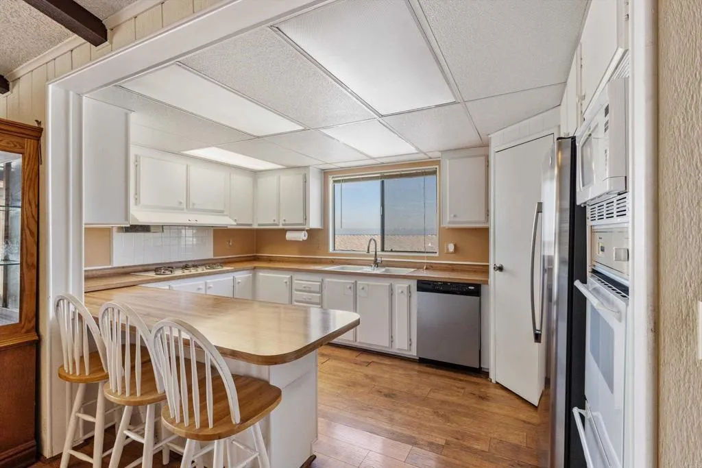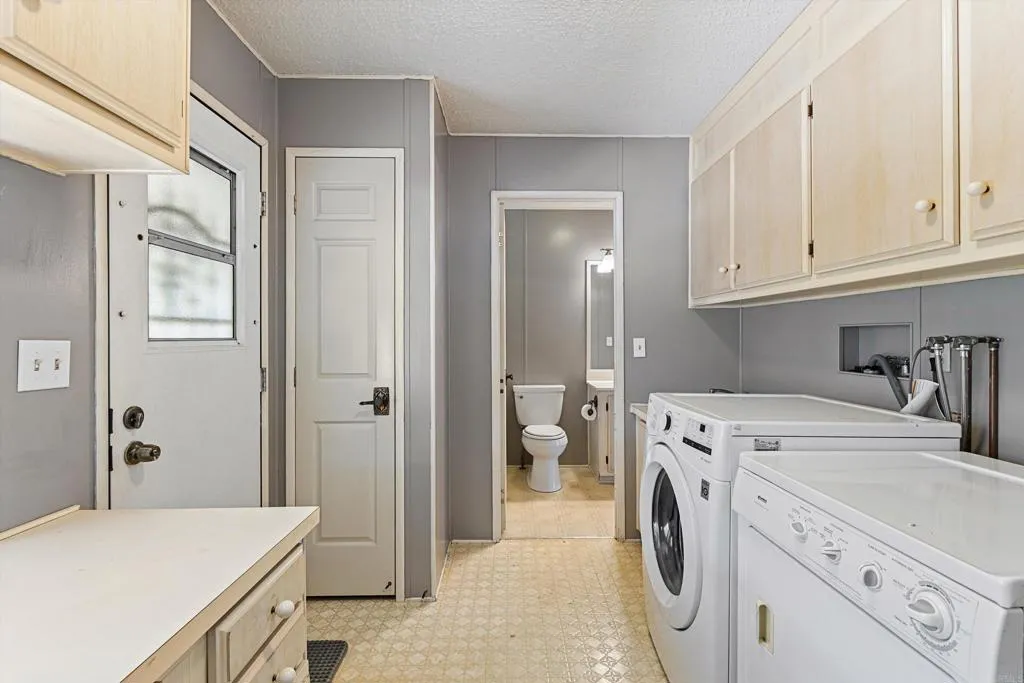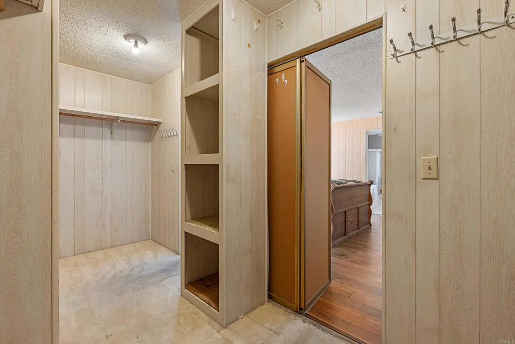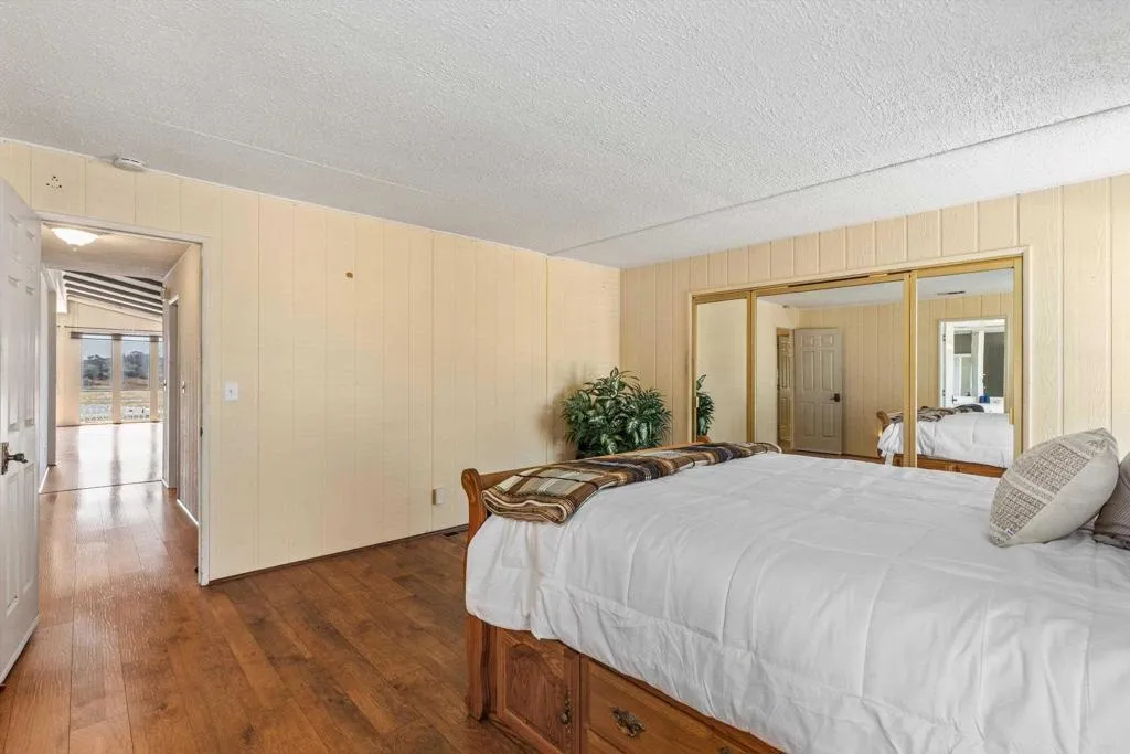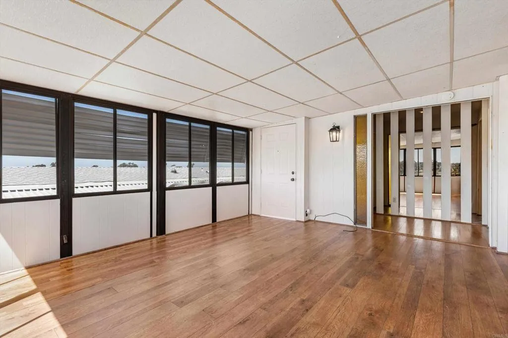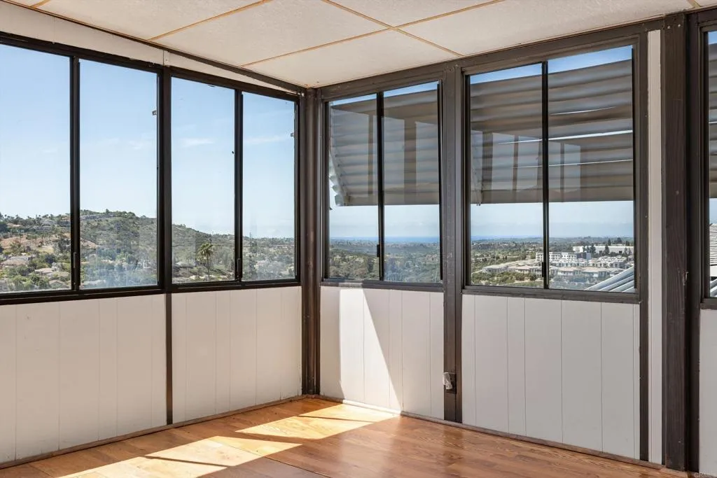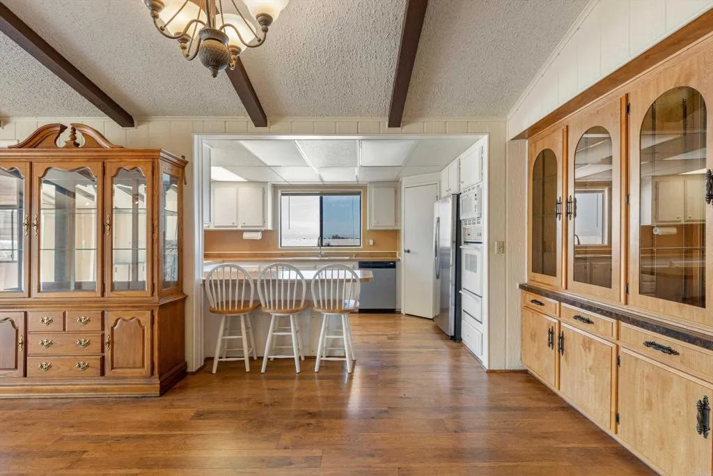 Elevated OCEAN-VIEW lot featuring a spacious, nearly 2,000 sq. ft. three-section home in highly desirable Palomar Estates West—a premier 55+ resort-style community with rent control. Located on a cul-de-sac near guest parking, clubhouse, amenities & activities! This post-HUD home qualifies for preferred financing, adding exceptional value. Designed with comfort and scale in mind, the expansive great room showcases vaulted beamed ceilings, a gas fireplace, and a wet bar, seamlessly flowing into the dining area and kitchen—ideal for both everyday living and entertaining. The kitchen offers a corner pantry, built-in dining bar, and newer refrigerator and microwave, along with abundant cabinetry and storage throughout the home. The oversized laundry room provides a deep sink, extended counter space, and additional storage. Both bedrooms feature walk-in closets, while the spacious primary suite includes dual sinks and a separate tub and shower. An enclosed porch/California room captures the ocean view, creating a peaceful indoor-outdoor retreat. Recent improvements include fresh exterior paint and newer central A/C. The widened carport allows for easier vehicle access, and the partially fenced, low-maintenance exterior features turf, a wheelchair-accessible ramp, and a generous storage shed. This five-star community permits two small pets per household (with park approval) and offers rent control, with space rent at approximately $808/month. Age 55+ with second resident allowed at 35+.