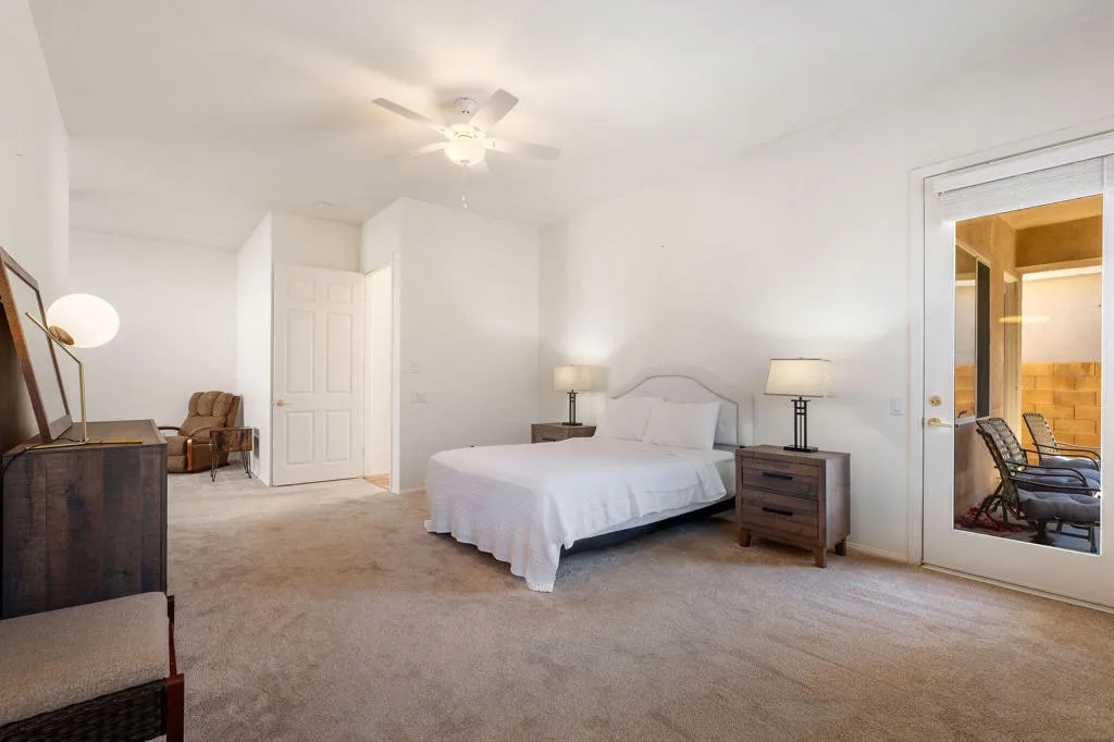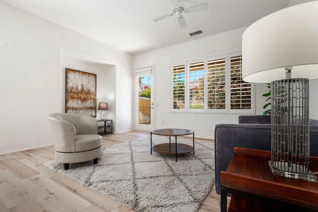 This beautifully maintained 2-bedroom, 2-bath home with an office/flex room is located on a quiet street in the desirable Heritage Palms community. The home is filled with abundant natural light, creating a bright and welcoming atmosphere throughout. Centrally positioned near La Quinta, it offers convenient access to world-class golf, dining, entertainment, and nearby casinos--truly one of the best locations in the desert.Heritage Palms is a premier 55+ resort-style community featuring an 18-hole championship golf course, indoor and outdoor pools, pickleball and tennis courts, a fully equipped fitness center, grill room, card and billiards rooms, and a wide variety of social clubs and activities.