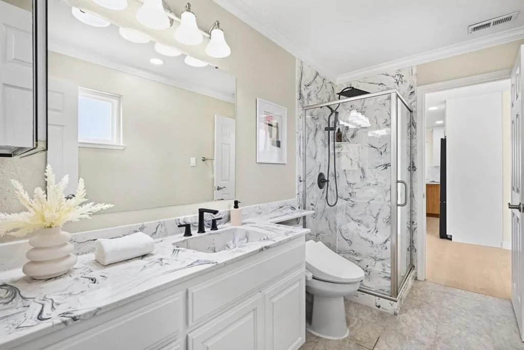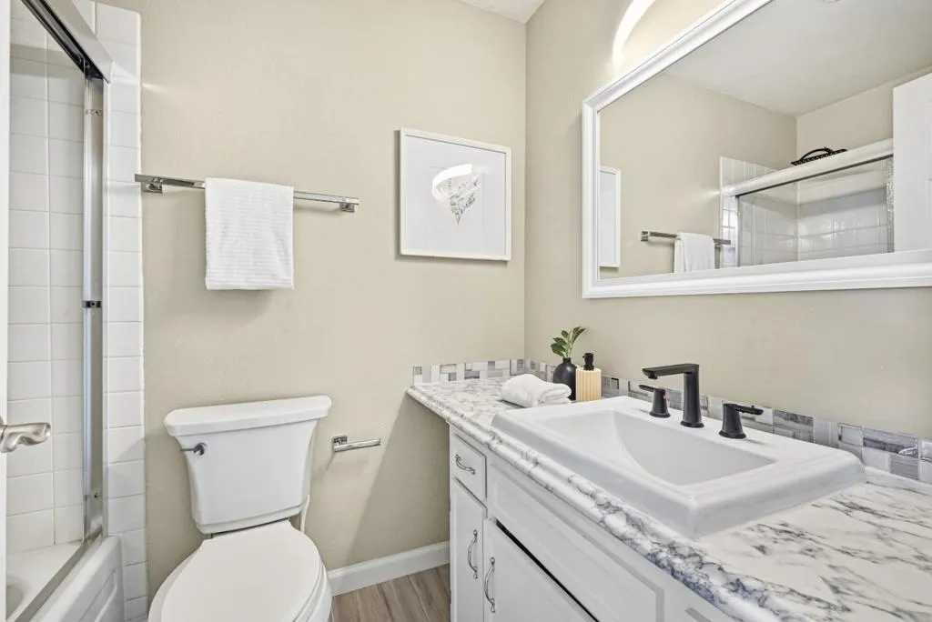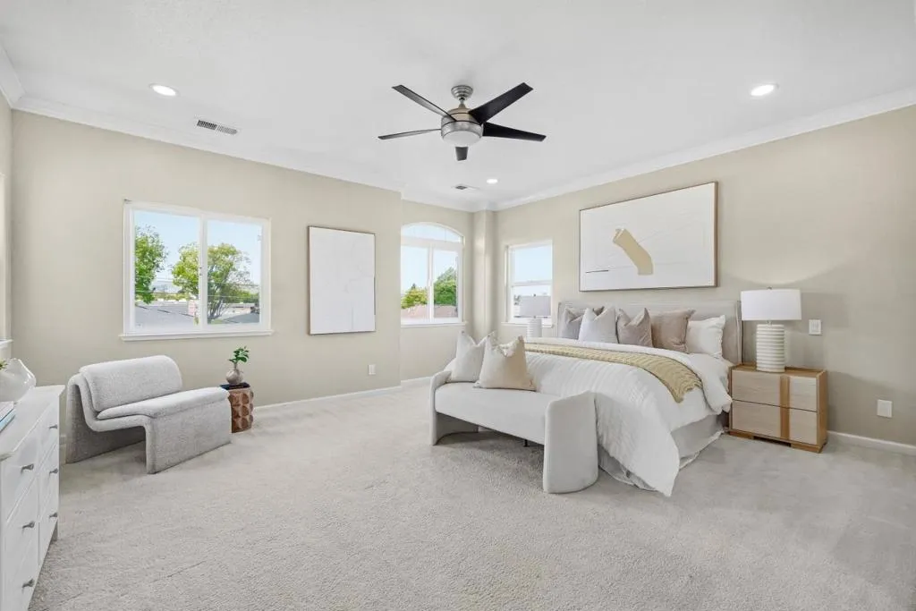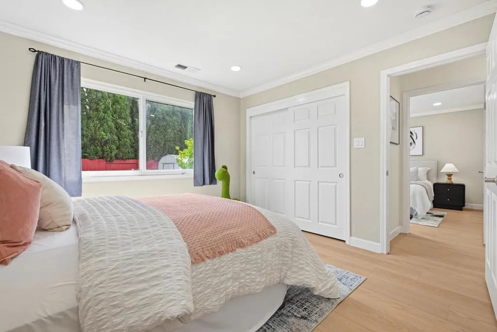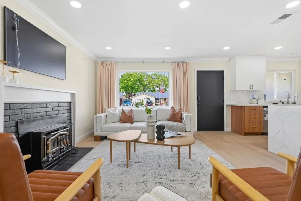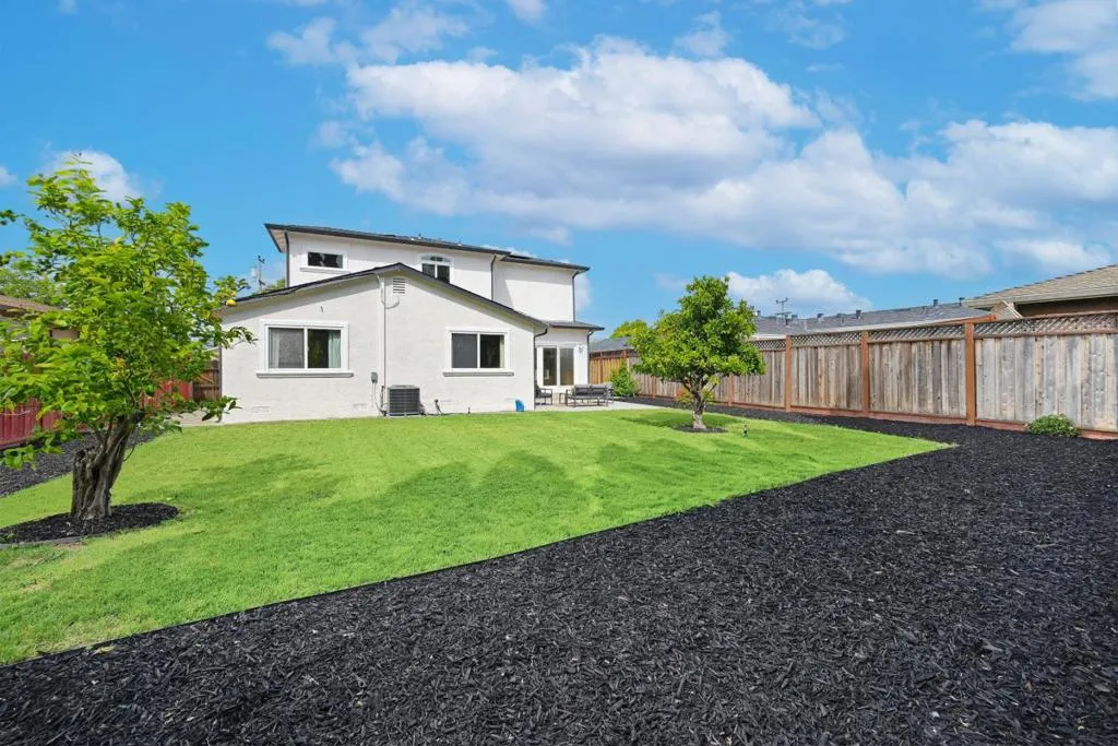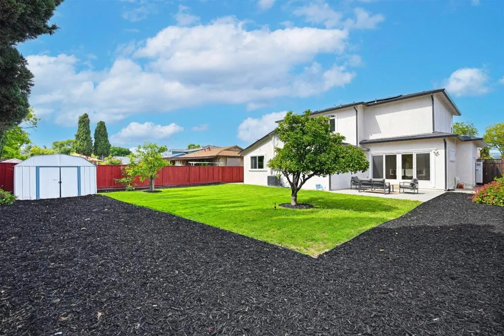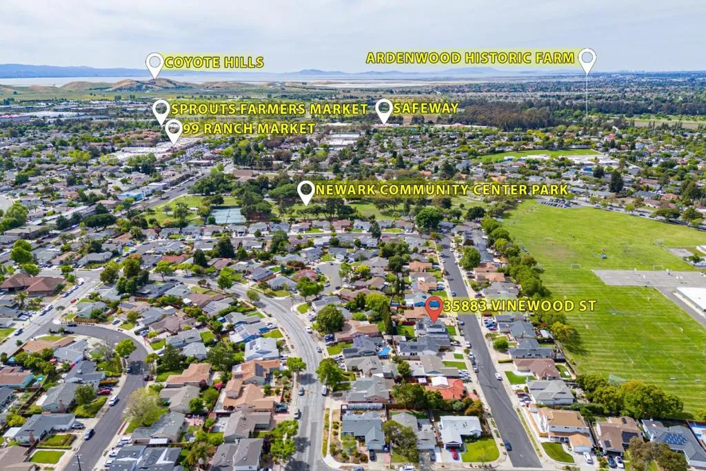 Welcome to this beautifully updated 3BD/3BA home (2,176 sq. ft. on a 7,020 sq. ft. lot). With high ceilings and an integrated A/V system, this turnkey gem blends modern luxury with comfort. The showstopper chef's kitchen boasts a massive stone waterfall island, two-tone cabinetry, floating shelves, and built-in appliances. Entertain by the living room's wood-burning fireplace or in the separate family room. A special highlight: fresh, consistent wide-plank laminate flooring flows seamlessly throughout all the newly updated bedrooms. The primary suite features a spa-like bath with an oversized jetted tub and stall shower. Step outside to a fully renovated backyard paradise complete with a multi-level paver patio, crisp lawn, sleek dark gravel beds, and a modern shed. Includes central heat/air, ceiling fans, and an attached 2-car garage with laundry. Located in the Newark Unified school district. Your dream home awaits!