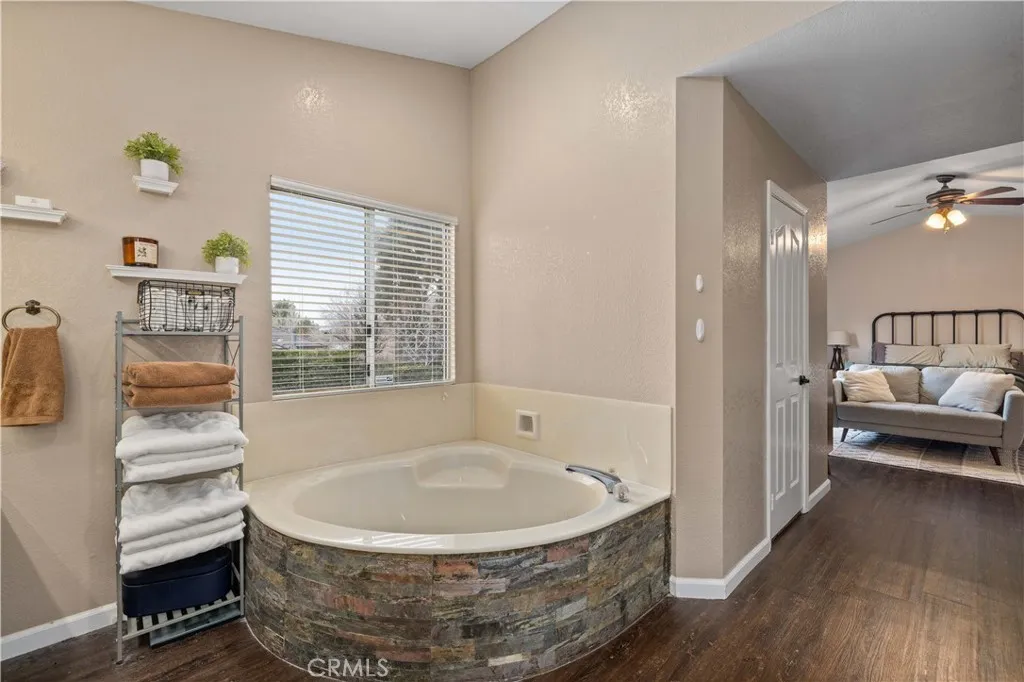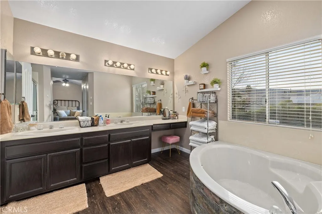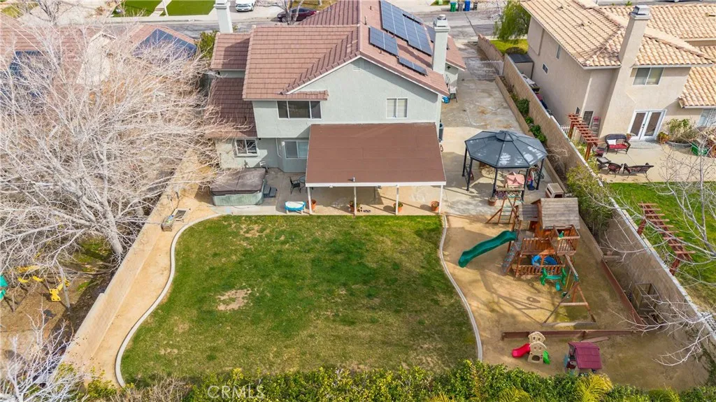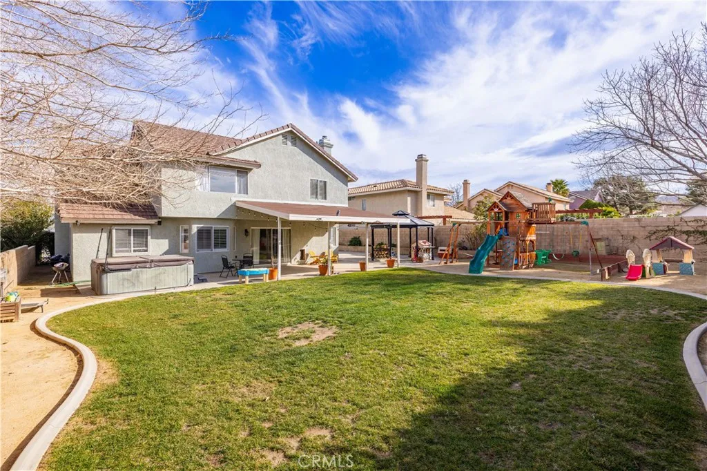 Nestled in the sought-after Quartz Hill community, this beautifully appointed residence offers 2,730 square feet of refined living space on a 9,595 sq ft lot, blending elegance, comfort, and functionality. Featuring 4 spacious bedrooms and 3 bathrooms, the home includes a Jack-and-Jill bathroom and a private office with its own fireplace, perfect for remote work or a quiet retreat. The open-concept floor plan is enhanced by soaring ceilings, abundant natural light, and modern chandeliers that create a striking first impression. The expansive living room is anchored by a stylish fireplace, ideal for both intimate evenings and upscale entertaining. Recessed lighting throughout the home adds a warm, contemporary ambiance. The kitchen is thoughtfully designed with ample cabinetry for generous storage, seamlessly connecting to the dining and living areas for effortless entertaining. Upstairs, a versatile loft provides additional space for relaxation, a media lounge, or a secondary living area. Outdoors, the property offers generous front and backyard spaces, perfect for entertaining, relaxing, or future customization. RV access along the side of the home adds rare convenience, while fully paid solar panels provide energy efficiency and long-term savings. This exceptional Quartz Hill home delivers luxury, space, and modern living in one remarkable package.