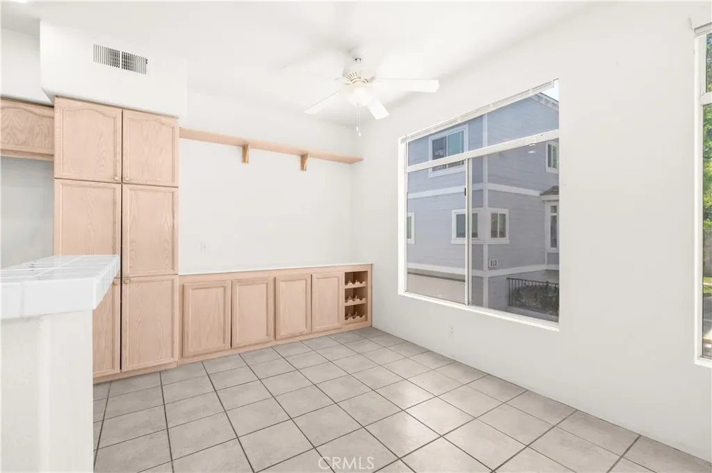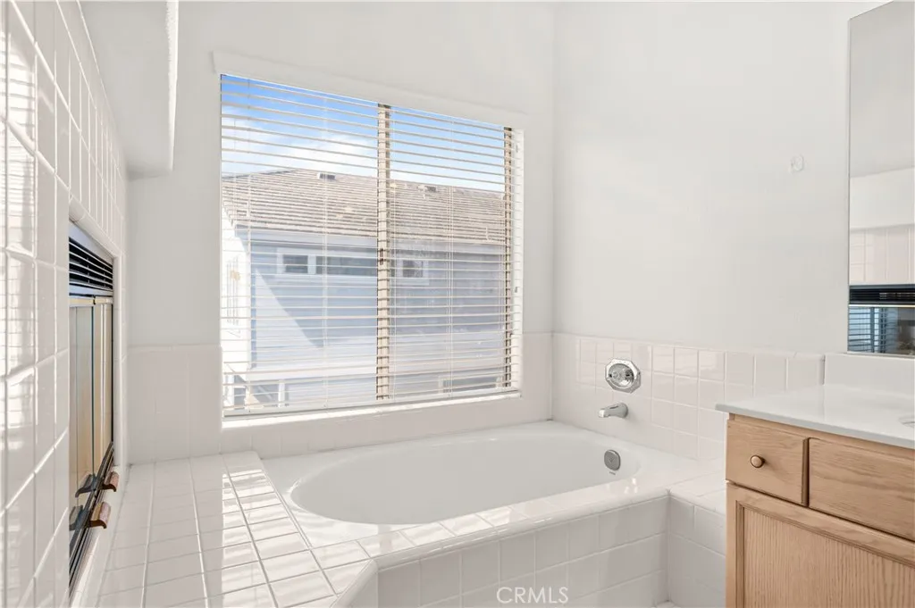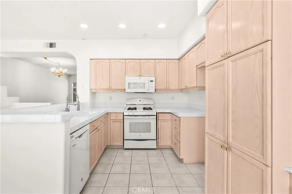 Welcome home to this spacious 3 level townhouse style condo located in the gated Huntington Condominiums community in Orange CA. From the moment you walk through the front door you'll feel right at home. The living space is open and bright with tile flooring and plush carpet throughout. The main level flows right into an open concept kitchen and dining area through an arched doorway. The kitchen features light wood cabinetry, a kitchen island with tile countertops, gas range, dishwasher and recessed lighting with tons of cabinet storage. Step out to your own private covered porch overlooking the community grounds perfect for morning coffee or just relaxing after a long day. Upstairs the skylit hallway leads you to spacious bedrooms including a primary suite that really stands out. It has its own fireplace, a spa like bathroom with a soaking tub and a generous walk in closet with plenty of built in shelving and storage throughout. The community has a pool, spa and tree lined walkways that make it feel like a resort.