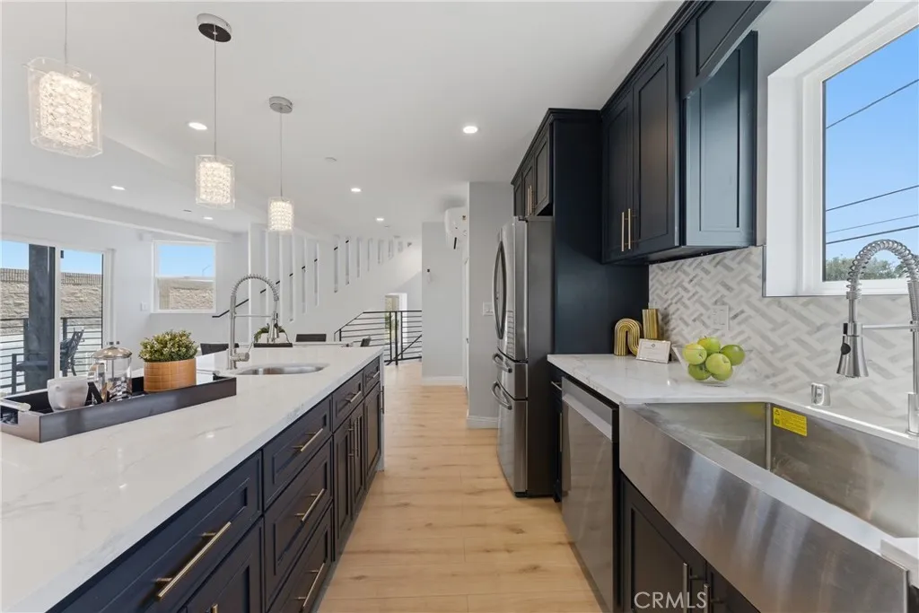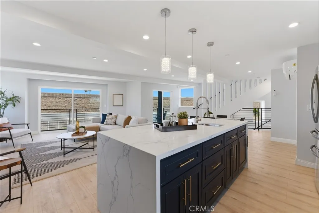 Experience modern living in this stunning new construction tri-level home located in a quiet cul-de-sac in the heart of Culver City. Thoughtfully designed, this 3-bedroom, 2.5-bath residence offers a versatile floor plan with the primary suite conveniently located on the first floor for added privacy. The second level showcases a bright and open-concept layout featuring a beautiful kitchen, living, and dining area—perfect for entertaining. The chef’s kitchen is equipped with a spacious island, sleek stainless steel appliances, and a built-in wine cooler. Upstairs, the third floor offers two additional bedrooms and a full bath, providing comfortable space for family or guests. Enjoy indoor-outdoor living with three private balconies throughout the home. This all-electric property includes fully paid-off solar panels for energy efficiency and long-term savings, along with a convenient 2-car garage. Low-maintenance front and backyard add to the home’s ease of living. Ideally situated near the 405, 10, and 90 freeways, this home offers easy access for commuting and is just minutes from the beach, dining, and entertainment. A rare opportunity to own a stylish, eco-friendly home in a prime Culver City location. A rare opportunity to own a stylish, eco-friendly home in a prime Culver City location.