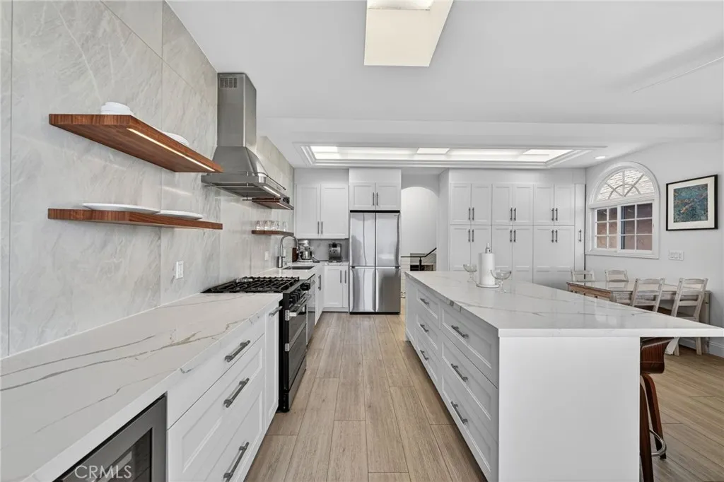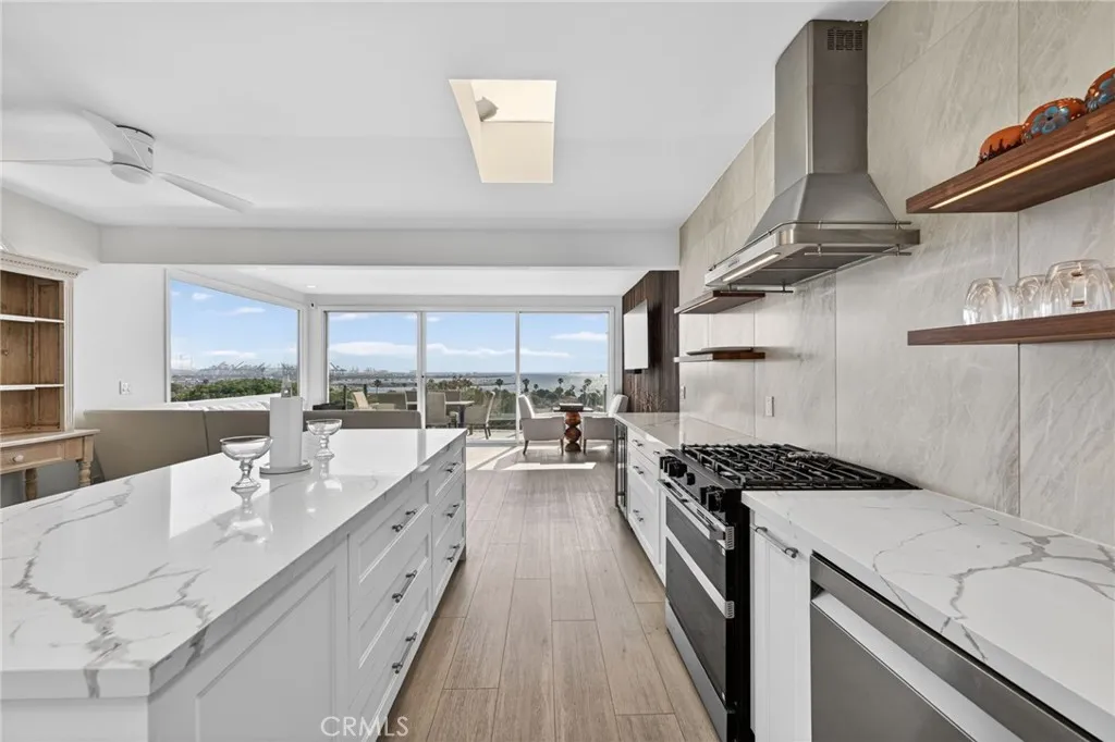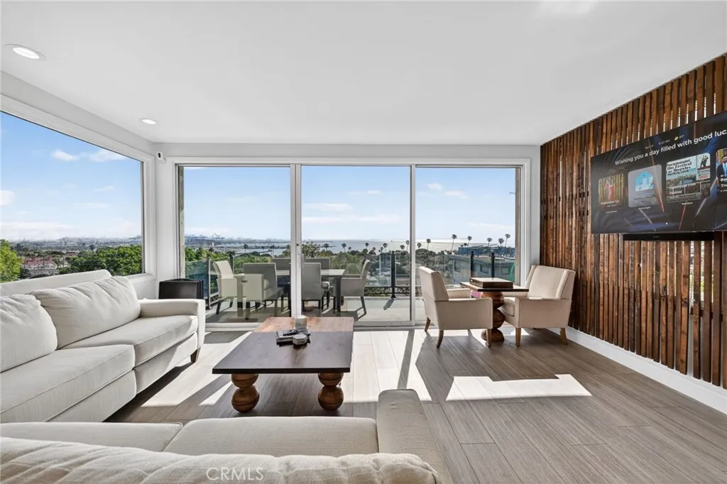 Wake up to ocean views with not one but two private decks as the sun sets over the Pacific… Welcome to the highly sought-after Point Fermin View Corridor of San Pedro. This updated multi-story home greets you with a warm ambiance and stunning, unobstructed 180-degree vistas—stretching across the Pacific Ocean, Los Angeles Harbor, the breakwater, and all the way to the iconic Vincent Thomas Bridge. Featuring 3 bedrooms and 3 bathrooms, the home is thoughtfully designed to capture its breathtaking surroundings, highlighted by a full wall of glass windows that seamlessly frame the view and bring the outdoors in. Inside, the home is filled with natural light, enhanced by skylights in the living room, kitchen, and foyer, creating a bright, uplifting atmosphere throughout. The interior has been updated with new soft-close kitchen cabinetry with built-in lighting, an extra-large island with quartz countertops, a new kitchen sink, luxury vinyl flooring, and a whole-house water filtration system. Adding to the home’s versatility is a private ADU-style space with its own separate entrance, one large bedroom, kitchen and bathroom, ideal for a home office, multigenerational living, extended guests, or a private retreat—offering flexibility and long-term value. From peaceful sunrises with your morning coffee to glowing full moons reflecting over the water and front-row 4th of July fireworks, the views here are not just seen—they’re experienced.