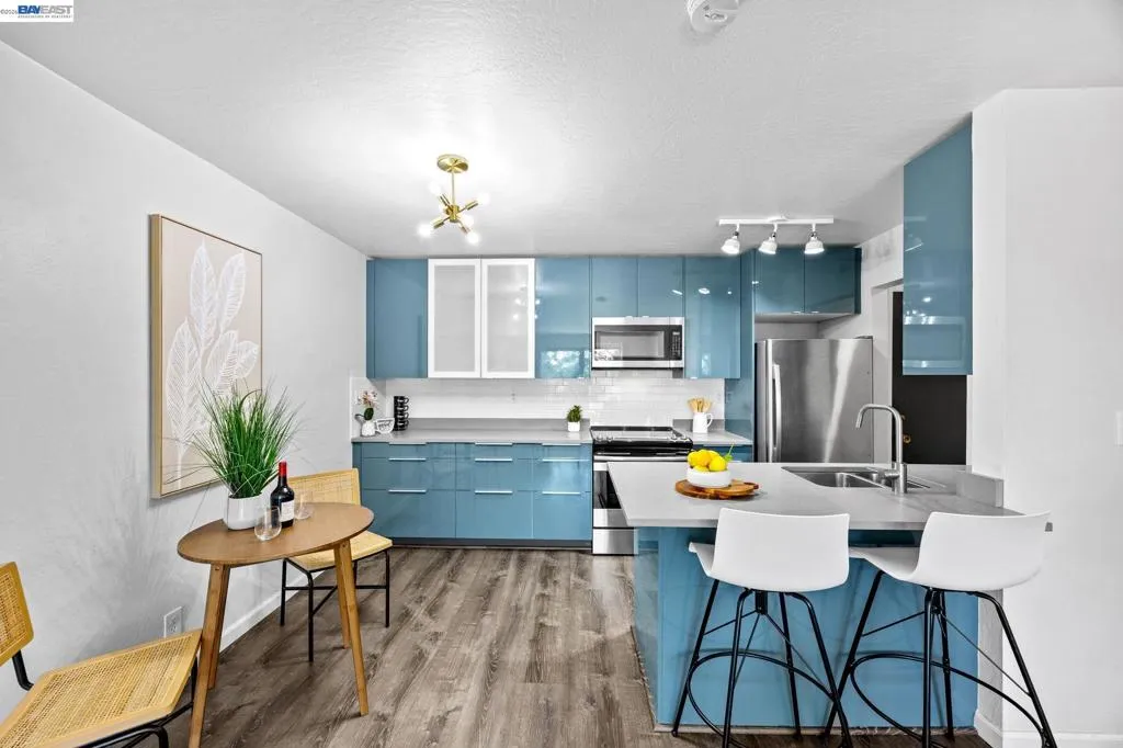 A rare opportunity to own Alameda’s best priced condo. Perched on the top floor, this beautifully remodeled 1 bedroom, 1 bath residence offers a light filled, thoughtfully designed layout that lives far beyond its footprint. Sunlight pours through the living spaces, creating a sense of openness and ease that is rarely achieved at this price point. Every detail has been carefully curated. Wide plank flooring, new windows, designer lighting, and a refined kitchen with stone countertops, custom cabinetry, and a striking backsplash come together in a clean, modern aesthetic. The open concept layout extends effortlessly to a private covered balcony with tranquil coastal views, offering a seamless indoor outdoor connection and an ideal setting for both quiet mornings and relaxed evenings. The spacious bedroom and updated bath continue the home’s cohesive design, while dedicated storage and parking add a layer of everyday practicality. What truly distinguishes this offering is its uncommon efficiency. HOA dues cover common area maintenance and most utilities, leaving only electricity, while Alameda Municipal Power (AMP) provides consistently lower energy costs compared to neighboring cities. For buyers prioritizing long term predictability and smart ownership, this is a meaningful advantage. Set just steps from the shoreline, the home is surrounded by the best of outdoor living, with scenic waterfront paths, parks, and only minutes to the best of Alameda’s local dining and top shopping. With convenient access to commuter routes, the ferry, and Oakland International Airport, the location offers a rare balance of calm island living and everyday connectivity. This is more than a home, it is a lifestyle investment. A place defined by light, framed by water, and grounded in quiet simplicity. This is a home that invites you to slow down, settle in, and truly love where you live. Open Houses: Saturday and Sunday, 4/25 to 4/26 and 5/2 to 5/3, 2 to 4 PM Offers Due Tuesday 5/5 at 12 PM Buyers are encouraged to review disclosures early and submit their strongest terms. Opportunities that combine this level of design, location, and financial efficiency are increasingly rare.