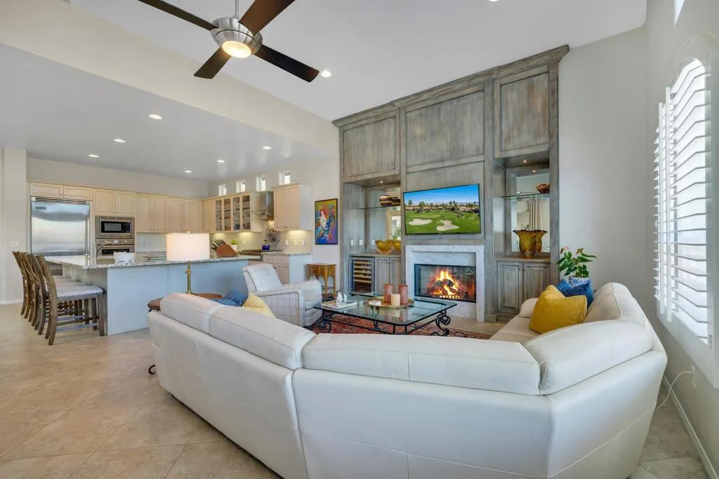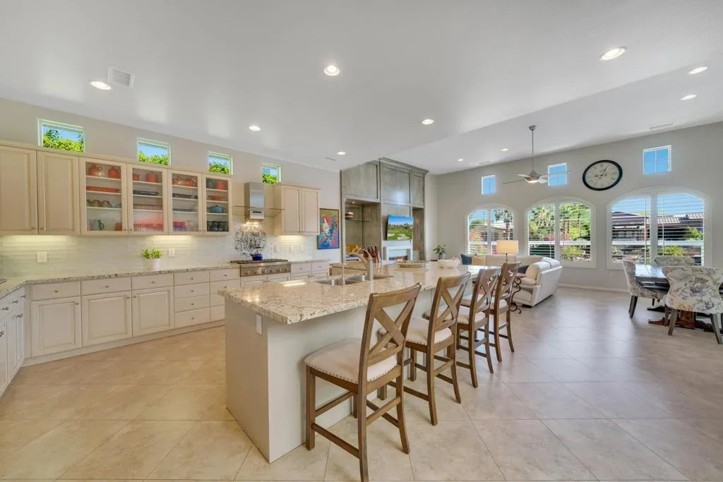 Experience desert living at its finest in the exclusive gated 9-acre lake community of Santo Tomas. Perfectly positioned on the water, this exceptional residence captures the essence of luxury, comfort, and resort-style living in one of Rancho Mirage's most unique settings.The thoughtfully designed floor plan offers 4 bedrooms and 4.5 bathrooms, including a private attached guest casita--ideal for visitors or multi-generational living. The chef's kitchen is both stylish and functional, featuring an oversized island, granite countertops, and professional-grade stainless steel appliances, all flowing naturally into the dining area and family room for a cohesive and inviting living experience.Step outside to a backyard that rivals any luxury resort. An infinity-edge pebble-tec pool and raised spa overlook the water, complemented by a cascading waterfall and a cozy conversation fire pit - all perfectly positioned to capture breathtaking lakefront views and unforgettable desert sunsets.This is more than just a home - it's a lifestyle. A rare opportunity to own a premier waterfront property in Rancho Mirage.