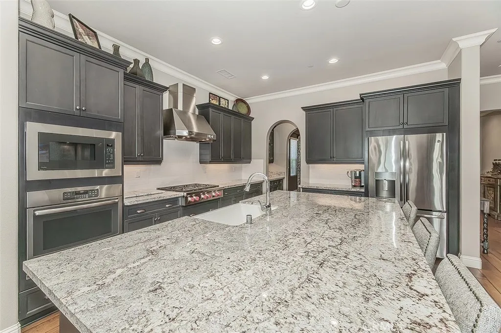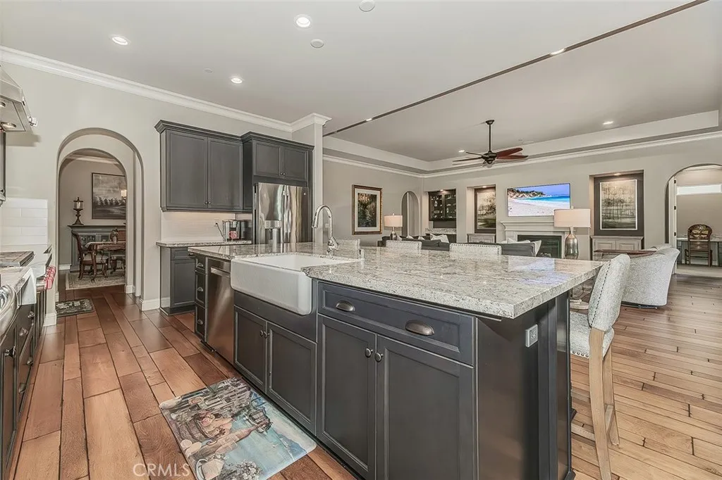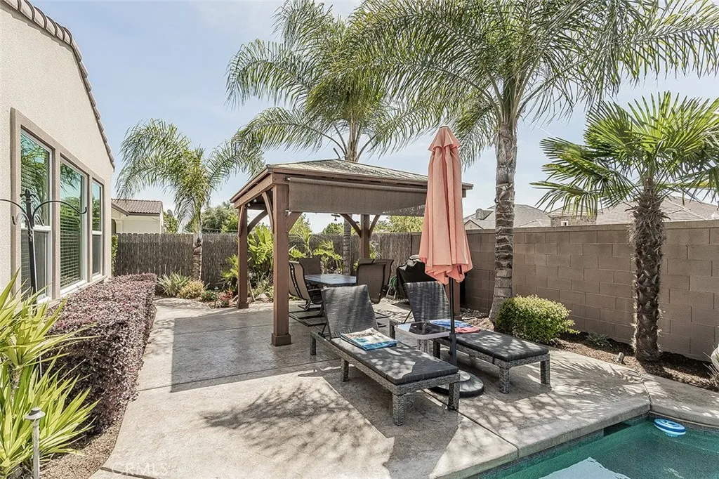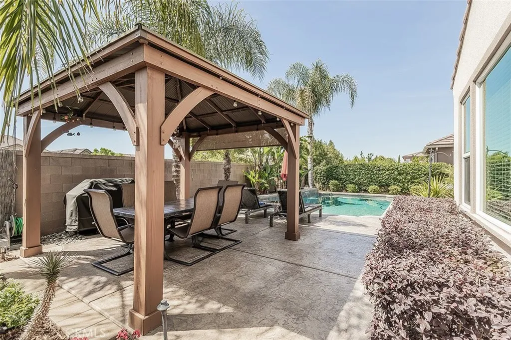 Welcome to 3160 Salem Ave in Clovis a beautifully maintained Wilson Homes residence that showcases true pride of ownership. This spacious 4-bedroom, 3-bathroom home offers a thoughtful layout designed for comfortable living and effortless entertaining. The interior features rich wood flooring throughout the main living areas, with tile flooring in the bathrooms for both style and durability. The kitchen is well-appointed with a Wolf gas cooktop, farm sink, Bosch dishwasher, Monogram exhaust hood, and GE Profile microwave and oven perfect for everyday living and hosting alike. The Great Room is equipped with surround sound system. Crown moulding in the Foyer Great Room-Kitchen-Dining Area, and Primary Bedroom . Upper cabinet and under-cabinet lighting. Step outside to your private backyard oasis, complete with a PebbleTec pool featuring elegant waterfalls and lighting, heated by an efficient Sol-Tek solar system for year-round enjoyment. The outdoor space is enhanced by stamped concrete on the side and back yards, a charming gazebo, and a storage shed. A wrought-iron gate next to the garage adds both function and curb appeal. This exceptional home blends quality craftsmanship, thoughtful upgrades, and inviting indoor-outdoor living ready for its next owner to enjoy.