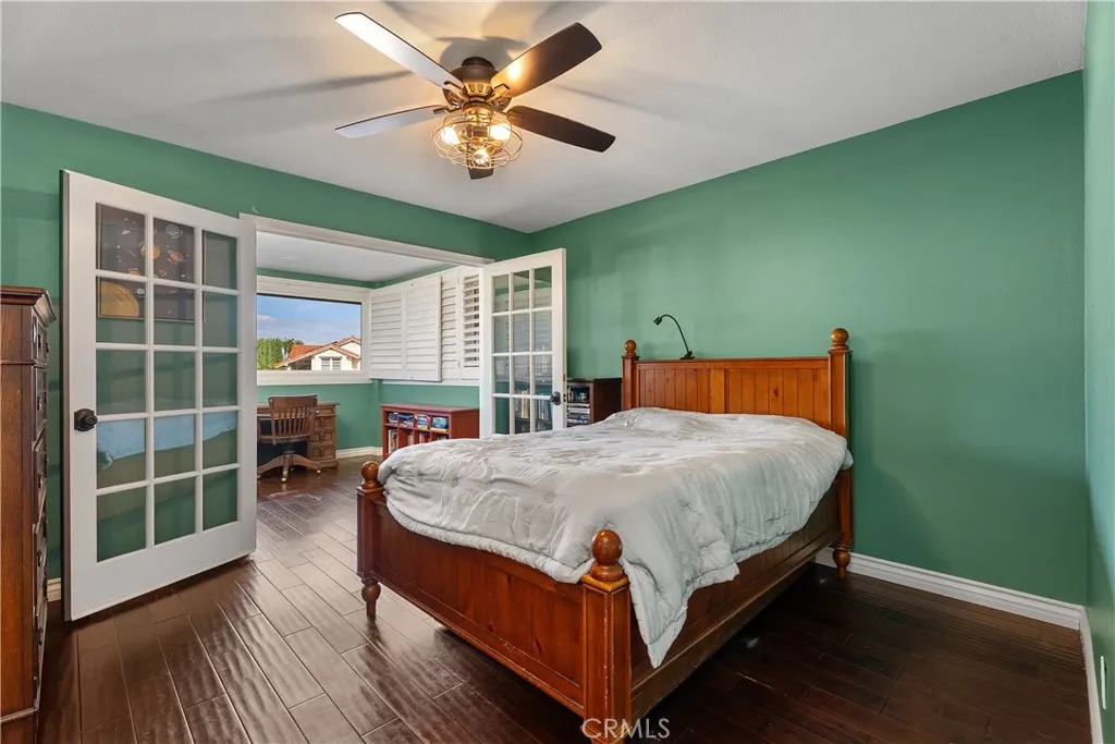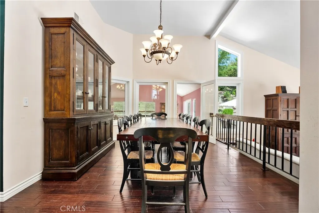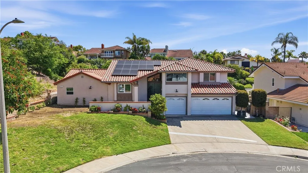 Versatile three-level layout with two private suite configurations, owned solar, and a backyard pool Set on a generous Lake Forest lot, this 5-bedroom, 4-bath, ~3,600 sq ft home is organized across three distinct living levels with two separate suite configurations — each with its own private entry, full bathroom, and living space. The main level centers on a vaulted formal dining room that seats twelve, opening to a sunken living room with fireplace and walls of windows. A separate eat-in kitchen anchors the level with a center island, granite counters, six-burner gas cooktop, double ovens, built-in microwave, dishwasher, and built-in trash and recycling — flowing into the family room with French doors to the backyard. Adjacent to the kitchen, a vaulted in-law suite offers flexible living with its own private exterior entrance, attached 1.75 bath, and a full pantry with refrigerator (easily configured as a kitchenette). A connecting window keeps the suite integrated when desired, fully independent when not — ideal as a guest suite, long-term-stay quarters, home office with separate access, or studio living. The lower level functions as a second self-contained zone: a den with fireplace, wet bar, bedroom, full bathroom, and direct access to both the garage and exterior. Effectively a guest suite paired with its own gathering space. The upper level houses the primary suite with dressing area, walk in closet, and double-vanity bath with linen storage, plus two secondary bedrooms — one with an attached bonus space well-suited as a study, nursery, or sitting room. Outside: private pool, in-ground spa, rock waterfall, and multiple patio zones surrounded by mature landscaping with timed drip irrigation on a ~20,800 sq ft lot. Owned solar (paid off). PEX repipe in 2023. Central A/C, two fireplaces, double-pane windows, wooden shutters, three-car garage. Saddleback Valley Schools (Rancho Canada / Serrano / El Toro). $70/mo HOA.