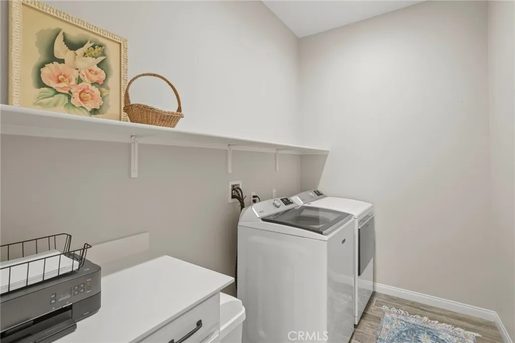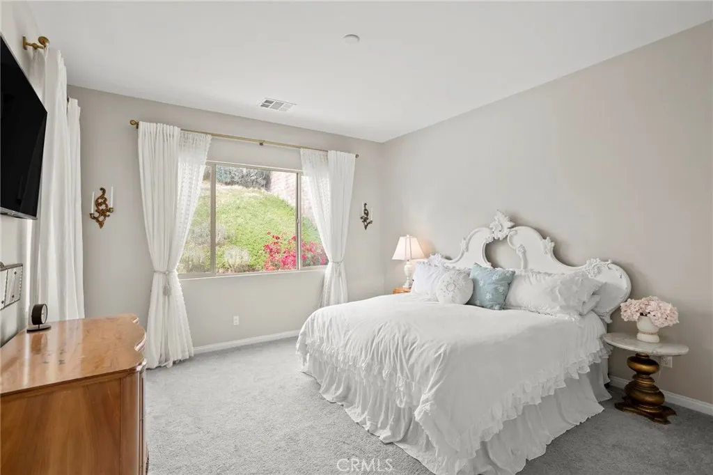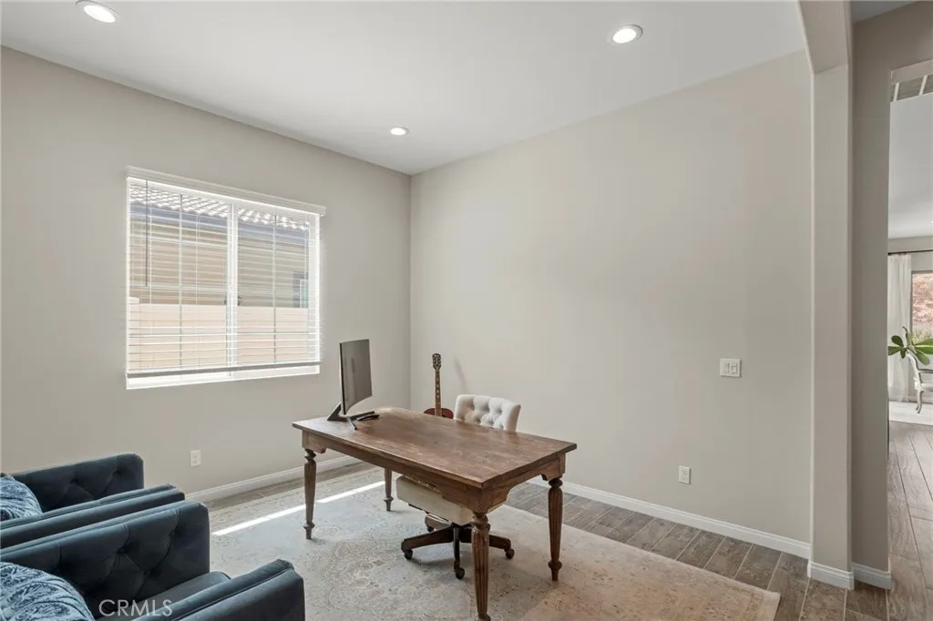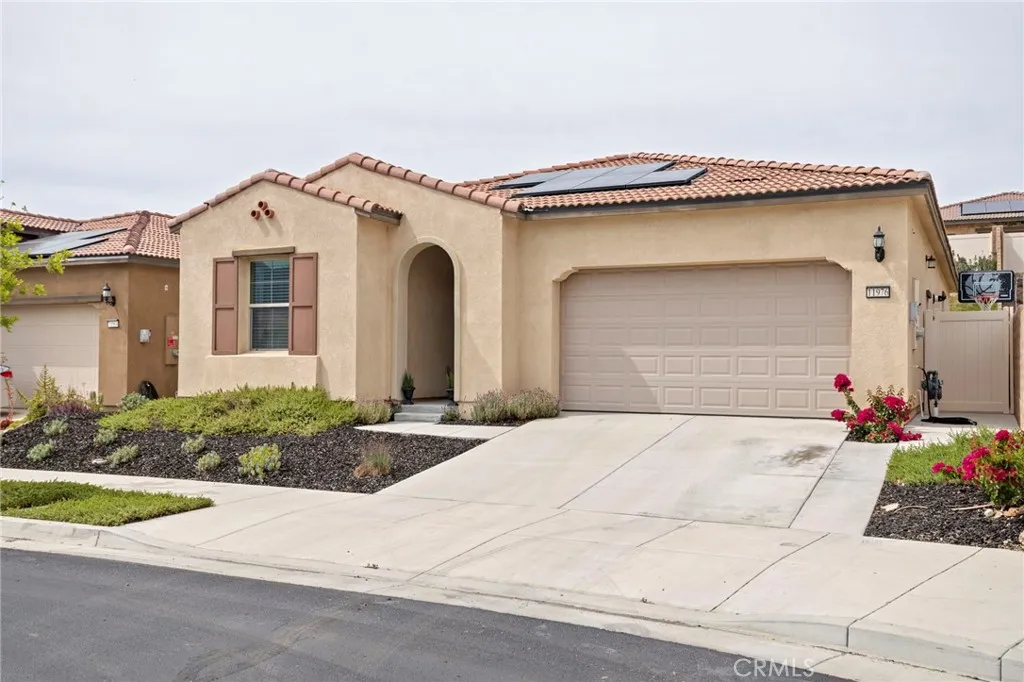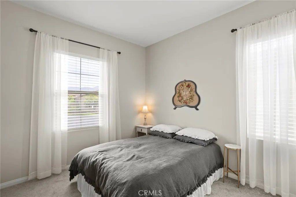 Situated on a premium lot at the end of a spacious cul-de-sac, this home offers exceptional privacy with no neighbors to one side and serene views from large picture windows. The inviting entry opens to a light-filled interior featuring cathedral ceilings and a thoughtfully designed layout that balances comfort and functionality. The main living areas flow seamlessly, highlighted by an upgraded kitchen equipped with a KitchenAid oven, convection oven, custom range top, pull-out drawers in most cabinets, soft-close cabinetry, pull-out trash cans, and a generous pantry. An adjacent office area, included as a builder upgrade, provides a flexible space for work or study. The home includes a full dining room, a guest bedroom, and a full bathroom on the main level, along with a large laundry room offering additional storage space. The primary suite is designed for relaxation, featuring an upgraded oversized soaking tub and a well-appointed bath. Enjoy indoor-outdoor living in the California Room, also an upgrade, perfect for entertaining or unwinding in a private setting. The backyard offers a peaceful retreat, enhanced by the home’s premium lot positioning. Additional highlights include a side garage door for convenience and ample storage throughout. Located within walking distance to community amenities, residents enjoy access to The Veranda Clubhouse with lounge and activity spaces, a resort-style pool and spa, fitness center, outdoor recreation trails, sports courts, and community gathering areas. The neighborhood also features a gated entrance, a full calendar of events, clubs, and daily activities, along with a community garden.