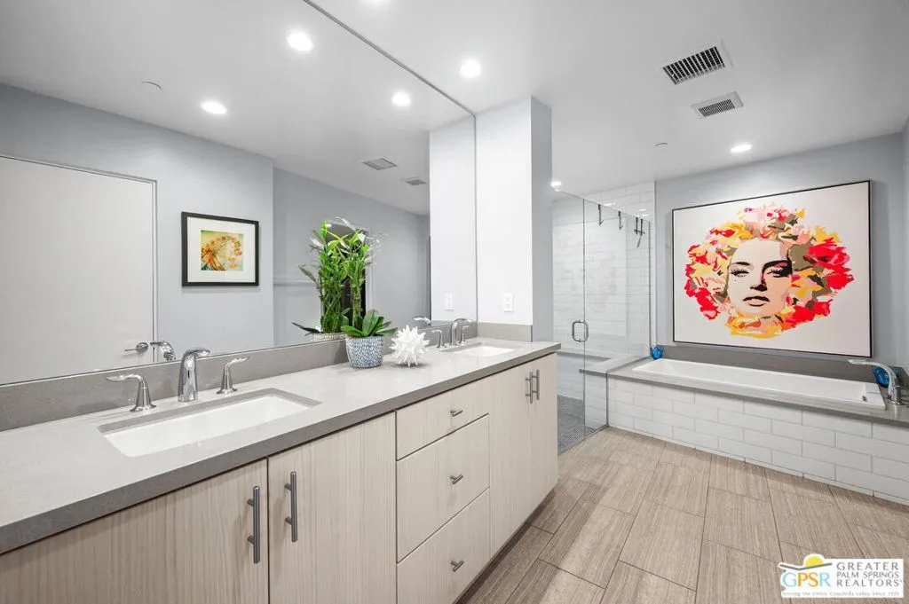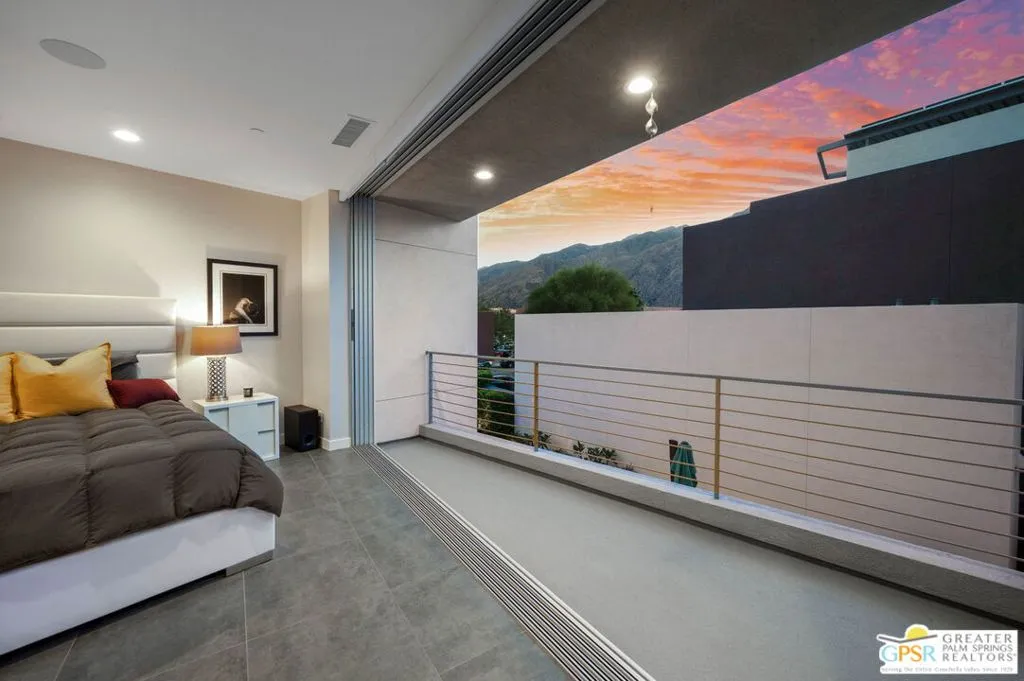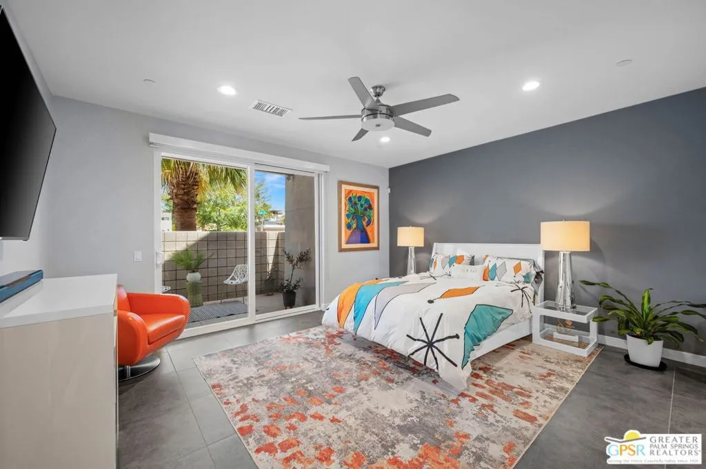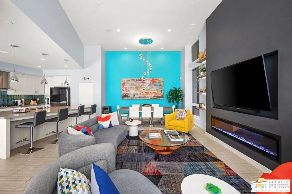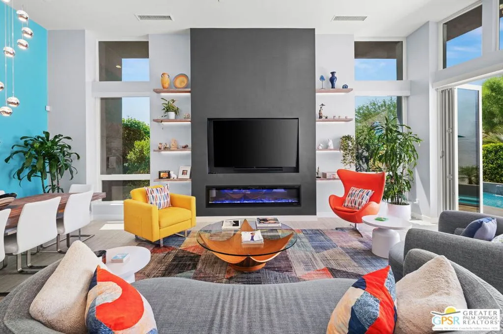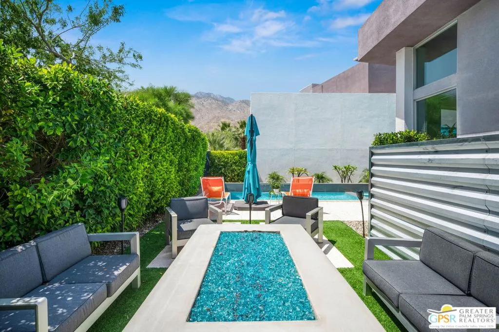 Positioned on a premier perimeter lot within the SOL community, this exceptional residence captures sweeping views of the San Jacinto mountainsan offering reserved for only a select few homes. Designed to embody the essence of Palm Springs luxury living, the property seamlessly blends architecture, privacy, and refined outdoor spaces into a truly elevated experience. Extensively enhanced with over $50,000 in curated upgrades, the grounds have been thoughtfully reimagined with maturing plumeria, jasmine, privacy hedge and palms, creating a lush, resort-like setting. The outdoor living area is both striking and functional, featuring a custom firepit lounge, premium artificial turf, and generous entertaining space designed to maximize both sun exposure and mountain views. Inside, a bespoke feature wall anchors the living area with a sleek fireplace and integrated illuminated shelvingbringing warmth, depth, and a designer finish to the home's modern aesthetic. Efficiency meets sophistication with a fully integrated energy-conscious infrastructure, including 16 high-efficiency 400W solar panels, an electric vehicle hookup, tankless water heater, and whole-home soft water systemdelivering both sustainability and long-term value without compromise. The kitchen is outfitted with a new Samsung smart refrigerator, complementing the home's clean, contemporary design and smart-home appeal. Offered furnished at the right price, this is a rare turnkey opportunity for the most discerning buyer seeking a refined, design-forward desert retreat. Distinct in both position and thoughtful upgrades, this residence stands apart from interior-facing homespriced to sell and impossible to replicate.