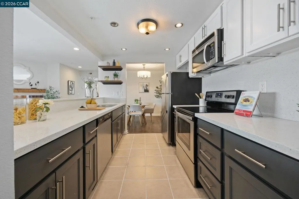 Rarely available and highly sought-after, this top-floor, end-unit 3-bedroom, 2-bath condo offers the perfect blend of space, style, and unbeatable Albany location. With 1,170 sq. ft. of light-filled living, this home delivers privacy, views, and everyday convenience in one of the East Bay’s most desirable communities. Enjoy an airy, open layout with updated luxury plank flooring throughout, a cozy fireplace, and seamless flow to a private patio showcasing scenic Albany and Berkeley Hills views. The modern galley kitchen features quartz countertops and stainless steel appliances—ideal for both daily living and entertaining. A beautifully updated primary bathroom adds a touch of elevated design. Just steps from El Cerrito Plaza, BART, Trader Joe’s, restaurants, and shopping, this location offers a true walkable lifestyle (Walk Score 94). Set within the top-rated Albany School District and including two secured garage parking spaces plus extra storage, this is a rare opportunity buyers wait for.