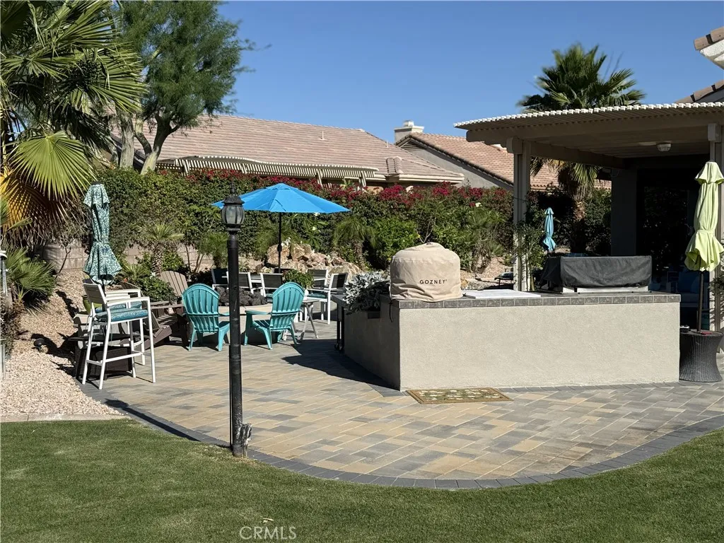 THIS IS A SHORT TERM RENTAL FROM JUNE THROUGH SEPTEMBER $4,000 MONTHLY! Located on a quiet cul-de-sac between the Sunset View and Lake View clubhouses, the property features a spacious lot with a custom spa and waterfall, a gas firepit, and a built-in BBQ island. Inside, the open-concept floor plan includes a formal entry, plantation shutters, and a great room with electric shades. The living room offers a corner fireplace and built-ins, while the primary bath features dual sinks, granite counters, a soaking tub, and a walk-in closet with an organizer system. Additional highlights include a guest en-suite for extra privacy, a powder room with a raised basin sink, and a spacious den/office. Make an appointment to tour this property for your next vacations!