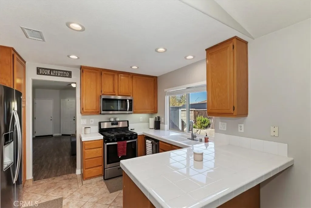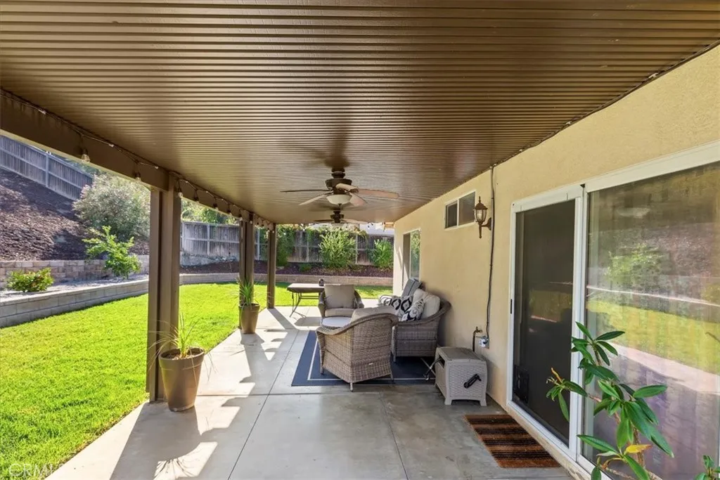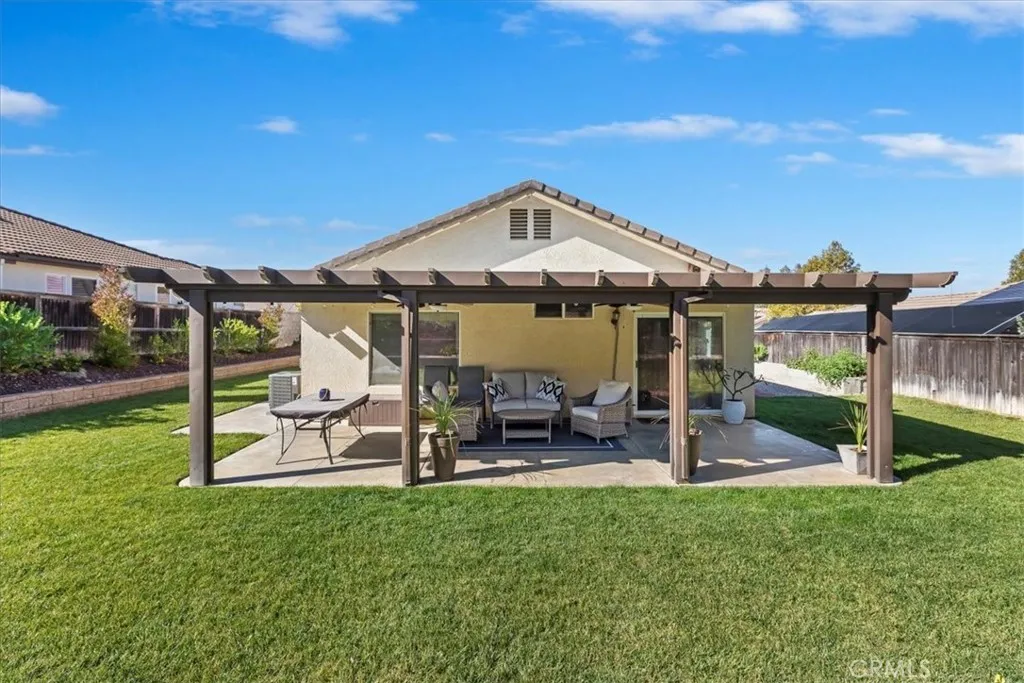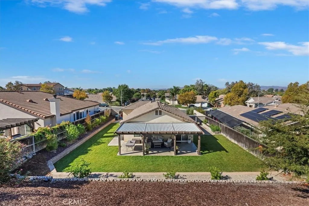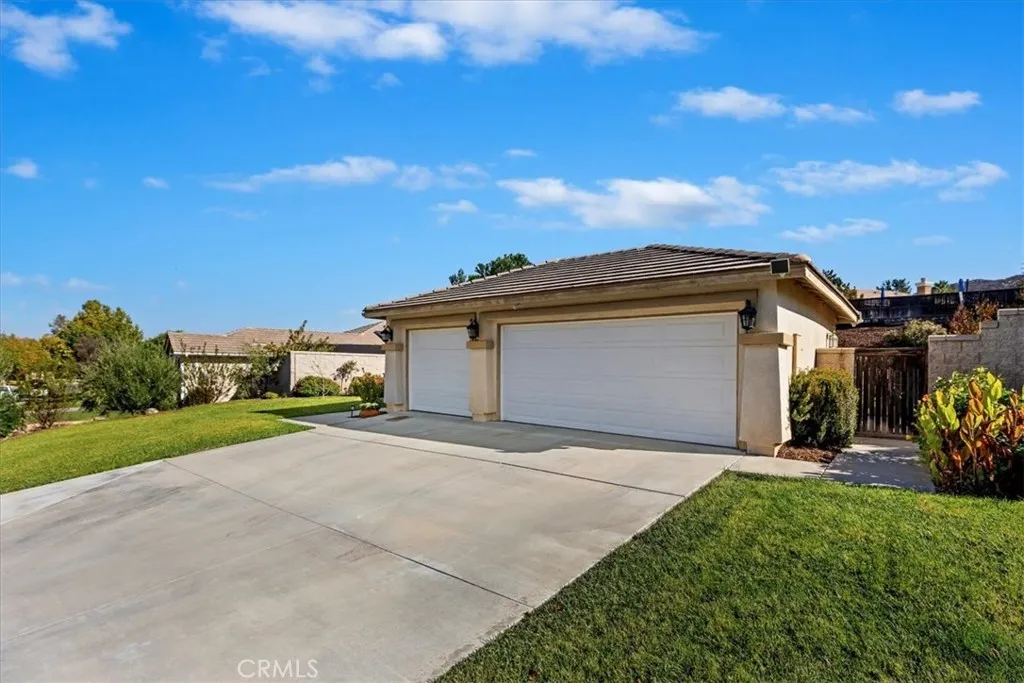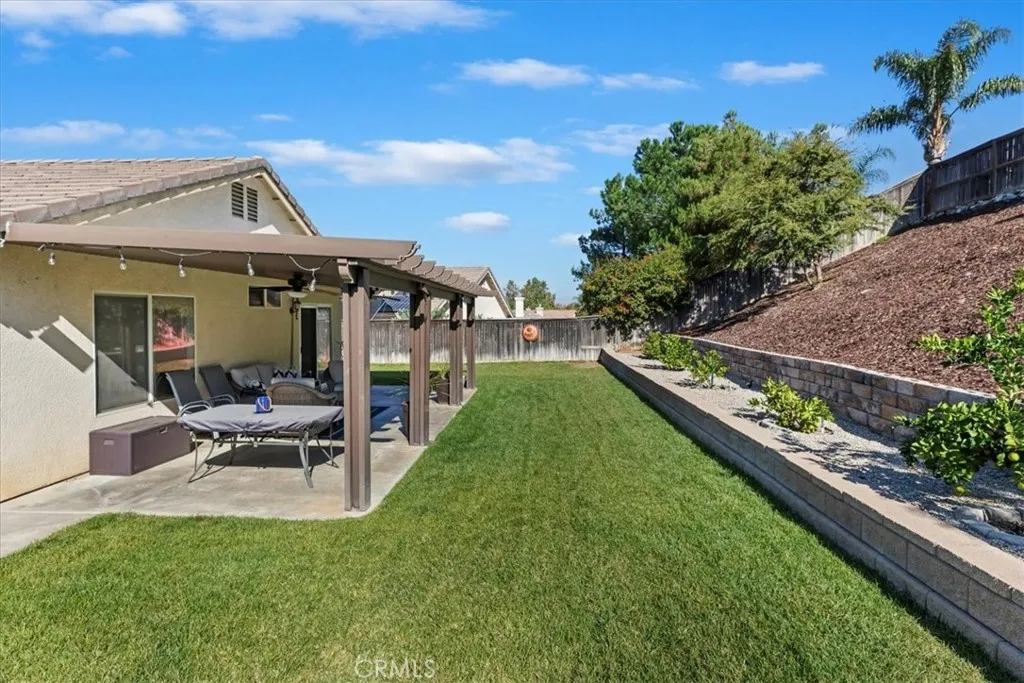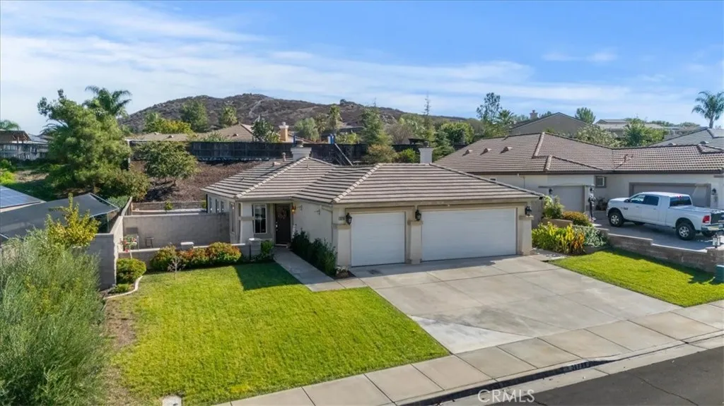 Welcome to this charming 3-bedroom, 2-bathroom single-story home located in the desirable Winchester/French Valley Area. This property is zoned for the highly-regarded Temecula Valley Unified School District, with assigned public schools including French Valley Elementary, Bella Vista Middle School, and Chaparral High School. This home is designed for both comfortable daily living and seamless entertaining. The interior features a large kitchen area with direct, easy access to the backyard, effectively extending your living space outdoors. The thoughtful layout ensures quiet relaxation, as the bedrooms are privately tucked away down a single hallway, minimizing distractions from gatherings in the living room. A Three Car Garage is a welcome compliment to the home, offering plenty of space for vehicles and additional storage. Outdoors, you will find an oversized yard that has been tastefully upgraded and professionally landscaped, providing abundant usable space perfect for entertaining or letting children play.