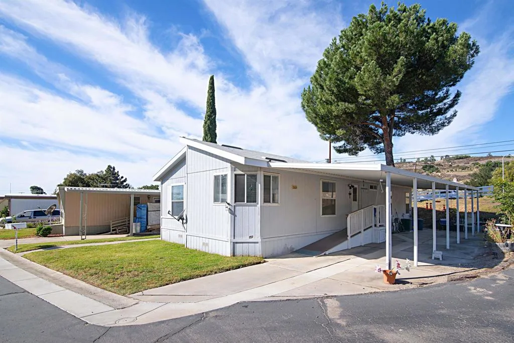 Discover one of the best values in Ramona, for those 55+ seeking comfort, simplicity, and a peaceful lifestyle. This rare 3-bedroom end unit is located in a quiet, smaller community with the lowest space rents in the area at $1,135/month. Enjoy beautiful mountain views surrounded by mature oak and pine trees, offering a calm, country-like setting. The home features an open floor plan, a bright and spacious kitchen with ample storage, and a generously sized primary suite. A private laundry room with washer and dryer is included, along with a low-maintenance yard. Conveniently close to town, with covered parking for two vehicles. A unique opportunity to enjoy relaxed living in a serene environment.