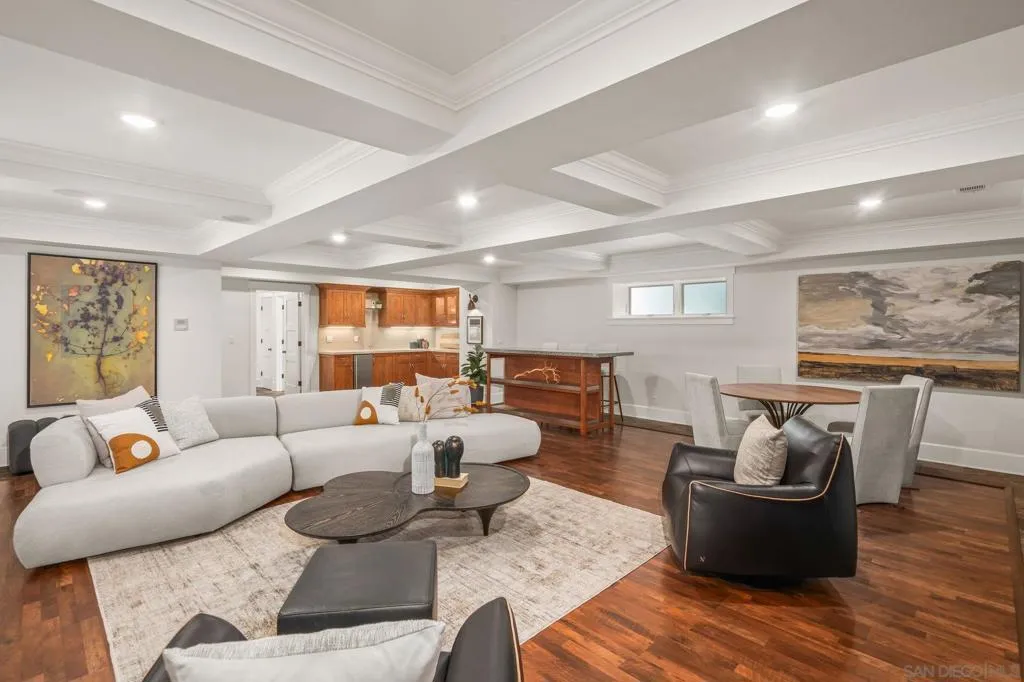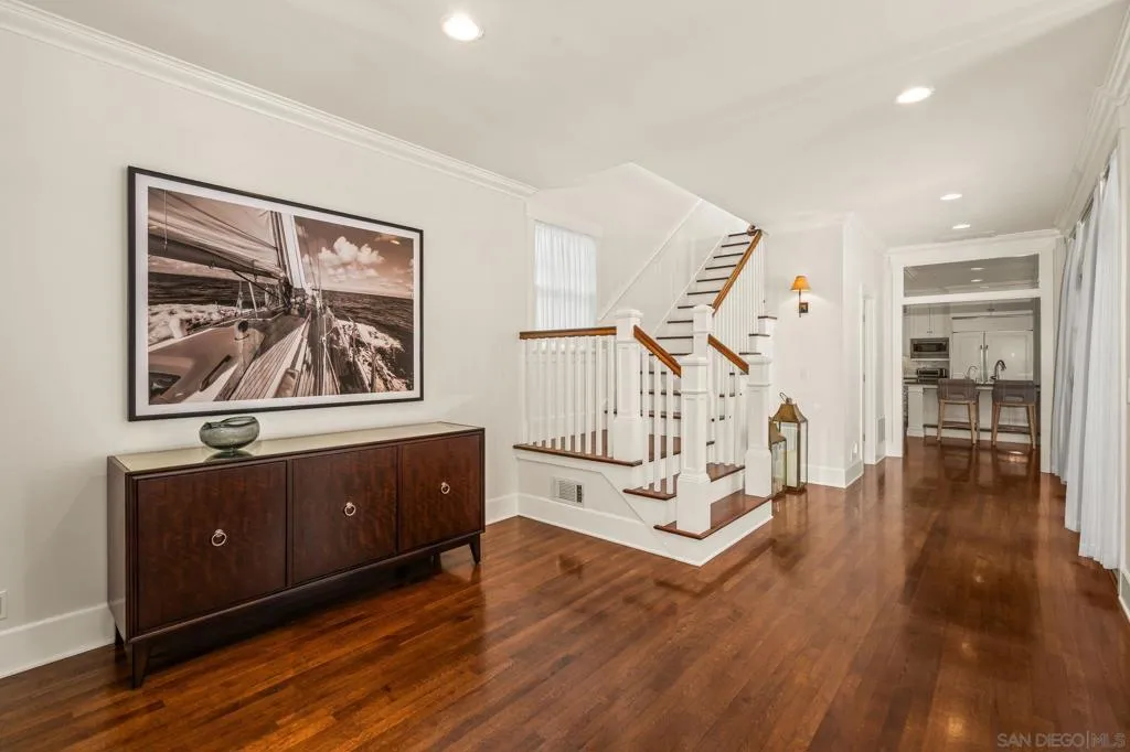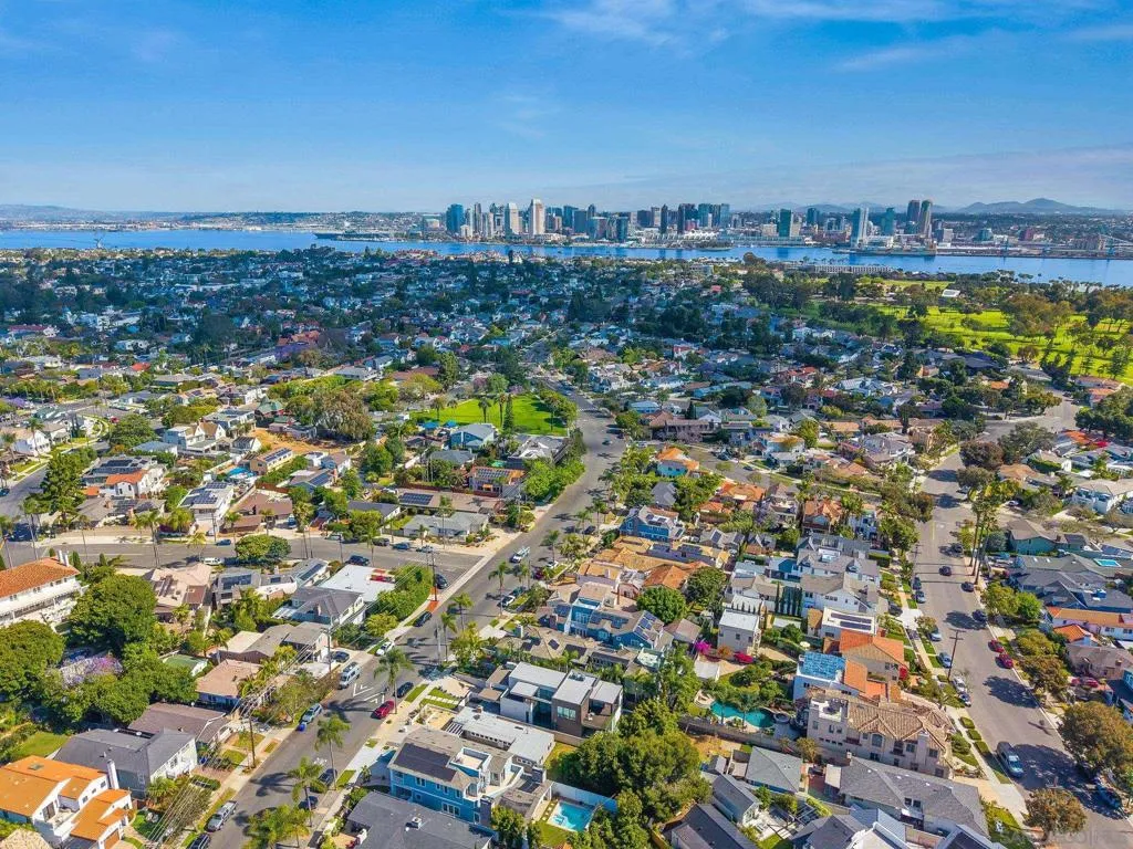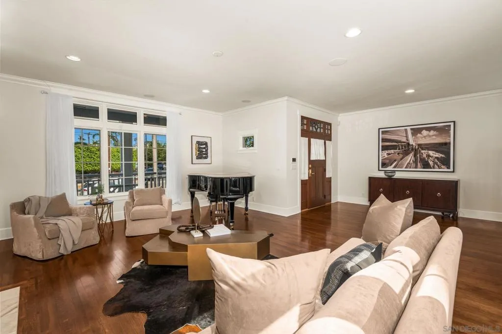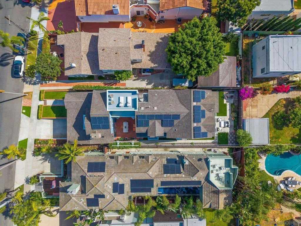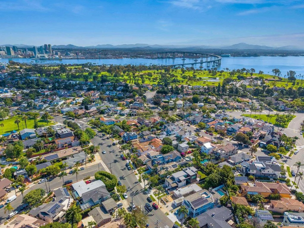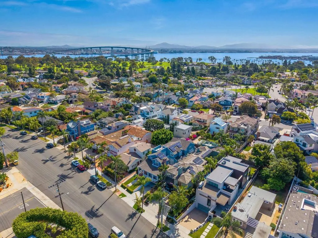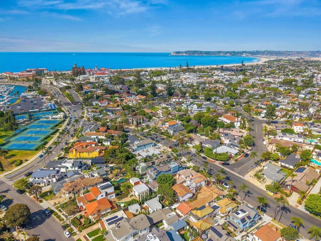 839 Pomona Avenue offers refined coastal living in the heart of Coronado Village, just moments from the beach, Orange Avenue, and the iconic Hotel del Coronado. This light-filled home features a seamless floor plan designed for both everyday living and entertaining. The entry opens to a welcoming living area with fireplace flowing to the stunning kitchen anchoring the home with a large center island, generous counter space, and high-end appliances including a custom panel GE Monogram refrigerator, Bosch dishwasher, commercial grade dual-fuel Dacor range and reverse osmosis water filtration system. The main level primary suite offers comfort and convenience, complete with ensuite bathroom, walk-in closet plus a dedicated office space close by. Upstairs, there are 3 terrace/balconies and a second primary suite that provides flexibility. The bonus rooftop deck showcases panoramic views of downtown San Diego to the Coronado Shores. The lower level features an expansive family room with bar and kitchenette, with an additional bedroom and bathroom, perfect for entertaining or extended stays. Additional highlights include an approx. 1000 sq. ft. garage, a luxury-sized lower-level family room, advanced security system, Sonos sound system, Lutron lighting, dual-zone Carrier Nest controlled HVAC, drought-tolerant landscaping with turf and custom outdoor lighting, dual water heaters, whole-home leak detection, seismic gas shutoff, well-maintained sewer system, new interior and exterior paint, and resurfaced decks and rooftop terrace. Don't miss out on this rare Coronado opportunity!