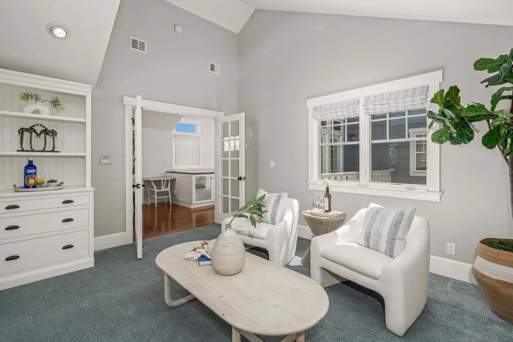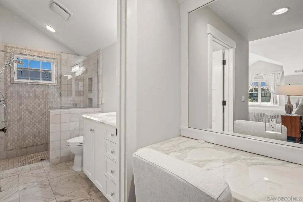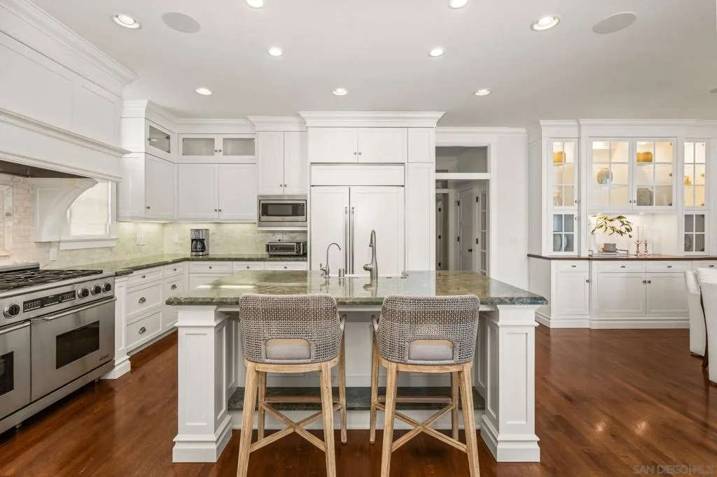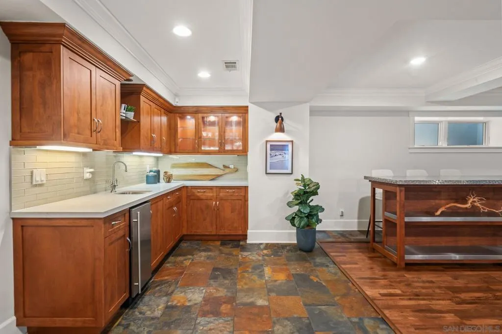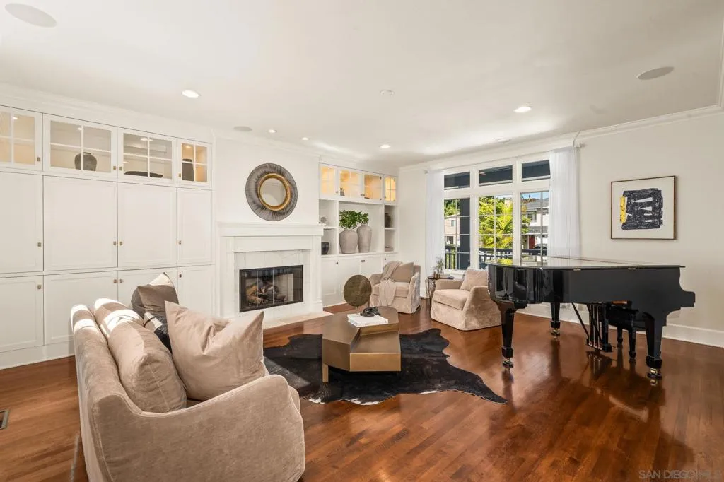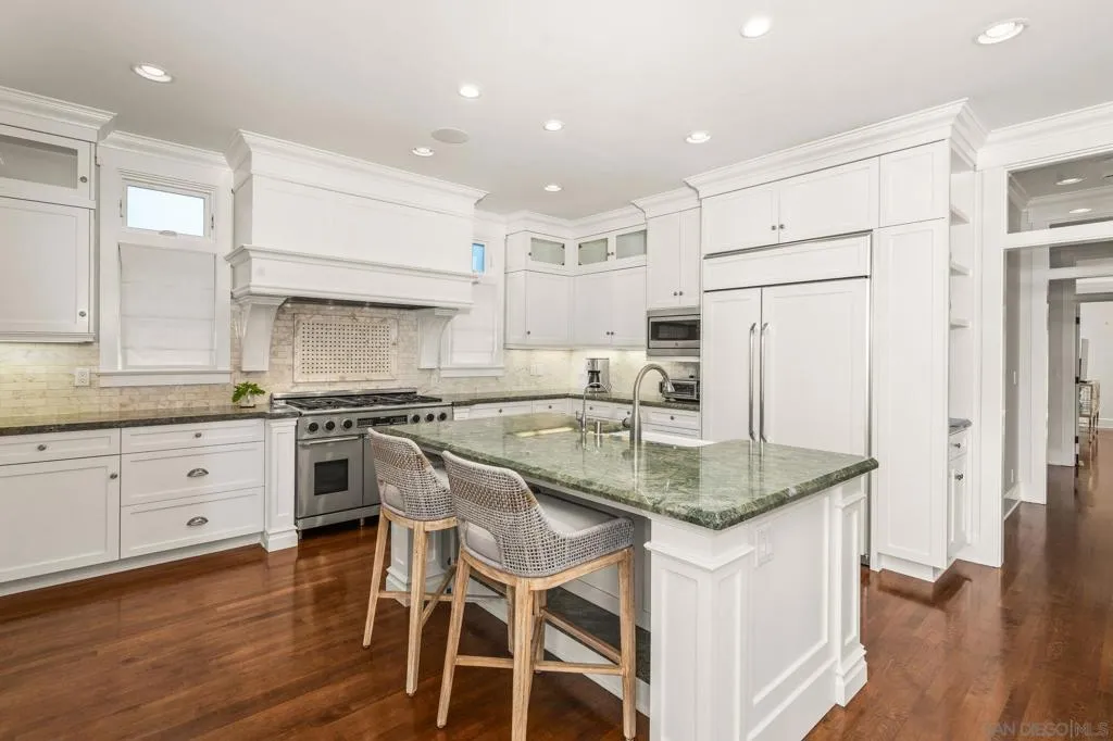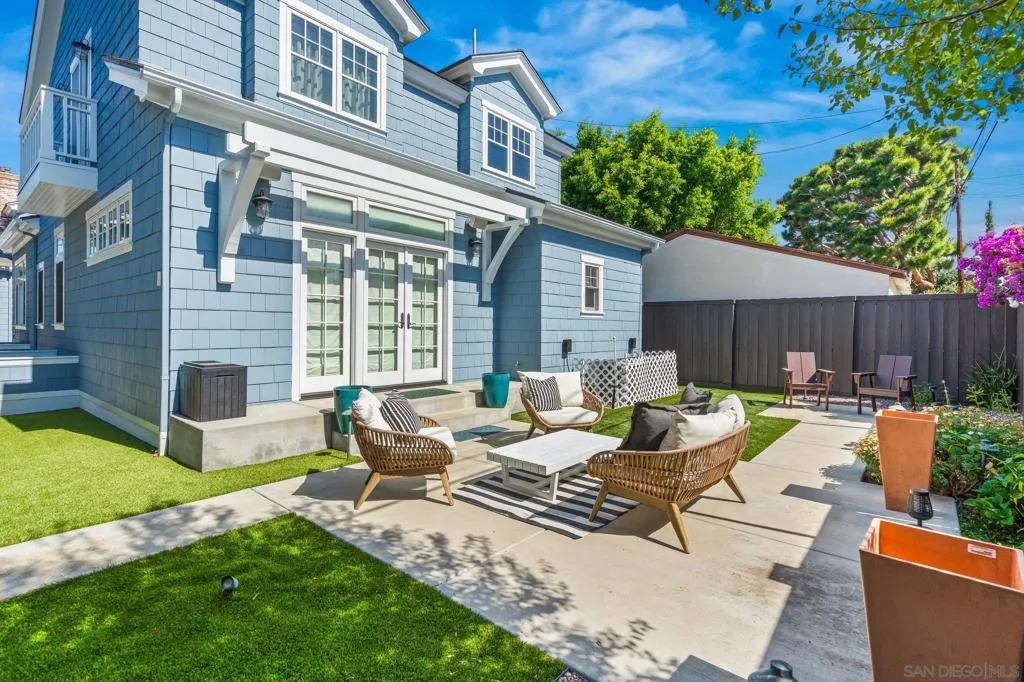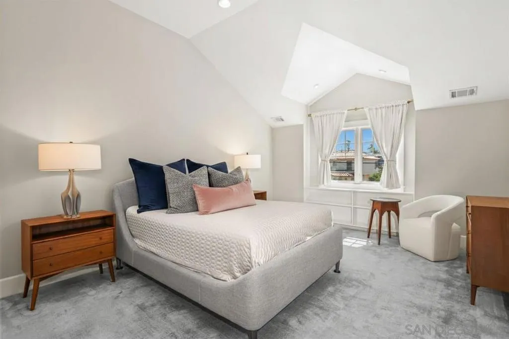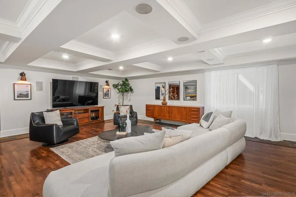 839 Pomona Avenue offers refined coastal living in the heart of Coronado Village, just moments from the beach, Orange Avenue, and the iconic Hotel del Coronado. This light-filled home features a seamless floor plan designed for both everyday living and entertaining. The entry opens to a welcoming living area with fireplace flowing to the stunning kitchen anchoring the home with a large center island, generous counter space, and high-end appliances including a custom panel GE Monogram refrigerator, Bosch dishwasher, commercial grade dual-fuel Dacor range and reverse osmosis water filtration system. The main level primary suite offers comfort and convenience, complete with ensuite bathroom, walk-in closet plus a dedicated office space close by. Upstairs, there are 3 terrace/balconies and a second primary suite that provides flexibility. The bonus rooftop deck showcases panoramic views of downtown San Diego to the Coronado Shores. The lower level features an expansive family room with bar and kitchenette, with an additional bedroom and bathroom, perfect for entertaining or extended stays. Additional highlights include an approx. 1000 sq. ft. garage, a luxury-sized lower-level family room, advanced security system, Sonos sound system, Lutron lighting, dual-zone Carrier Nest controlled HVAC, drought-tolerant landscaping with turf and custom outdoor lighting, dual water heaters, whole-home leak detection, seismic gas shutoff, well-maintained sewer system, new interior and exterior paint, and resurfaced decks and rooftop terrace. Don't miss out on this rare Coronado opportunity!