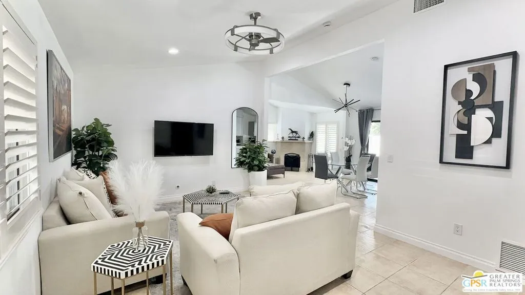 Imagine a private oasis in the heart of Palm Desert, just moments from El Paseo and an easy morning stroll to Varacco Coffee. This updated 4-bedroom, 2-bath single-family home offers a spacious open floor plan designed for both everyday living and effortless entertaining. The large kitchen flows seamlessly into a separate dining area overlooking a lushly landscaped backyard and a stunning private pool with breathtaking views. Inside, the home showcases modern comfort with custom lighting, upgraded fixtures, updated bathrooms, kitchen, and tile flooring throughout. A finished attached 2-car garage adds convenience, while an additional flexible room can serve as a bedroom, guest space, home office, or creative studio. What truly sets this property apart is its rare sense of privacy your own serene retreat in one of the desert's truly most desirable locations. Enjoy outdoor living on the expansive patio, complete with a private pool and generous wraparound yard, perfect for relaxing or entertaining. Ideally located near world-class shopping, dining, and entertainment, and just a short drive to iconic events like the Coachella, Stagecoach, and the BNP Paribas Open at Indian Wells Tennis Garden. This home is offered furnished or unfurnished.