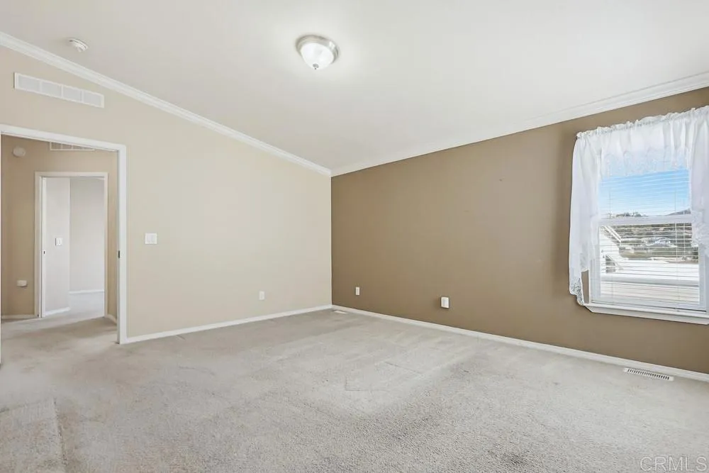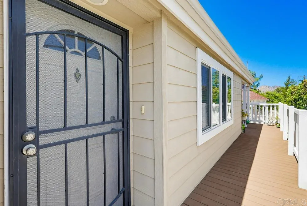 Welcome to your lake view home in the highly desirable gated 55+ community of Lake Jennings Park Estates, where you own the land and enjoy a low HOA of just $218 per month with no space rent. This beautifully maintained property is designed for easy living and entertaining, featuring a spacious open floor plan, a large kitchen island, and an abundance of cabinetry for storage and functionality. Step outside to a covered patio deck and thoughtfully designed paver backyard, complete with a charming gazebo and ceiling fan, creating the perfect outdoor retreat to relax and take in the views. Inside, the home offers three bedrooms, including a generous primary suite with a walk-in closet and built-in organizers. The exterior continues to impress with side-by-side covered parking, additional space for a golf cart, and a low-maintenance yard highlighted by a mature pink grapefruit tree and vibrant rose bushes. This is an exceptional opportunity to enjoy comfort, convenience, and scenic living in one of East County’s most sought-after communities.