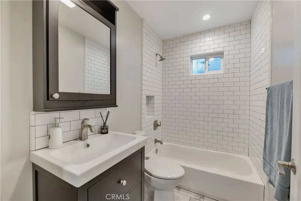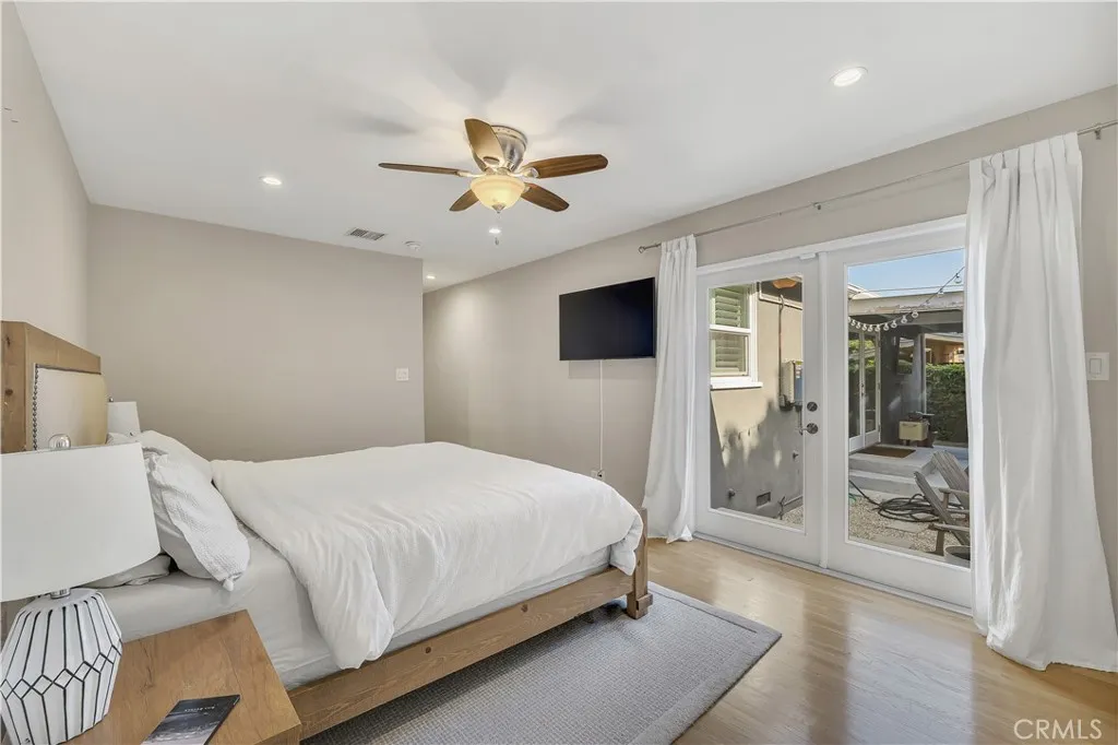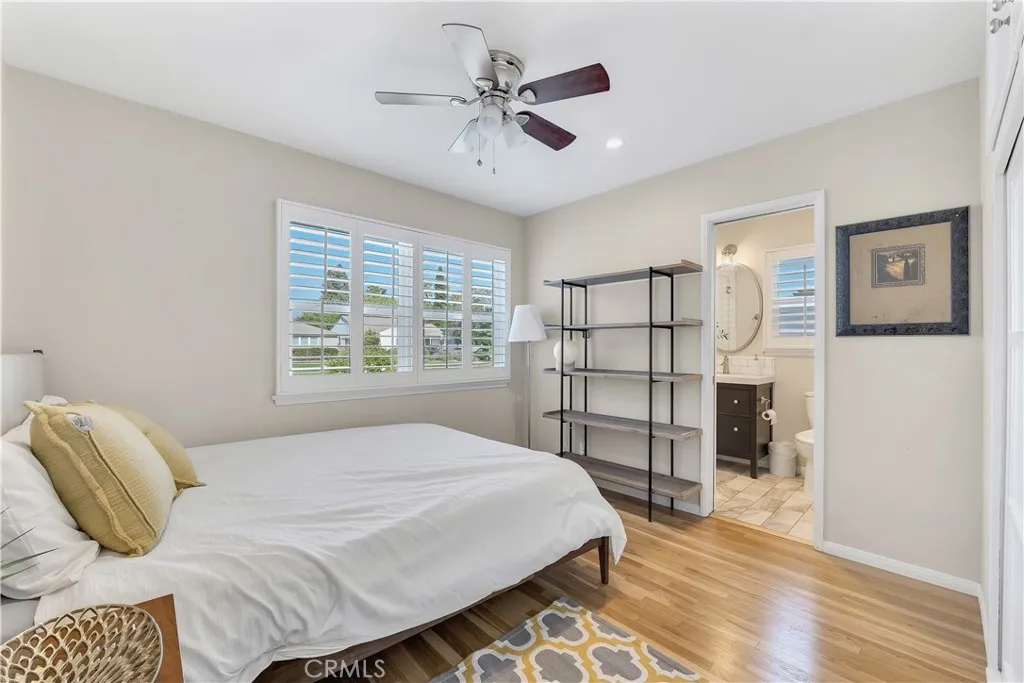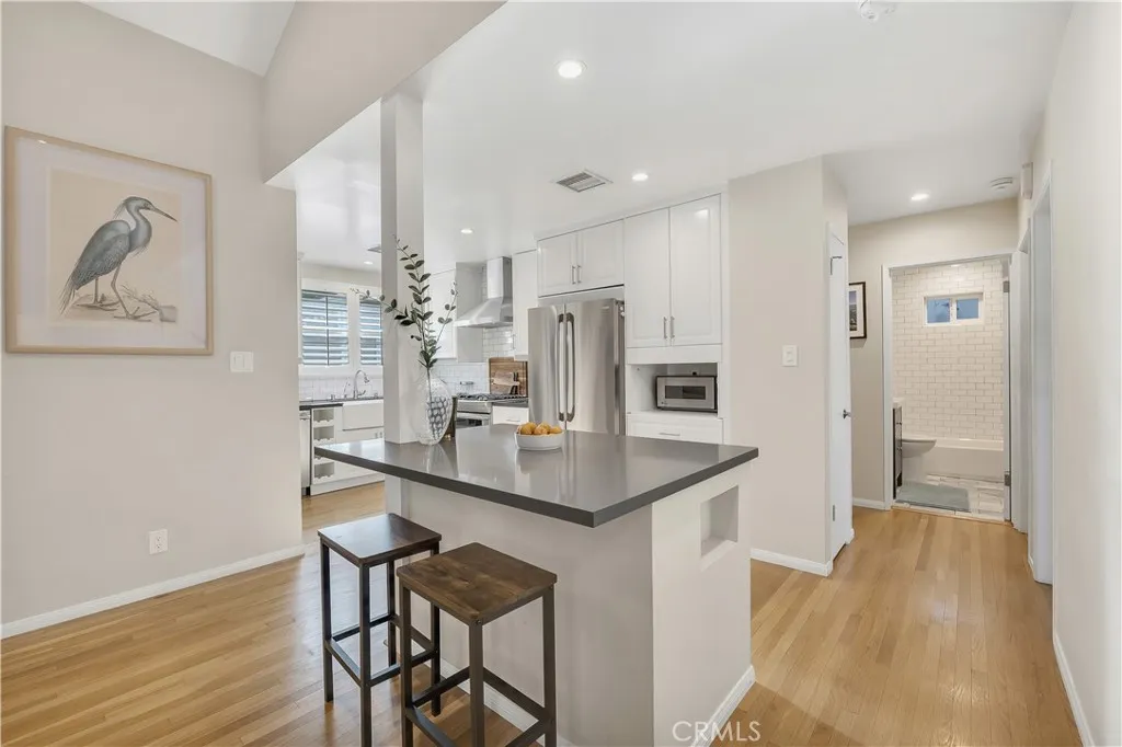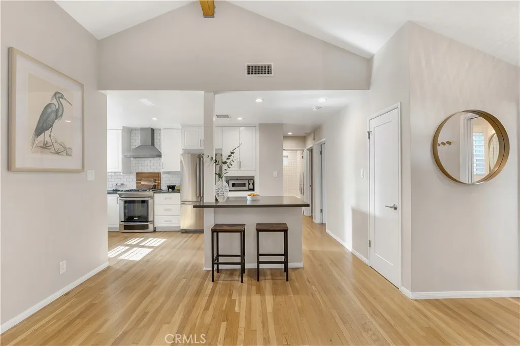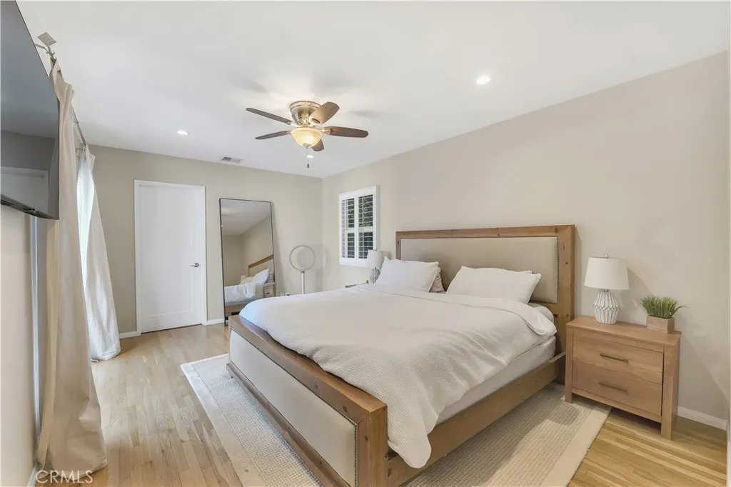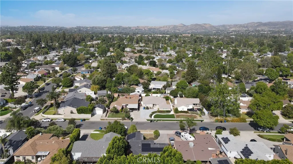 Ideally located in prime Woodland Hills, just moments from The Village, Westfield Topanga, and Warner Center. This beautifully updated 3-bedroom, 3-bath home sits on a quiet street and offers a bright, open layout designed for both everyday living and entertaining. The kitchen features quartz countertops, stainless steel appliances, and a clean, modern design that flows seamlessly into the main living space, enhanced by vaulted ceilings, abundant natural light, and wide-plank hardwood flooring.The primary suite is a true owner’s retreat, featuring a walk-in closet, an updated en-suite bath with a walk-in shower, and French doors that open to a covered patio and private low-maintenance backyard—perfect for indoor-outdoor living. Additional upgrades include new windows and French doors, recessed lighting throughout, refinished original hardwood floors, an attached two-car garage, thoughtfully landscaped grounds, and solar panels for reduced electric bills.