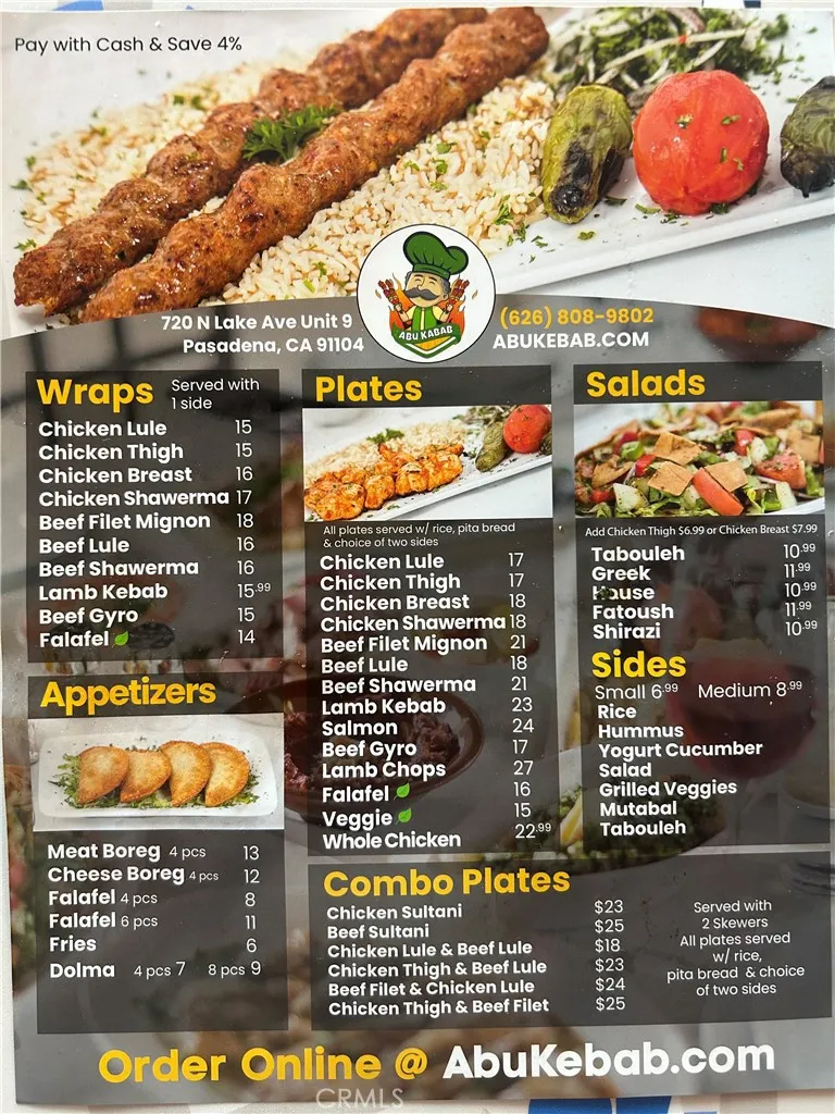 Abu Kabab is a highly-recommended Mediterranean restaurant in Los Angeles. Known for its tasty and well-presented dishes, the restaurant offers a variety of options, including gluten-free choices. The felafel and Lule kebab are standout favorites, while the shawarma platter and chicken kebab receive praise as well. Customers have noted the generous portions and fantastic food, highlighting the delightful flavors and fresh ingredients. The restaurant's commitment to using family recipes and its beautiful atmosphere make it a top choice. With a pop-up stand at Rancho Bar in Altadena, Abu Kabab is easily accessible, with ample parking and wheelchair accessibility. It is comfortable, but not fancy, and has many seed oil-free options. Whether someone is a local or visiting from afar, this Pasadena gem is worth the trip. Guests appreciate the amazing customer service and the super friendly staff, making it a great experience for everyone. Many recommend coming here for a quick and delicious dining experience.With beer and wine license and COP for full liquor licensing ,also full opurtunity for a hooka lounge in the back and private parties